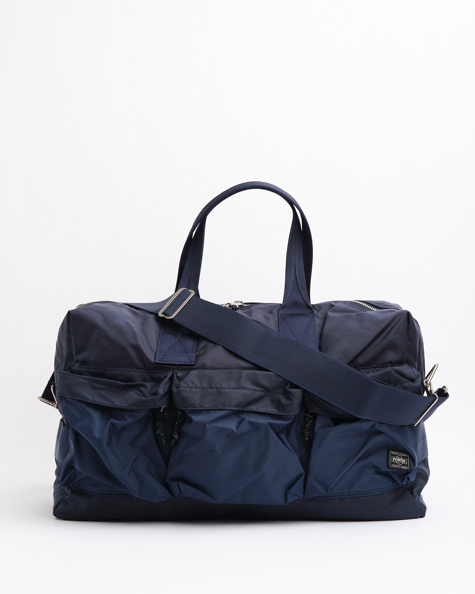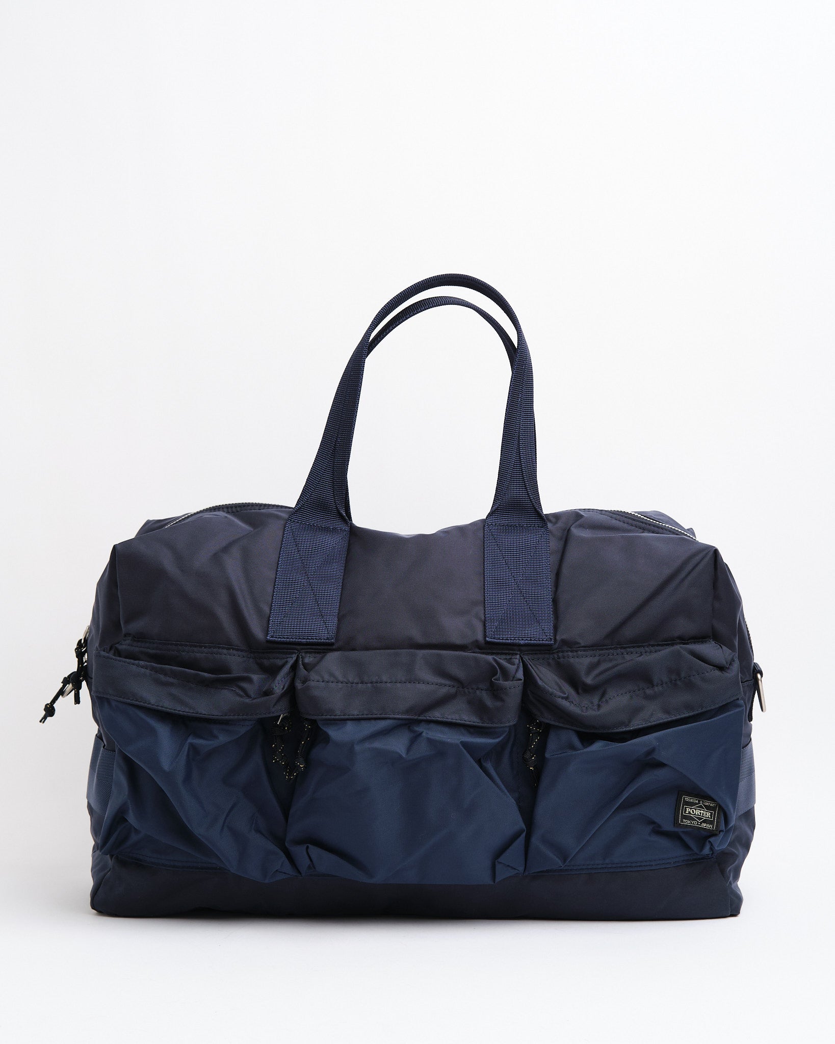 PORTER BY YOSHIDA Force 2-Way Duffle Bag on osa PORTER FORCE -sarjaa, joka on saanut inspiraationsa sotilasesteetiikasta ja sotilastavaroiden satunnaisista värierovaisuuksista. Tämän suunnittelun huomattava piirre on etutaskun kankaan ja laukun pääosan hienovarainen värierovaisuus, luoden vaikutelman eri kangaserien käytöstä. Tämä sarja juhlistaa sotilasvaatteissa ja -varusteissa löytyviä epäsäännöllisiä värimaailmoja.