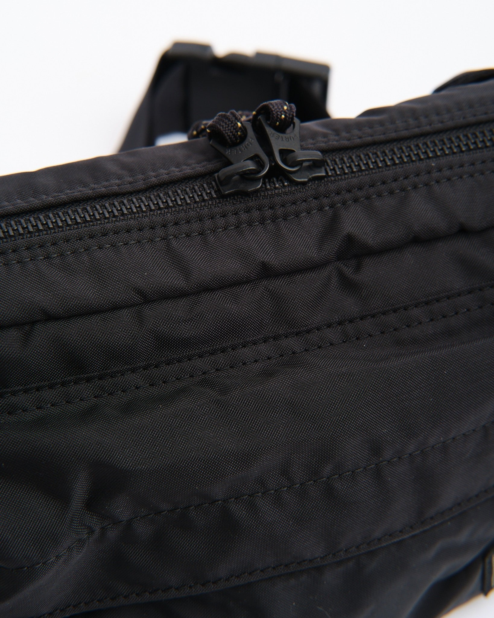 PORTER BY YOSHIDA Force 2-Way Waist Bag on osa PORTER FORCE -sarjaa, joka on saanut inspiraationsa sotilasesteetiikasta ja sotilastavaroiden satunnaisista värierovaisuuksista. Tämän suunnittelun määrittelevä piirre on hienovarainen väriero etutaskun kankaan ja laukun pääosan kankaan välillä, mikä saa sen näyttämään siltä, kuin olisi käytetty eri kangaseriä. Tämä sarja omaksuu sotilasvaatteissa ja -varusteissa luonnollisesti esiintyvät epäsäännölliset värimaailmat.
