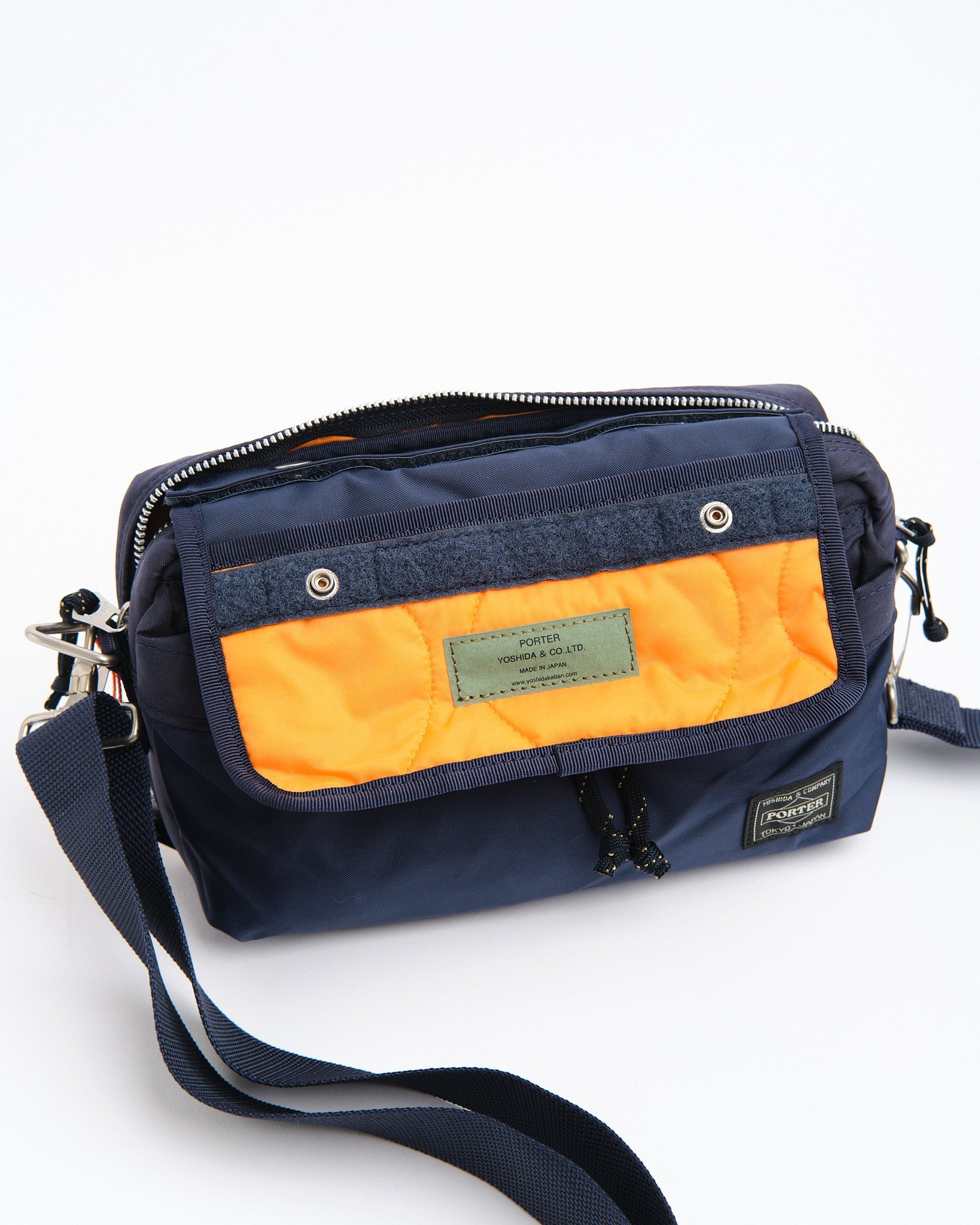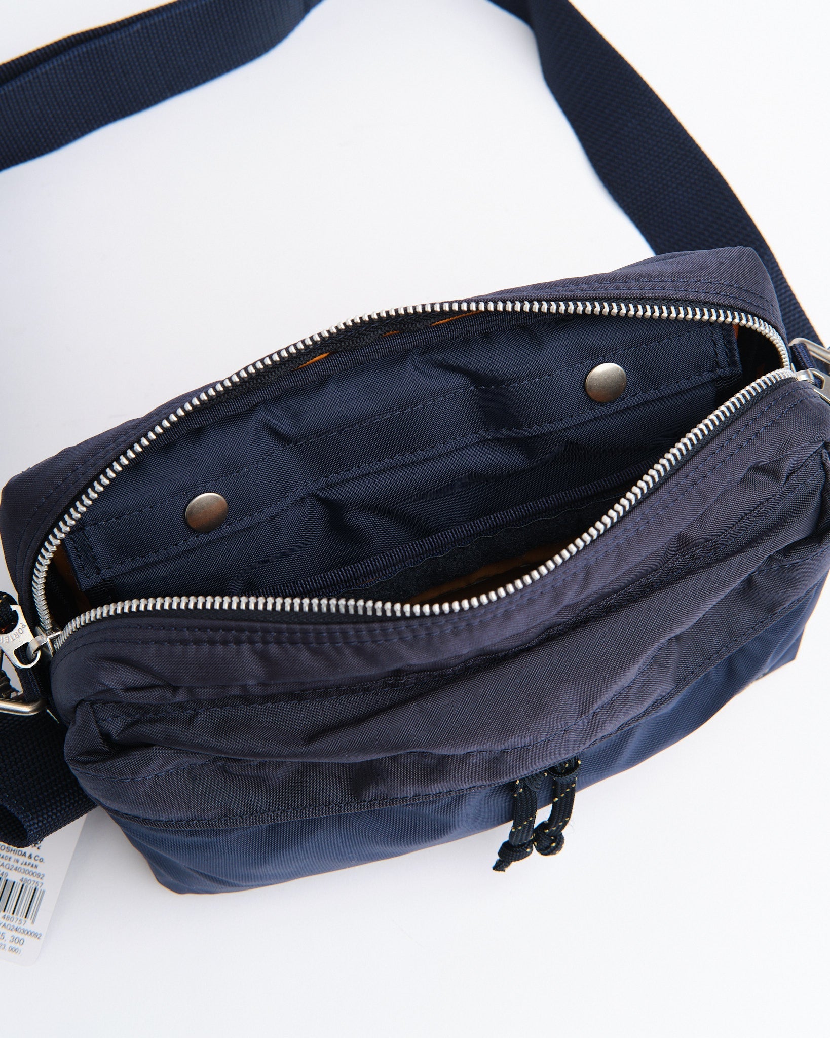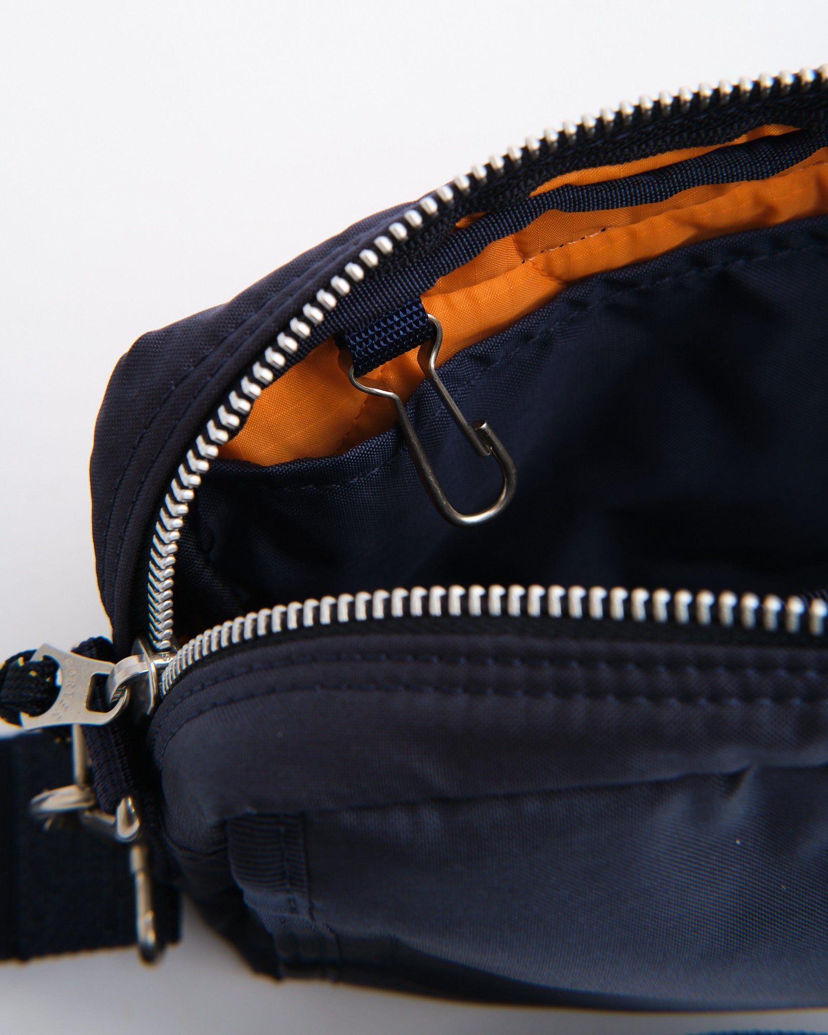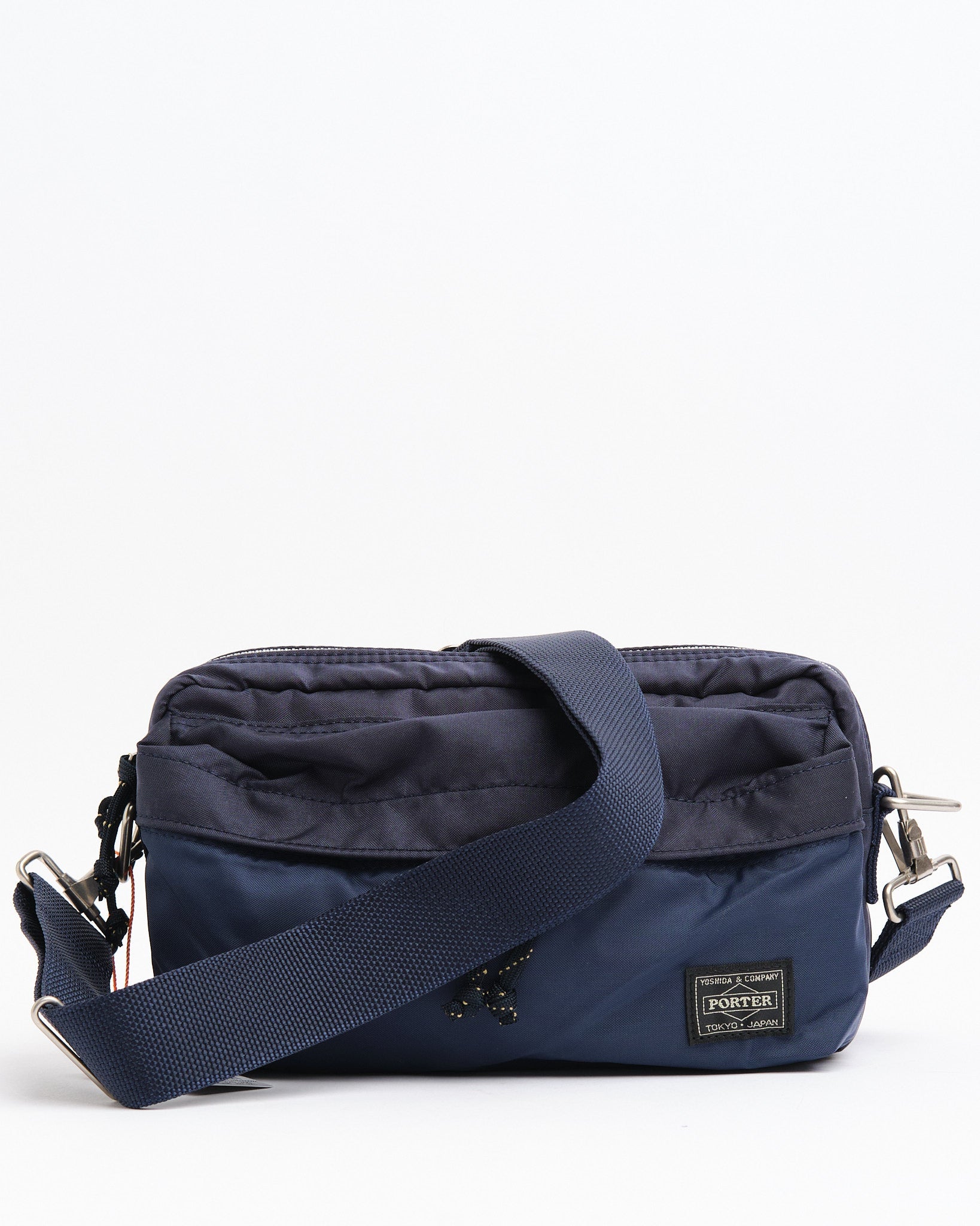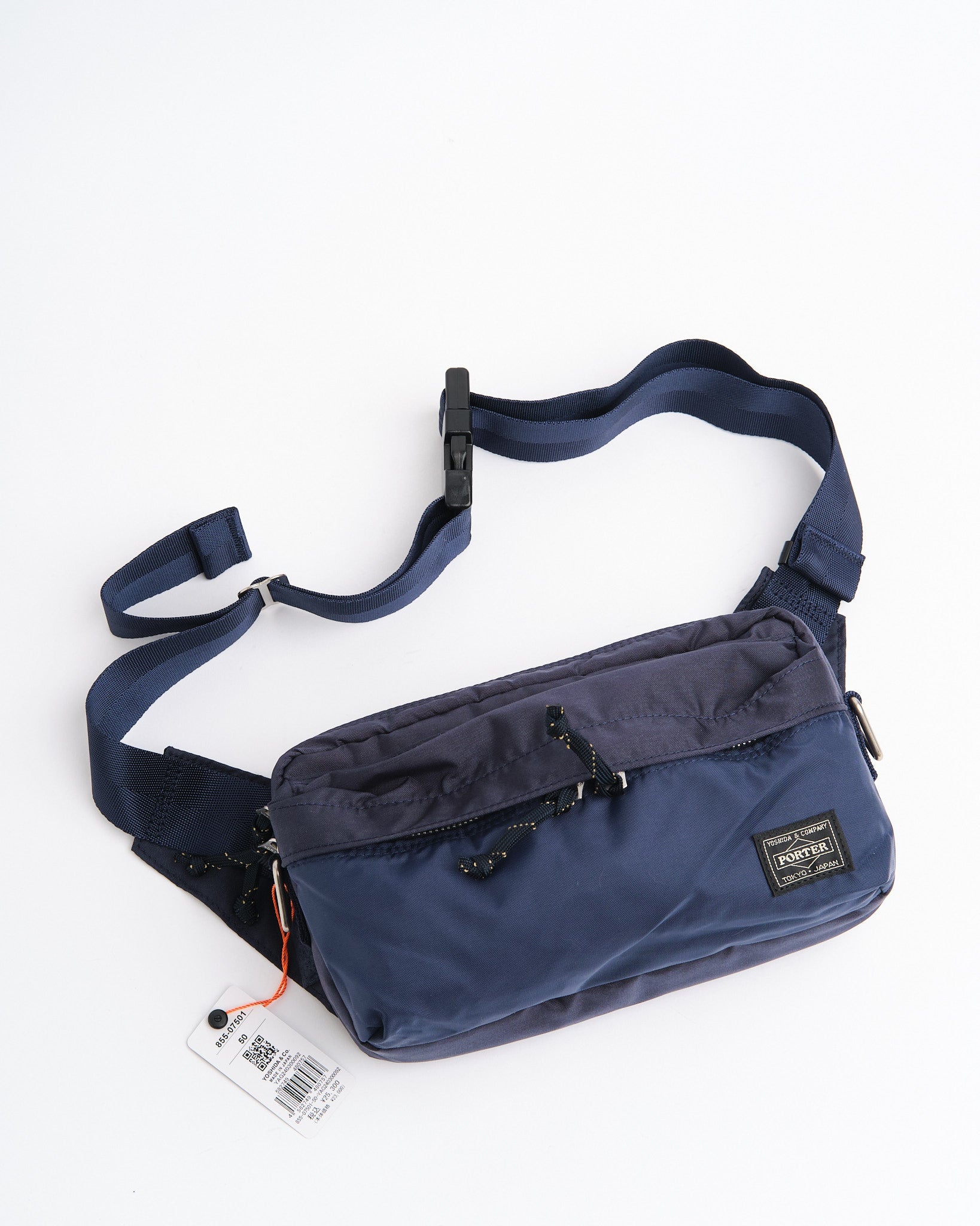 PORTER BY YOSHIDA Force 2-Way Waist Bag on osa PORTER FORCE -sarjaa, joka on saanut inspiraationsa sotilaallisesta estetiikasta ja sotilastavaroiden satunnaisista värierosta. Tämän suunnittelun määrittelevä piirre on hienovarainen väriero etutaskun kankaan ja laukun pääosan kankaan välillä, mikä saa sen näyttämään siltä, kuin eri kangaseriä olisi käytetty. Tämä sarja omaksuu sotilasvaatteissa ja -varusteissa luonnostaan esiintyvät epäsäännölliset värimaailmat.