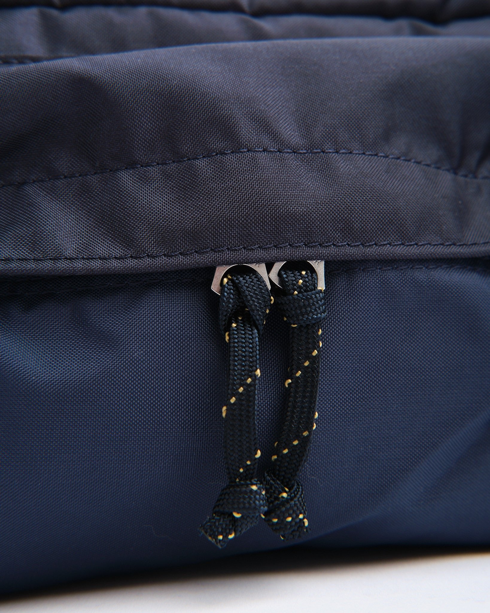 Tehty teollisuustason kankaasta, joka on kudottu 210 denierin 6 nylonia vahvalla langalla, jota alun perin käytettiin kumiveneissä, laukku takaa korkean kestävyyden. Sisusta on vuorattu hätävärillä oranssi, joka on saanut inspiraationsa sotilastakeista, ja on tikattu repäisynkestävällä nylonilla lisää vahvuutta varten.