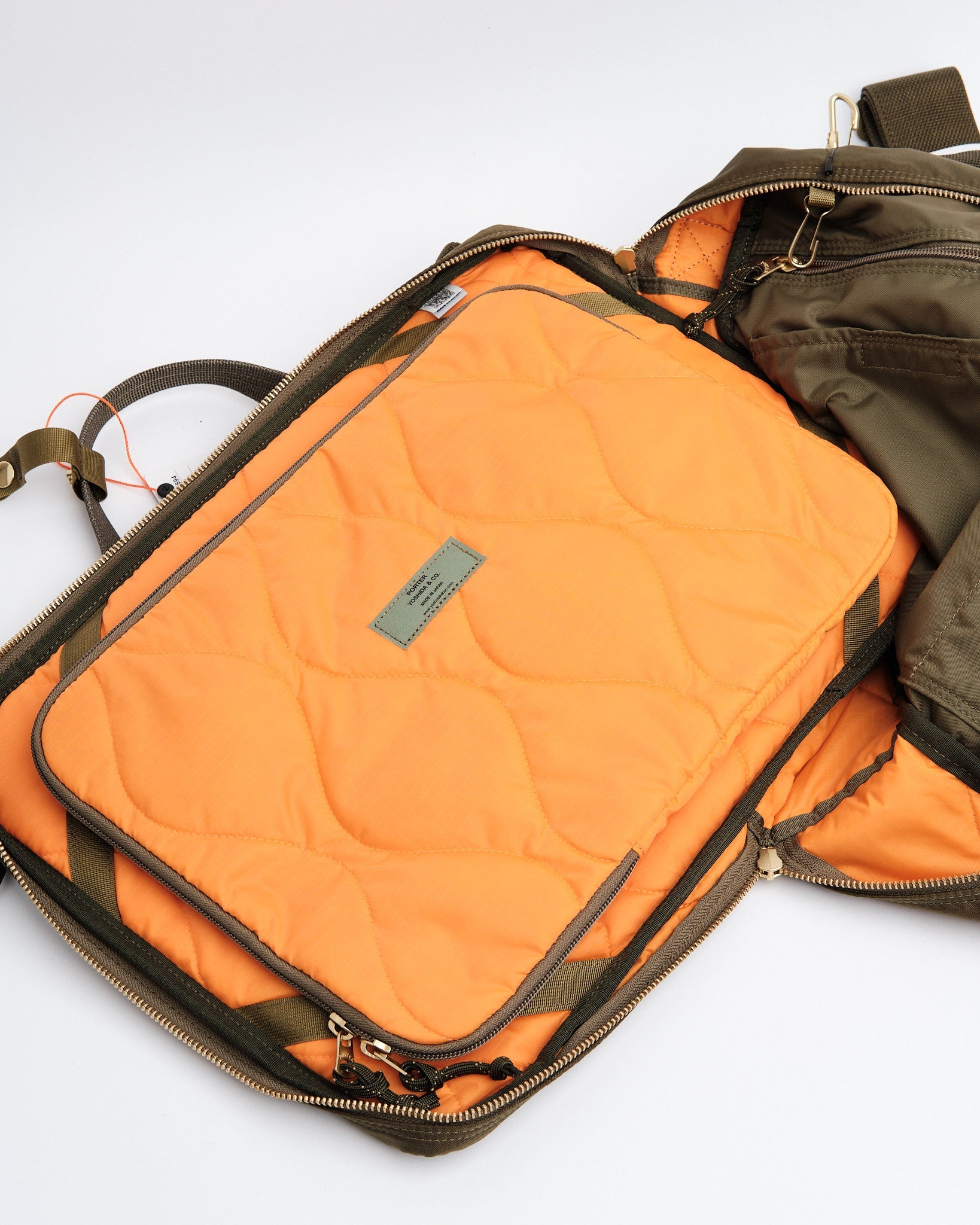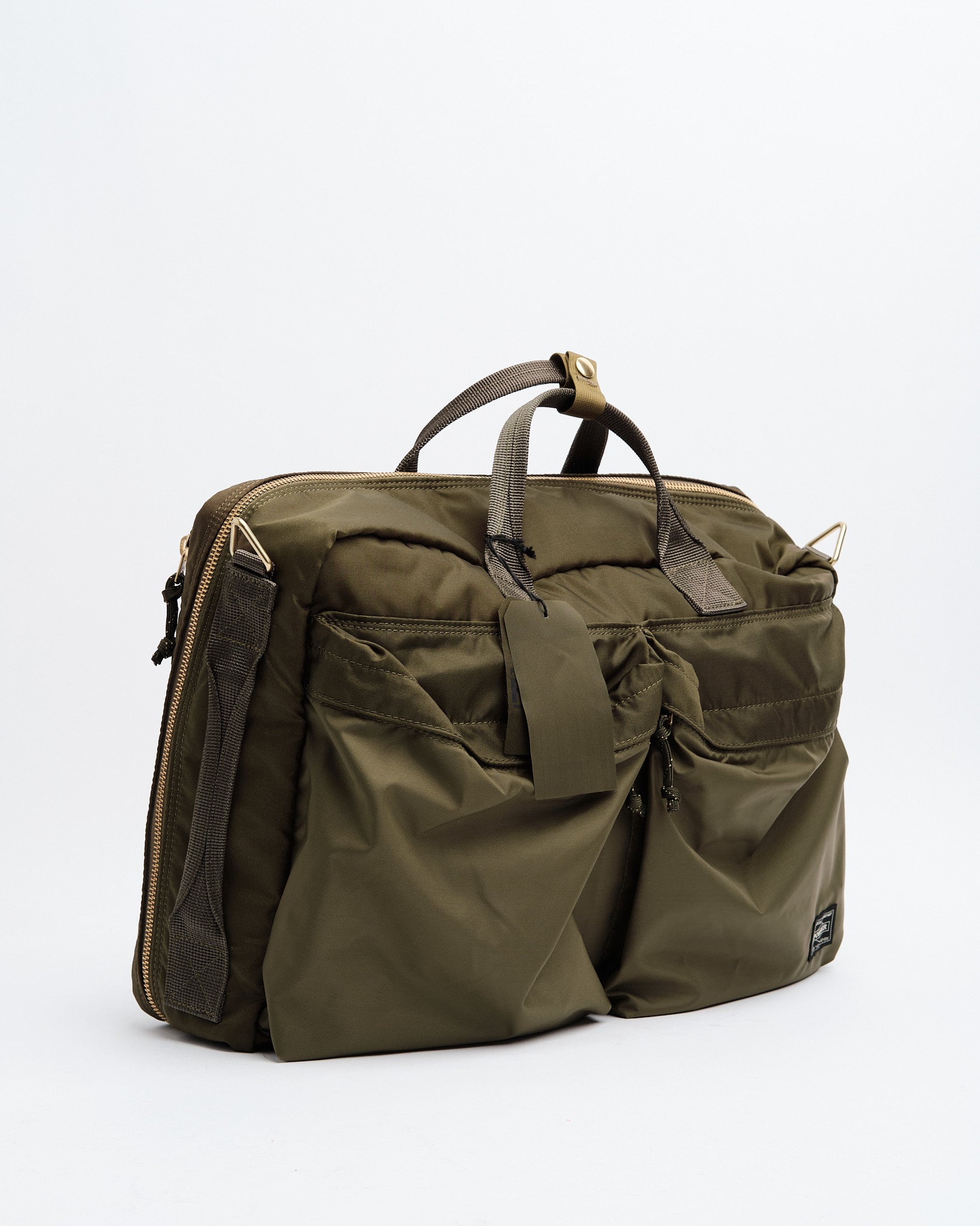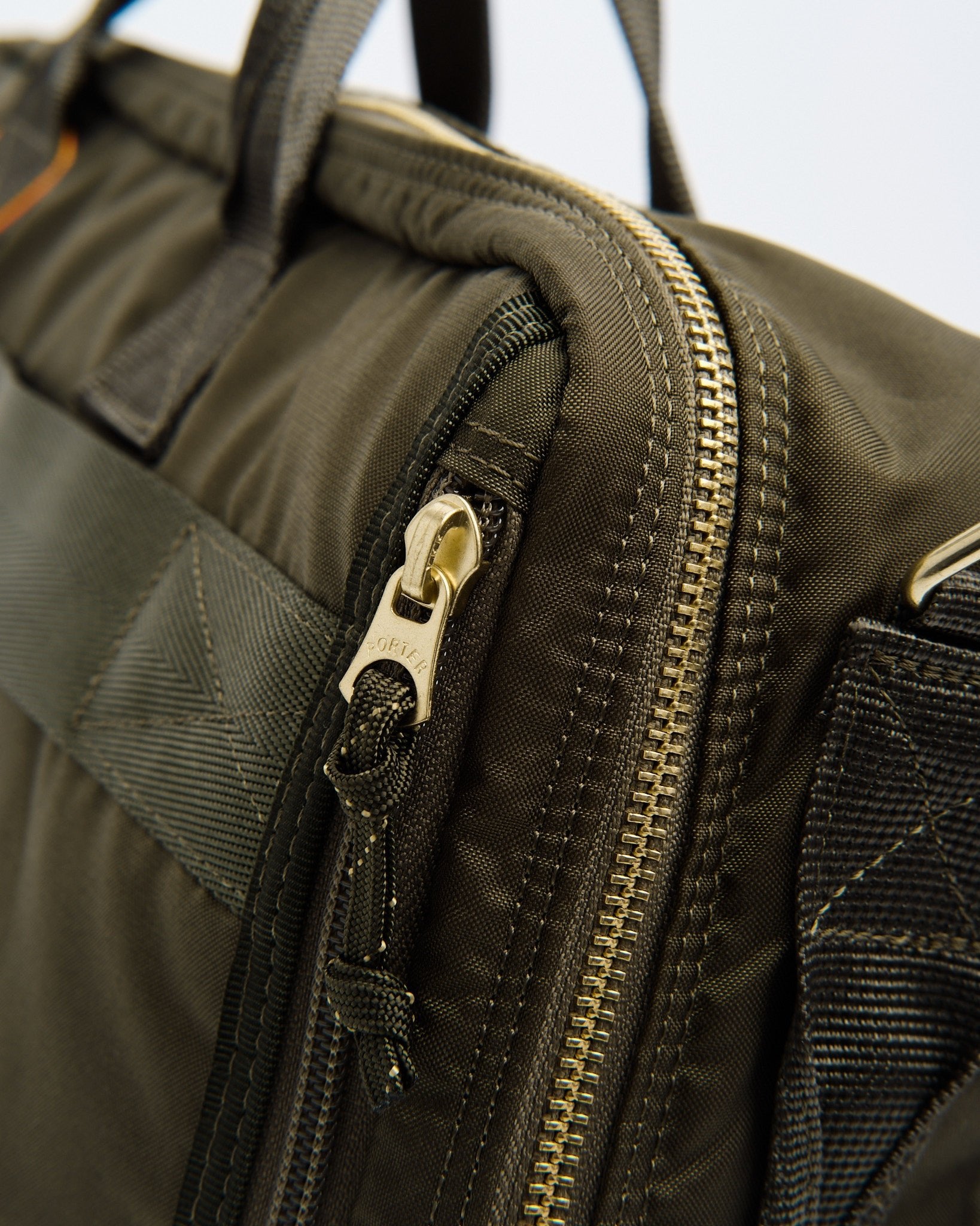 Vahva PORTER BY YOSHIDA Force 3-Way Salkku kuuluu PORTER FORCE -sarjaan, joka on inspiroitunut sotilasesteetiikasta ja sotilastavaroiden satunnaisista värierosta. Tämän suunnittelun huomionarvoinen piirre on hienovarainen värierottelu etutaskun kankaan ja laukun pääkappaleen välillä, luoden eri kangaserien käytön vaikutelman. Tämä sarja juhlistaa sotilasvaatteissa ja -varusteissa löytyviä epäsäännöllisiä värimaailmoja.