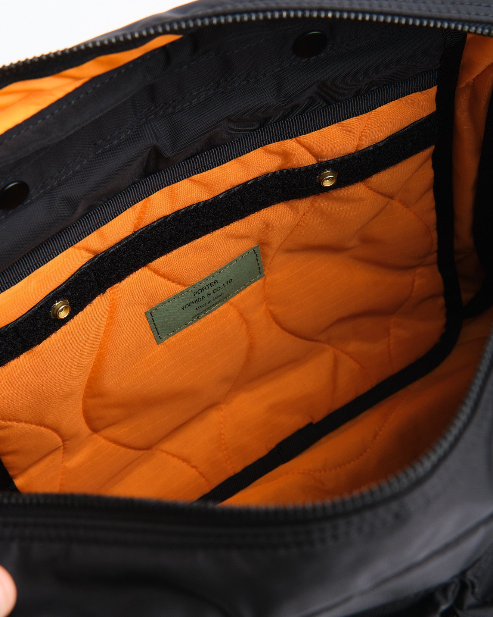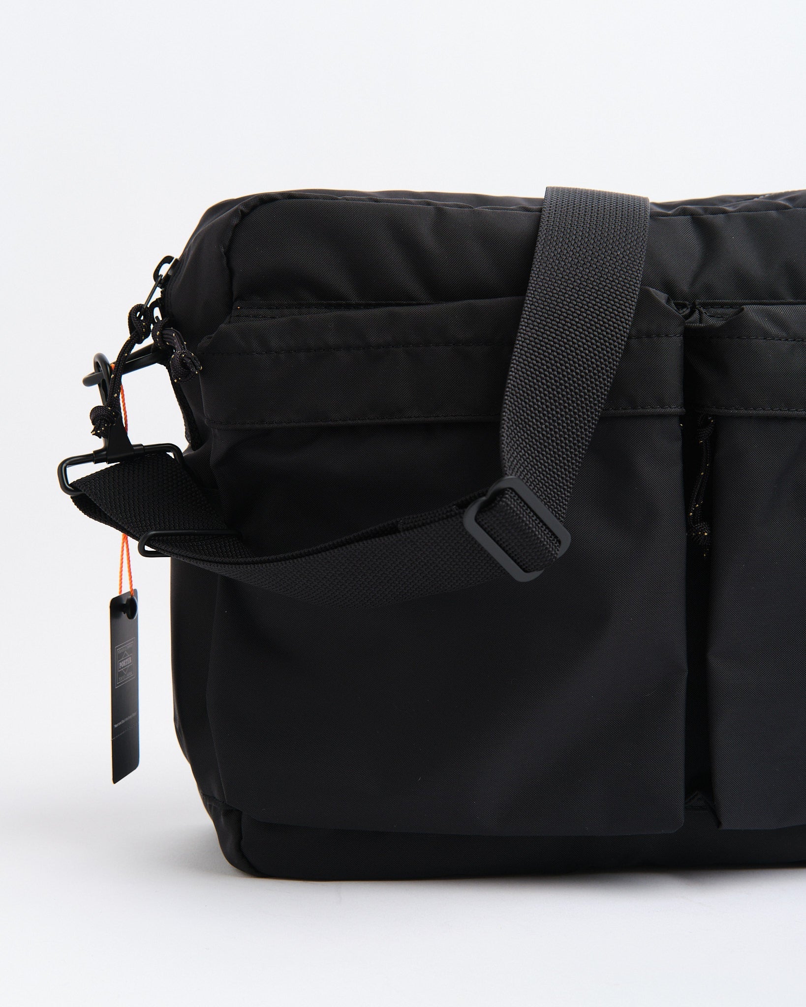PORTER BY YOSHIDA Force Shoulder Bag on osa PORTER FORCE -sarjaa, joka saa inspiraationsa sotilasesteetiikasta ja sotilastavaroiden satunnaisista värierovaisuuksista. Tämän suunnittelun merkittävä piirre on hienovarainen väriero etutaskun ja laukun pääosan kankaan välillä, mikä saa sen näyttämään siltä, kuin eri kangaseriä olisi käytetty. Tämä sarja juhlistaa näitä epäsäännöllisiä värimaailmoja, joita yleisesti nähdään sotilasvaatteissa ja -varusteissa.