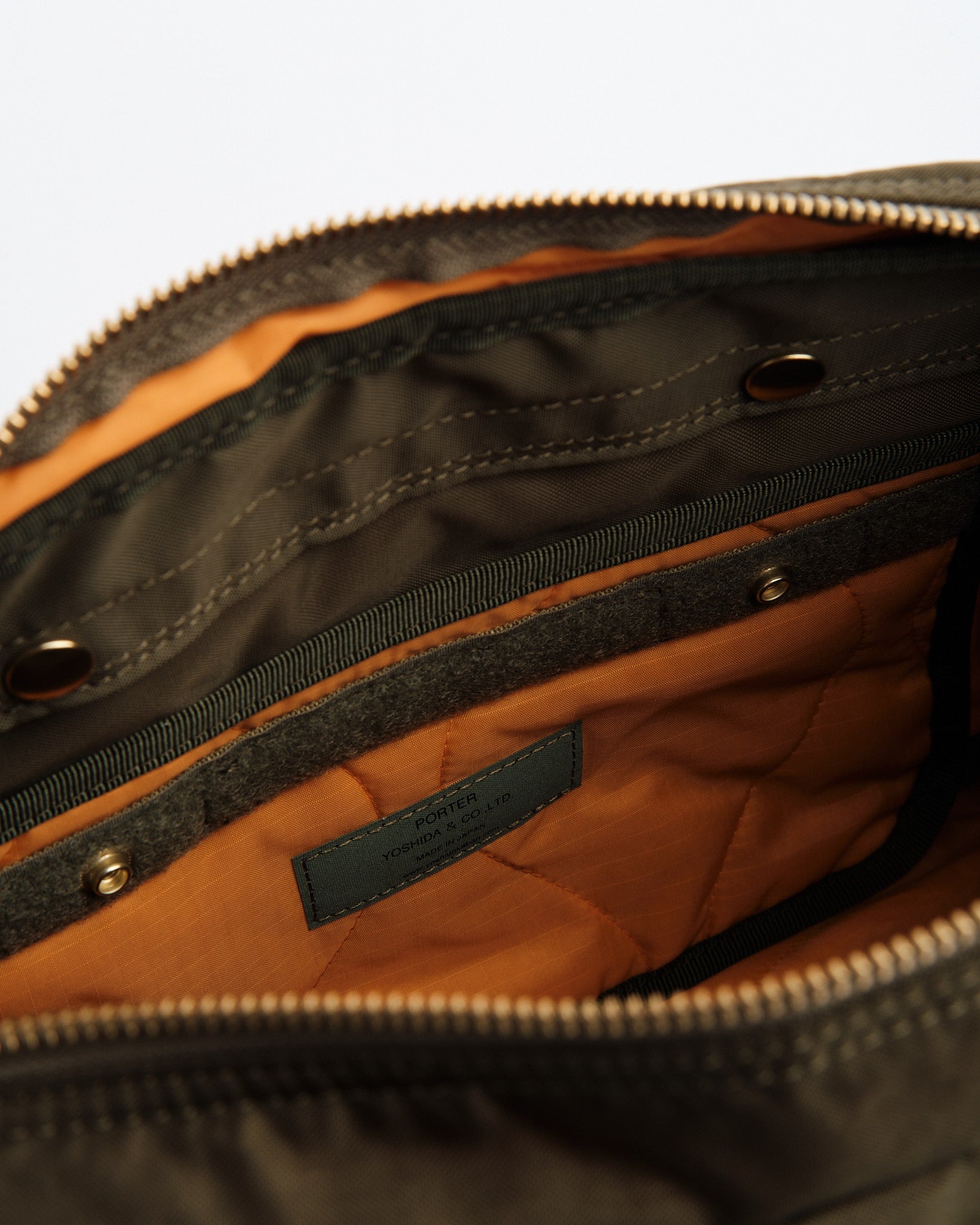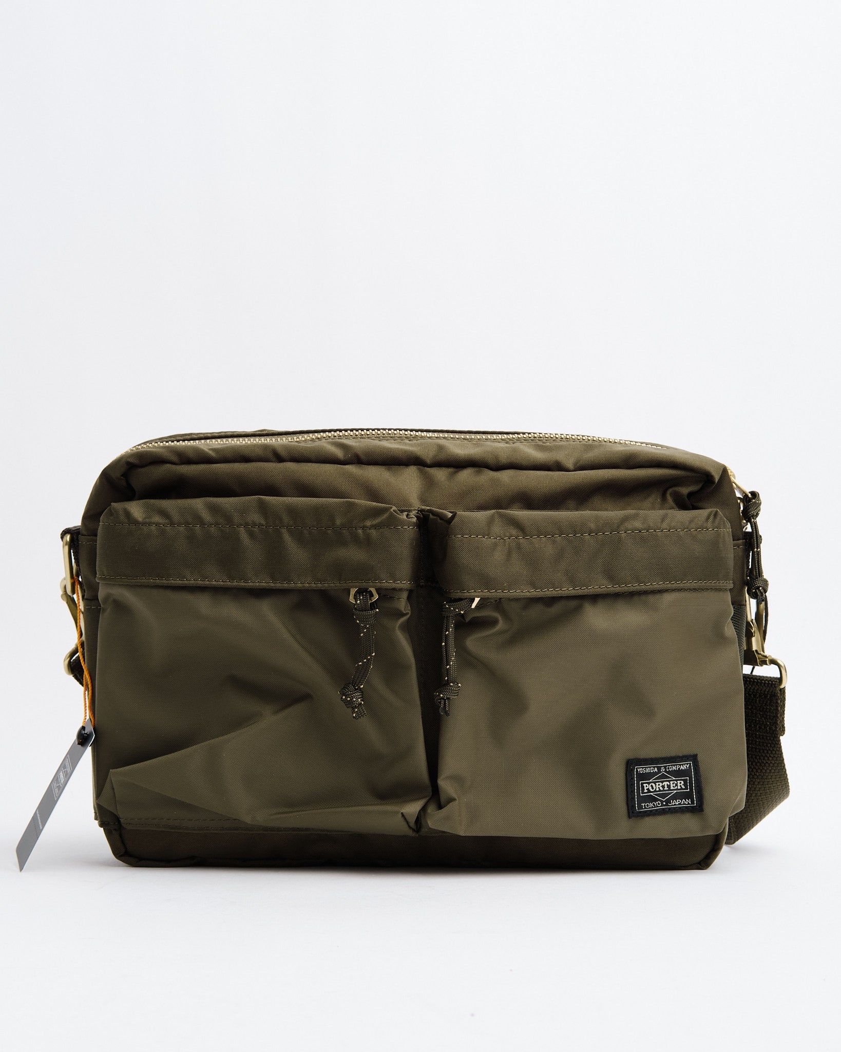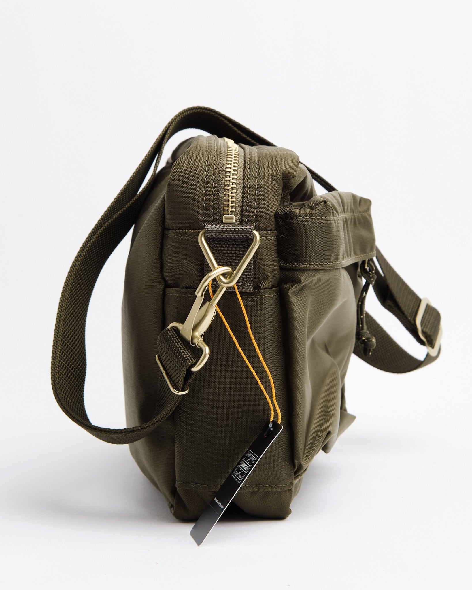 PORTER BY YOSHIDA Force Shoulder Bag (S) on osa PORTER FORCE -sarjaa, joka saa inspiraationsa sotilasesteettisyydestä ja sotilastuotteiden satunnaisista värierovaisuuksista. Tämän suunnittelun erottuva piirre on hienovarainen väriero etutaskun ja laukun pääosan kankaan välillä, antaen vaikutelman eri kangaserien käytöstä. Tämä sarja juhlistaa näitä epäsäännöllisiä värimaailmoja, joita usein löytyy sotilasvaatteista ja -varusteista.