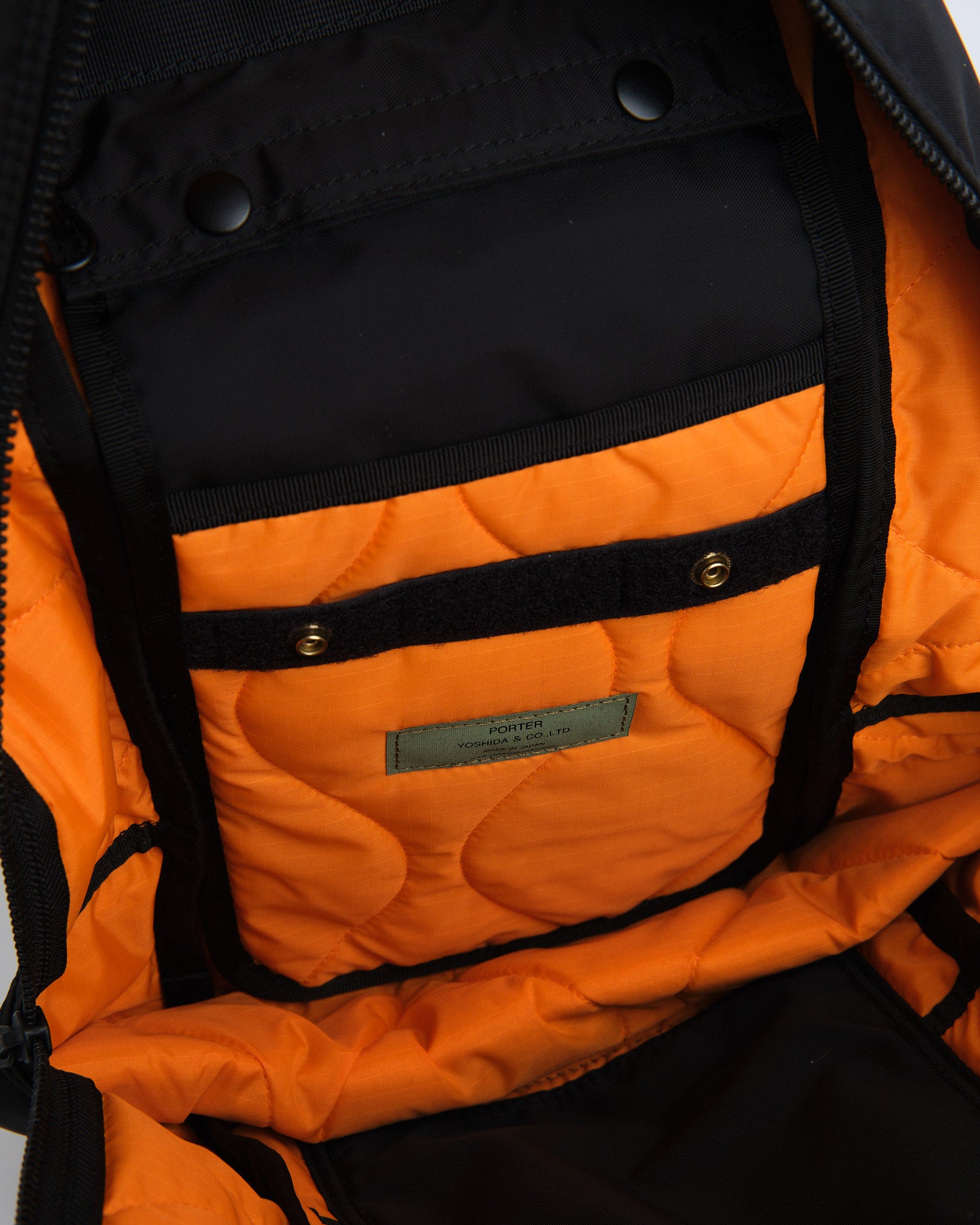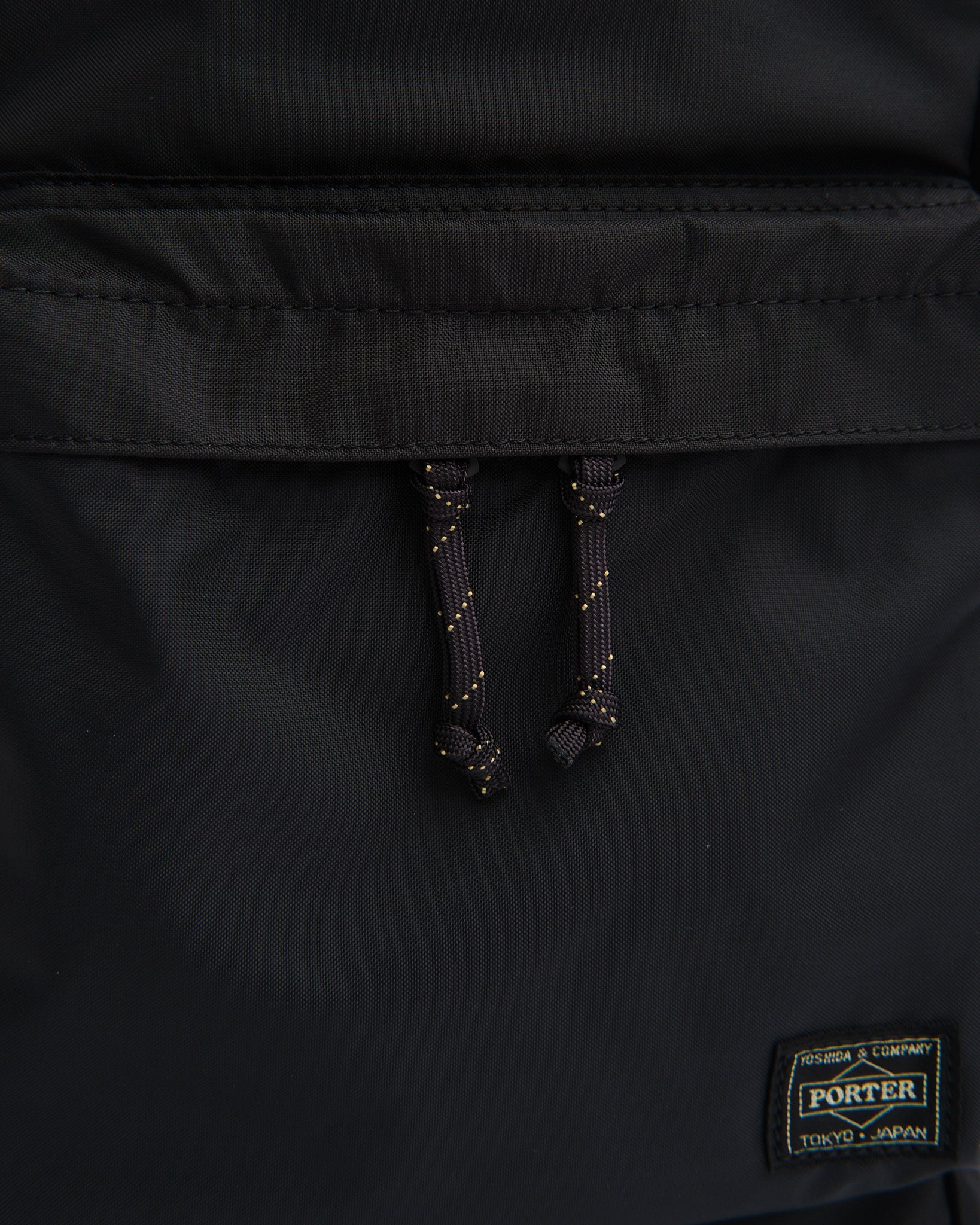 Valmistettu teollisuustason 210 denier 6 nylon korkealujuuslangasta, tämä musta PORTER-laukku on tehty kestämään. Etutaskun ja laukun rungon välisen ainutlaatuisen värin epäsäännöllisyys luo eri erien näköisen ulkonäön, lisäten sen karua viehätystä. Irrotettava tasku toimii myös pussukkana, tarjoten lisätoiminnallisuutta.