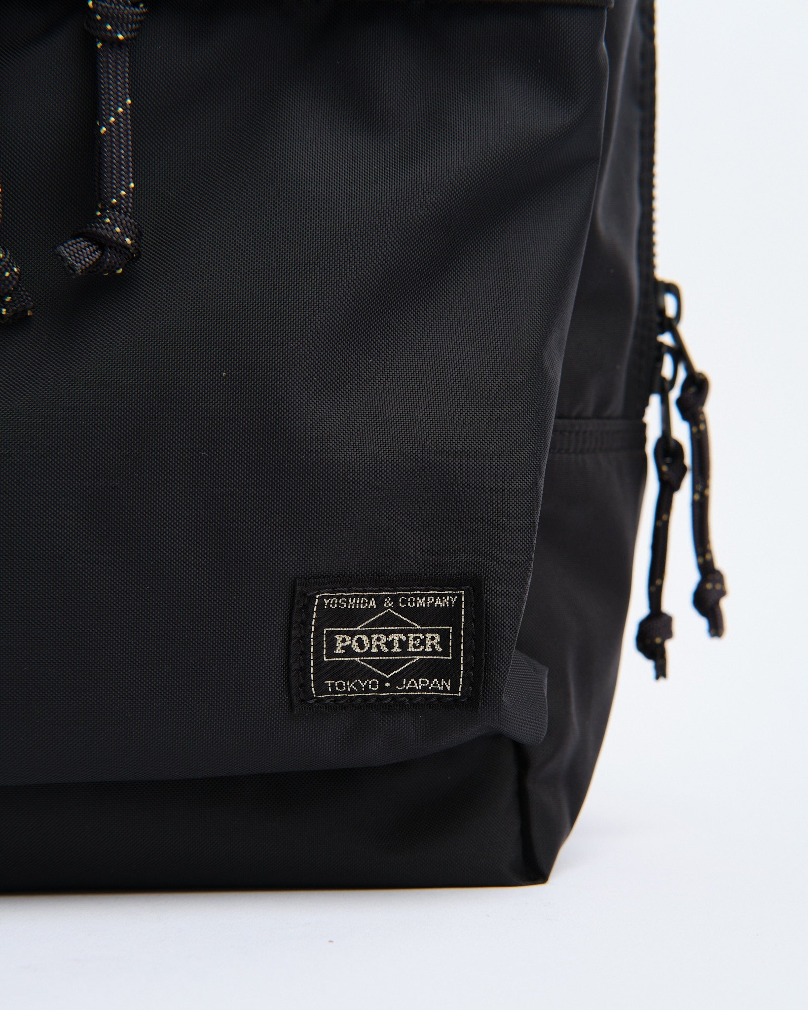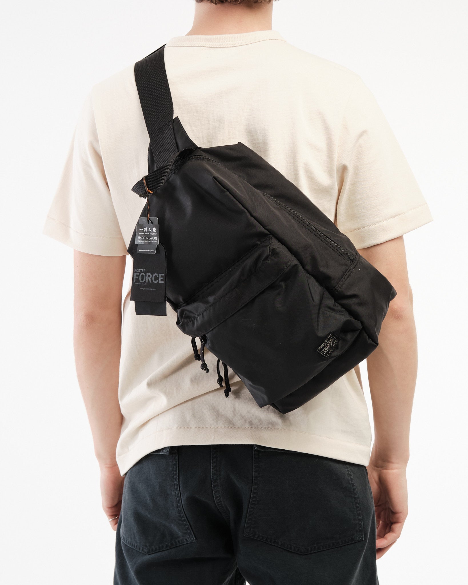 Esittelyssä musta olkalaukku PORTER by Yoshida Force -sarjasta. Sotilaallisesta muotoilusta ja käytännöllisistä ominaisuuksistaan tunnettu laukku on täydellinen liikkeellä oleville. Mitat W200/H325/D160 ja paino vain 425 g, se on ihanteellinen koko kaikkien tarpeellisuuksien kantamiseen.