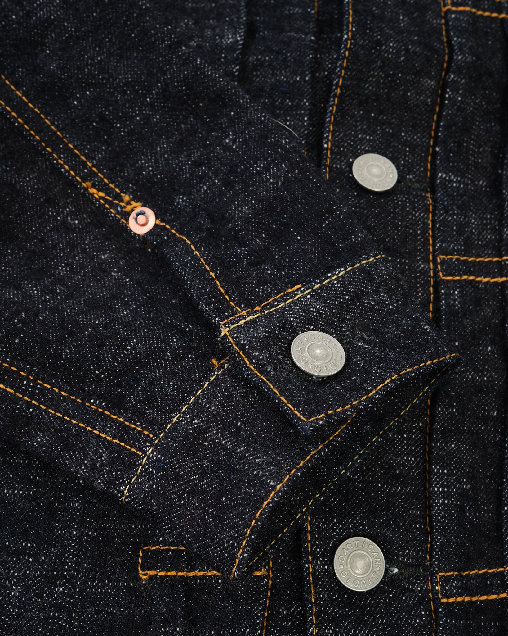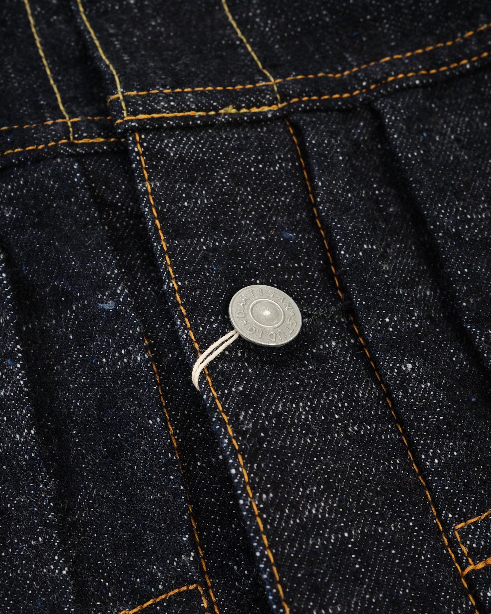 STUDIO D'ARTISAN GL3 2nd Type Denim Jacket (SD-4102) on mestarillinen uudelleenluomus klassisesta 2. tyypin denim-takista, joka on valmistettu käyttäen merkin yksinoikeudella valmistettua 15oz GL3 selvedge-denimiä. Suunniteltu hyödyntämään GL3-kankaan ainutlaatuisia ominaisuuksia, jokainen denimin koostumusosan—lankapaksuus, epätasainen muoto, naruvärjäysprosessi ja kudontatiheys—on huolellisesti hiotu.