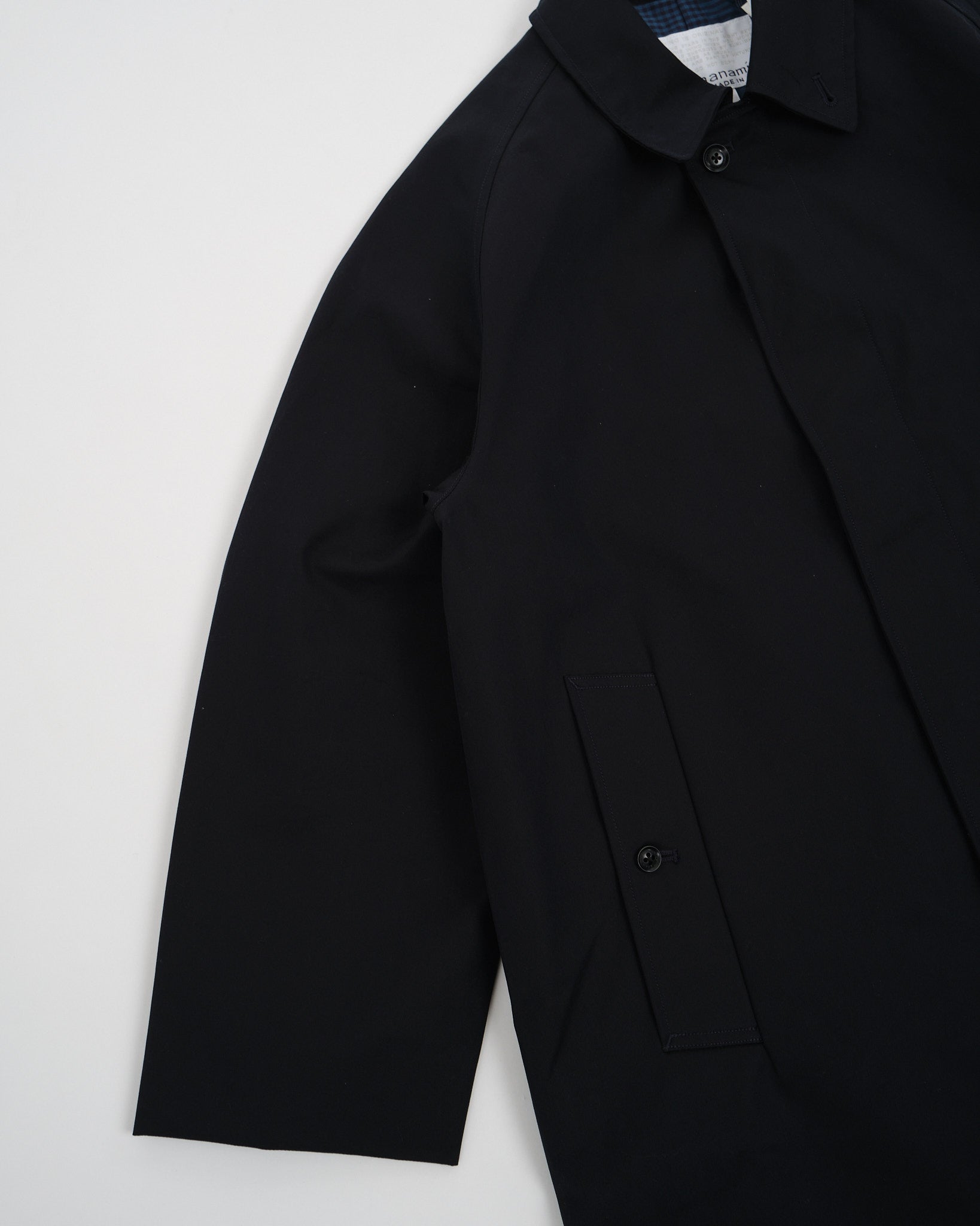 Koe elementit mukavasti Nanamicas GORE TEX Balmacaan -takin kanssa, käytännöllisen tyylin fuusio Japanista. Tämä syvän sininen takki toimii puolustuksenasi elementtejä vastaan yhdistäen asiantuntevan käsityötaidon ja huipputeknologian. Rentouttava A-linjainen muotoilu tarjoaa ulkonäön, kun taas 2L Cotton Twill GORE TEX -materiaali pitää sinut kuivana mahdollistaen samalla hengittävyyden. Sisäpuolella oleva puuvilla/COOLMAX® vuori, jossa on signature ruutukuosi, lisää ripauksen sofistikointia. Takin ainutlaatuinen suunnittelu sisältää tilavat yksittäiset raglanhihat ja neliönmuotoiset taskut, jotka on uudelleenkuviteltu 22FW-kaudeksi yhdistämään tyylin ja toiminnallisuuden saumattomasti. Varustettuna kahdella taskulla, jotka on vuorattu erittäin vedenpitävällä GORE TEX -kankaalla, tärkeät tavarasi ovat suojattu kovilta sääolosuhteilta.