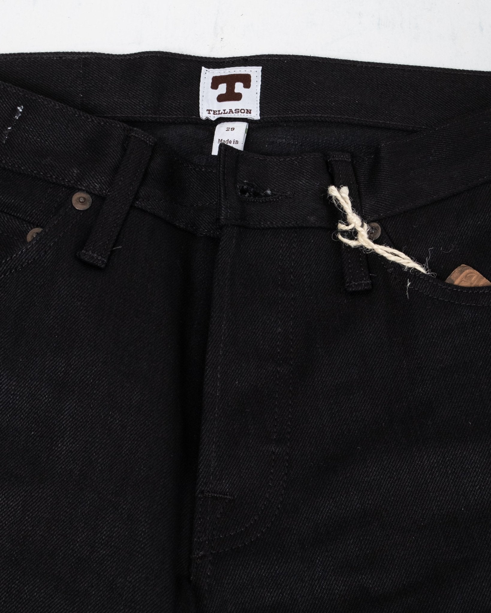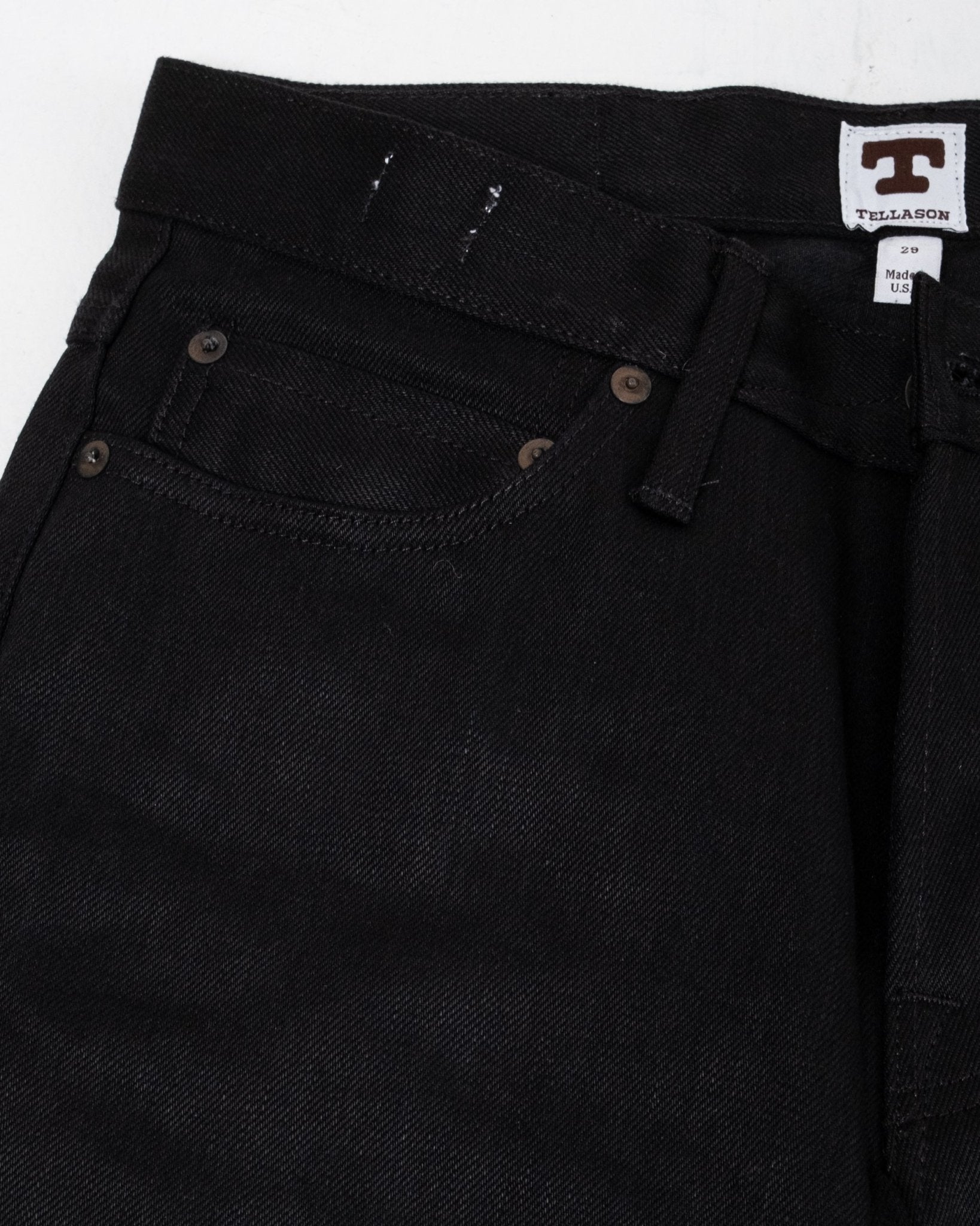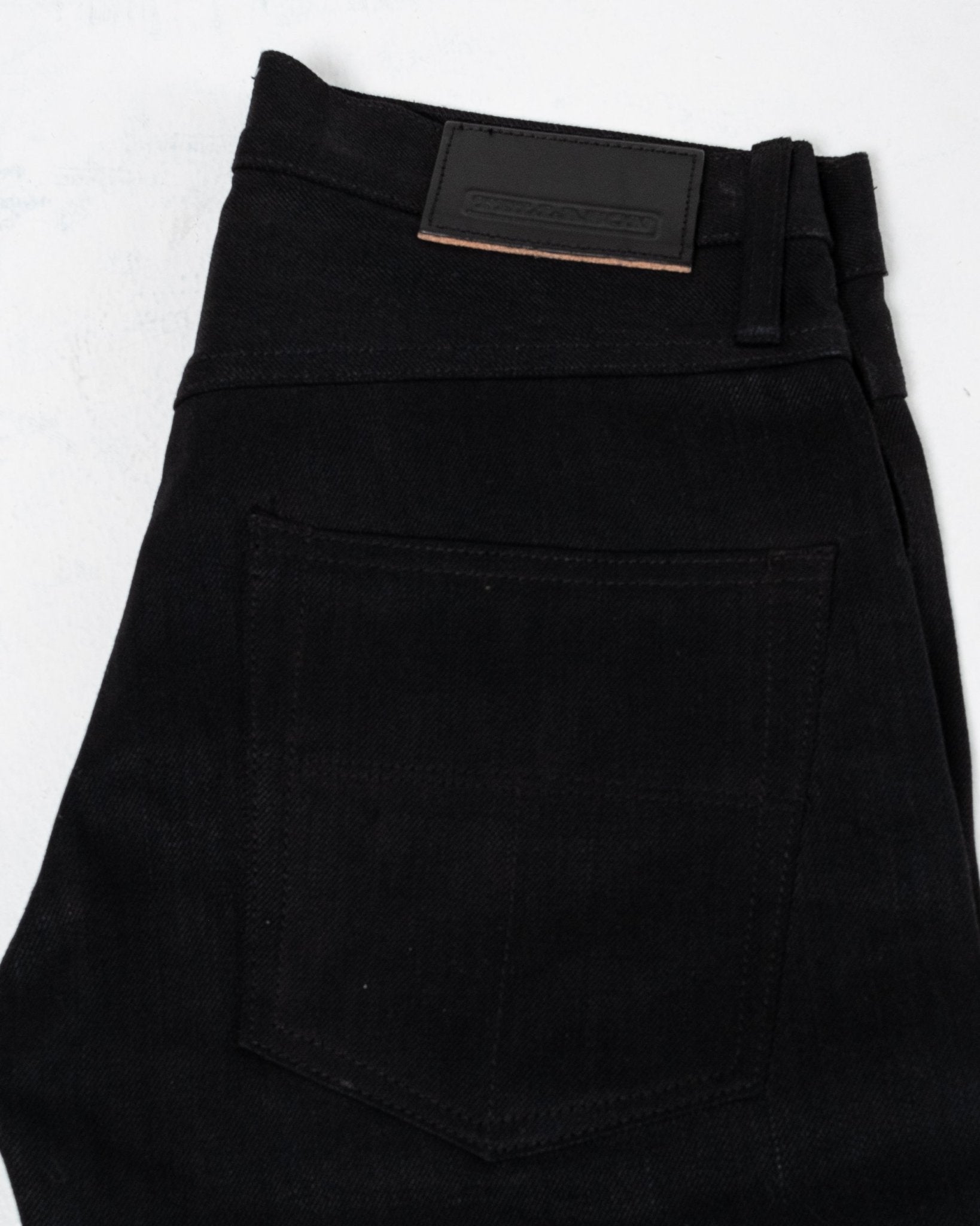 1. Ylellinen materiaali: Valmistettu 13,5 unssista mustaa reunavahvistettua denimiä, joka on hienostunut ja kestävä vaatekaapin peruspilari.