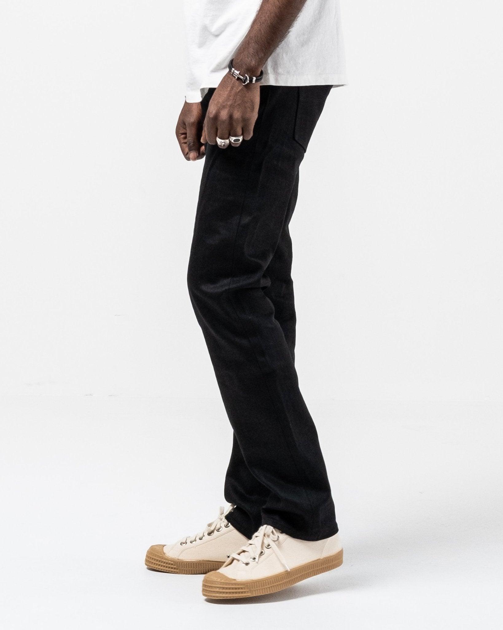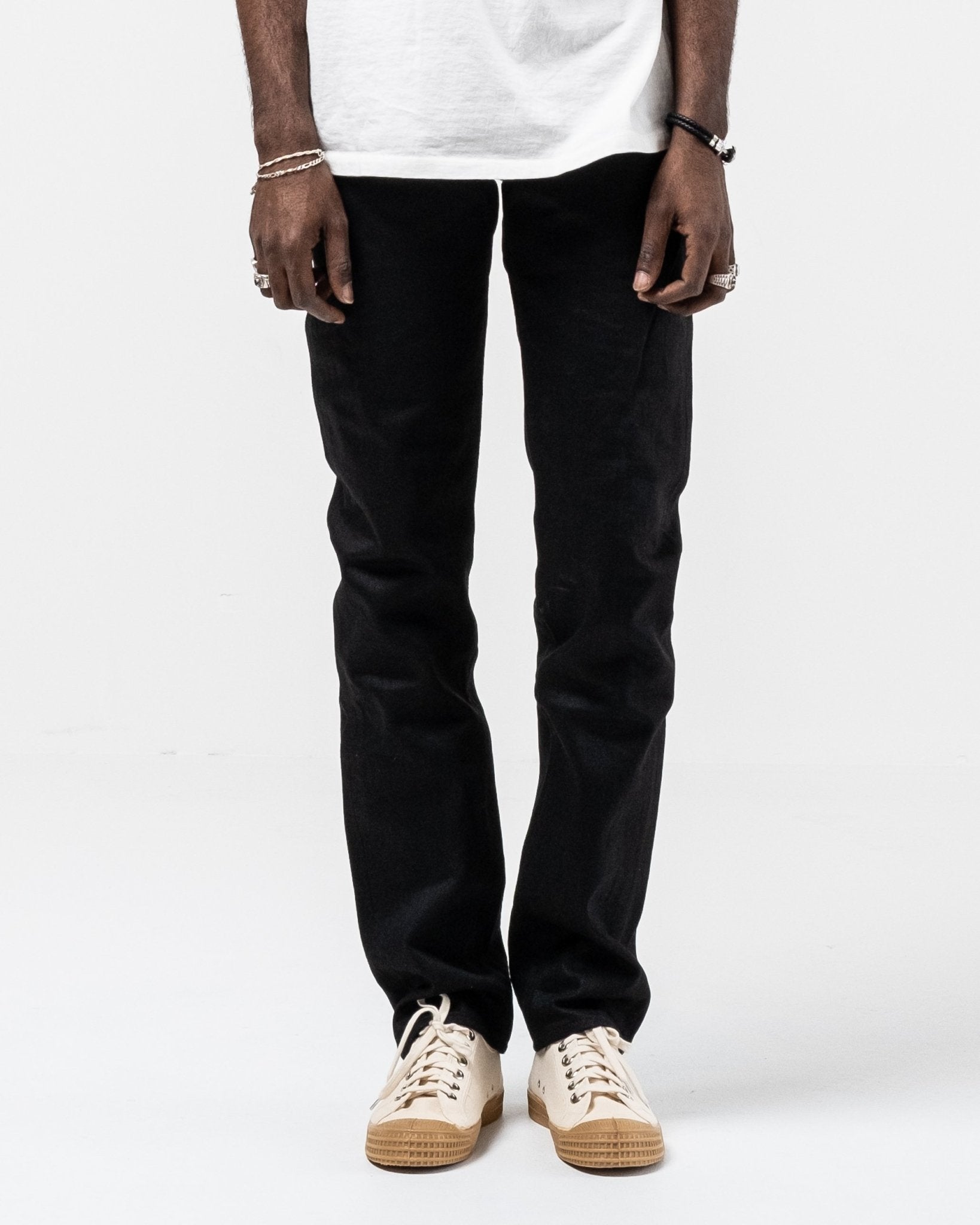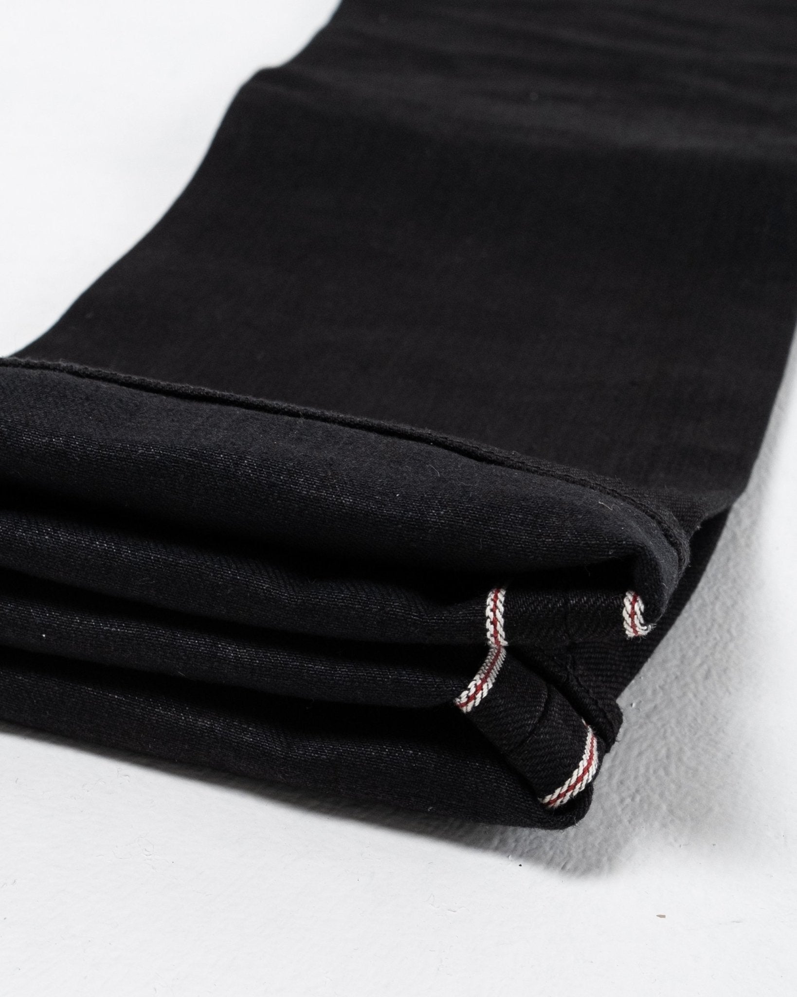 1. Ylellinen materiaali: Valmistettu 13,5 unssista mustaa reunavahvistettua denimiä, joka on hienostunut ja kestävä vaatekaapin peruspilari.