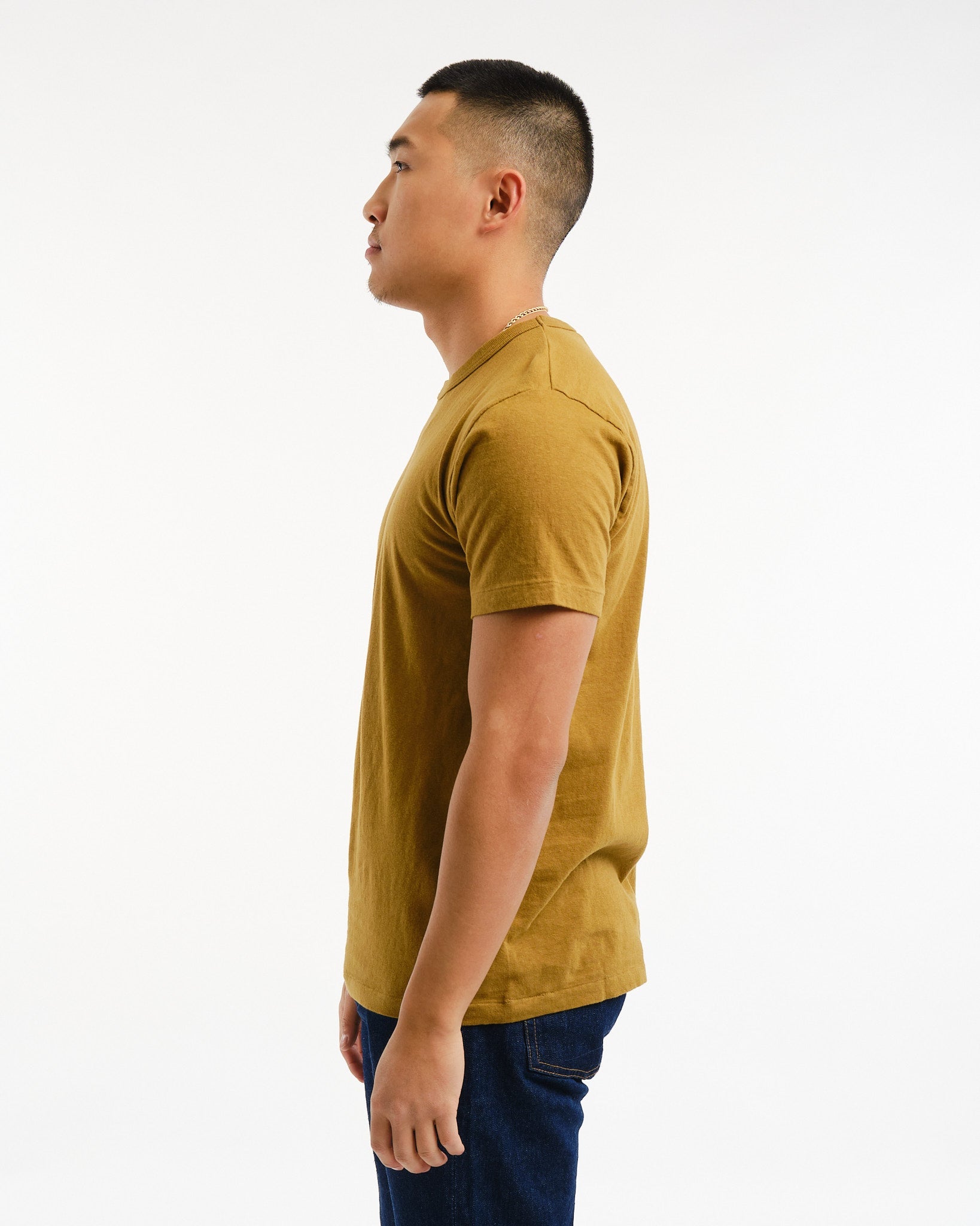 Distinct Seamless Design: Ainutlaatuinen tuotantoprosessimme antiikkisilla pyörivillä neulekoneilla johtaa T-paitaan ilman sivusaumoja, tarjoten vertaansa vailla olevaa mukavuutta ja klassista ulkonäköä.
