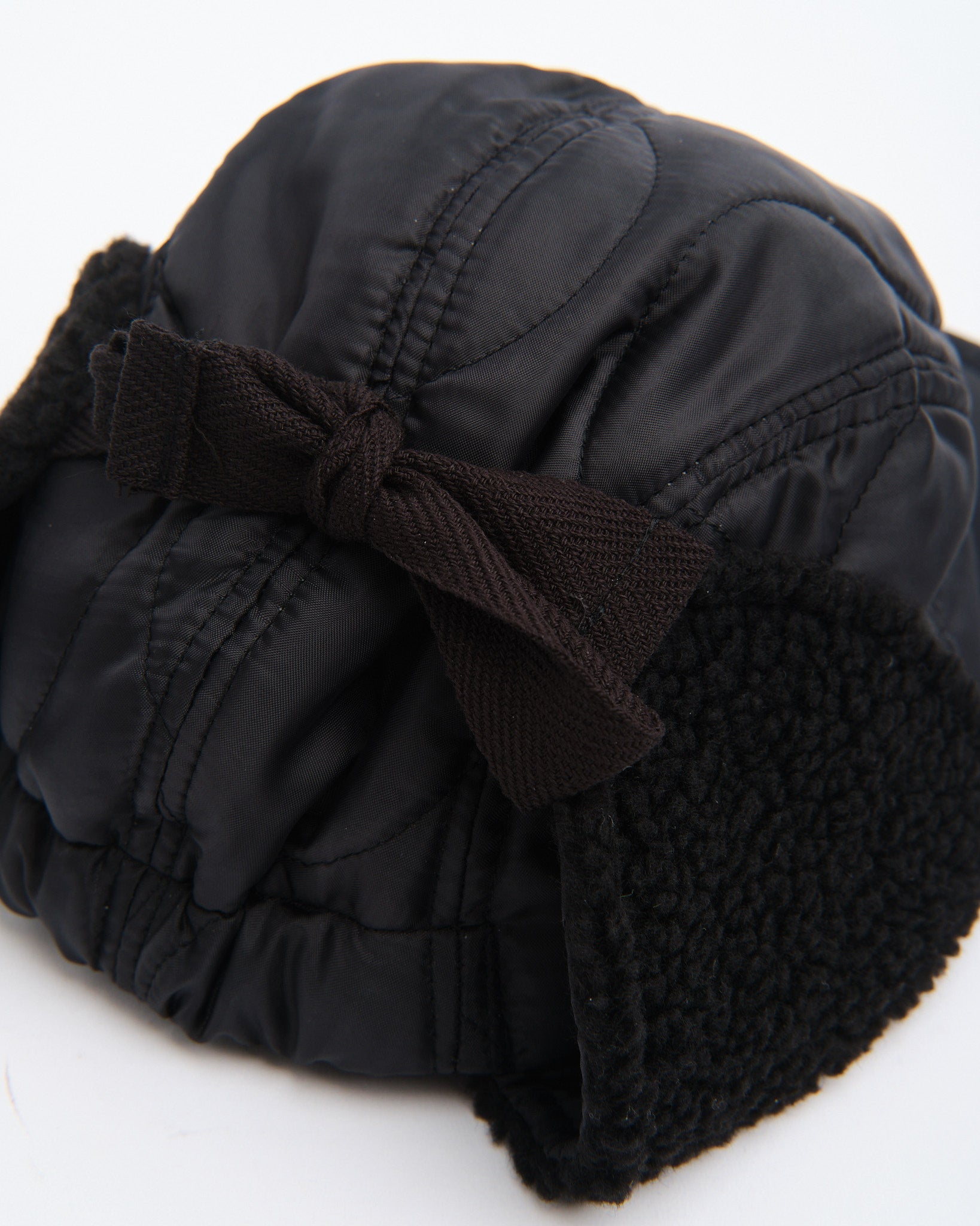 Halfmoon Cap With Ears in Black Found Featherilta on kylmän sään välttämättömyys, joka on juurtunut sotilaalliseen inspiraatioon ja jalostettu toteutuksessa. Valmistettu Japanissa tikatusta nailon ulkopuolesta polyesteritäytteellä, siinä on boa fleece -korvapaneelit lisälämmön takaamiseksi. 4-paneelinen rakenne, semi-leveä EVA-vaahtomuovinen lieri ja täysin joustava takaosa yhdistyvät tarjoten rakenteellisen, mutta joustavan istuvuuden. Hienovaraiset puuvillaiset tasapäiset nauhat, käsinleimatut yksityiskohdat ja QR-koodattu hoitolappu viimeistelevät tämän unisex-lippiksen, joka on suunniteltu sekä käytännöllisyyttä että kaupunkilaista viileyttä varten.