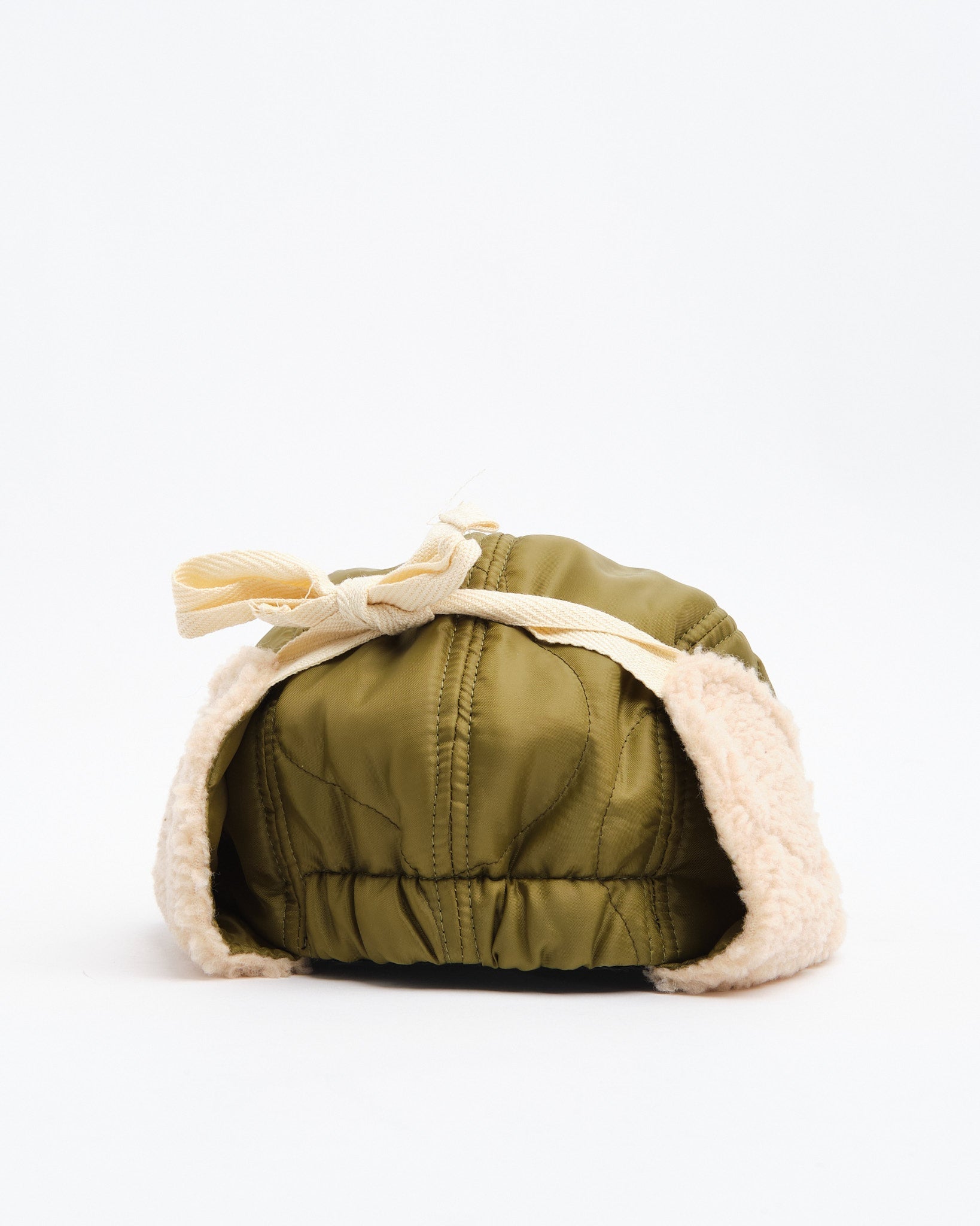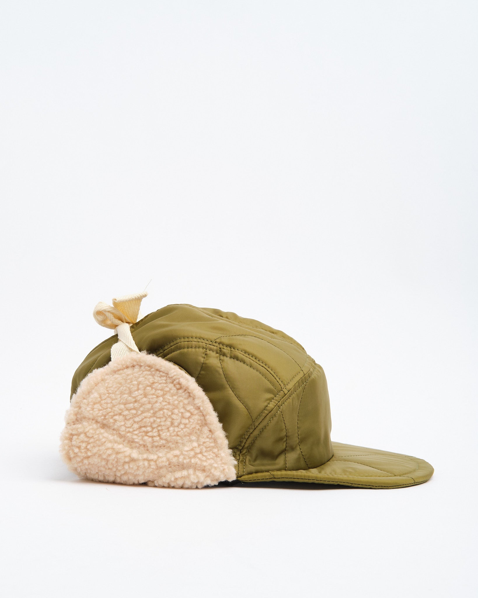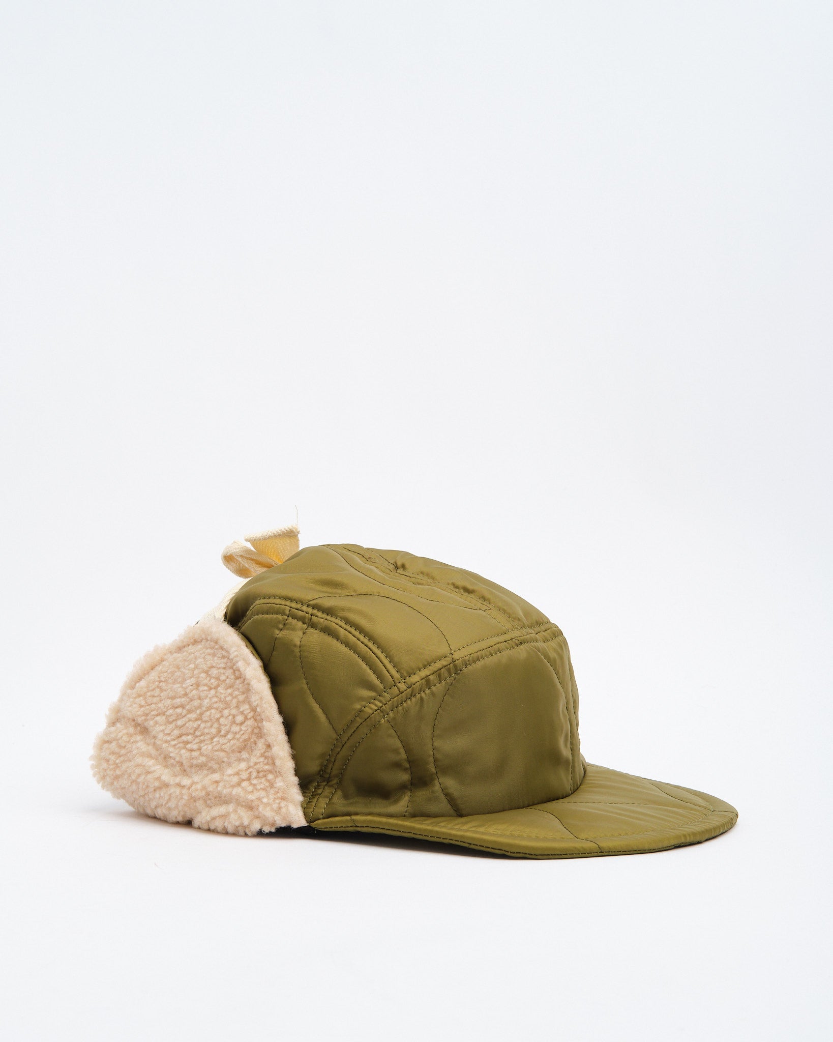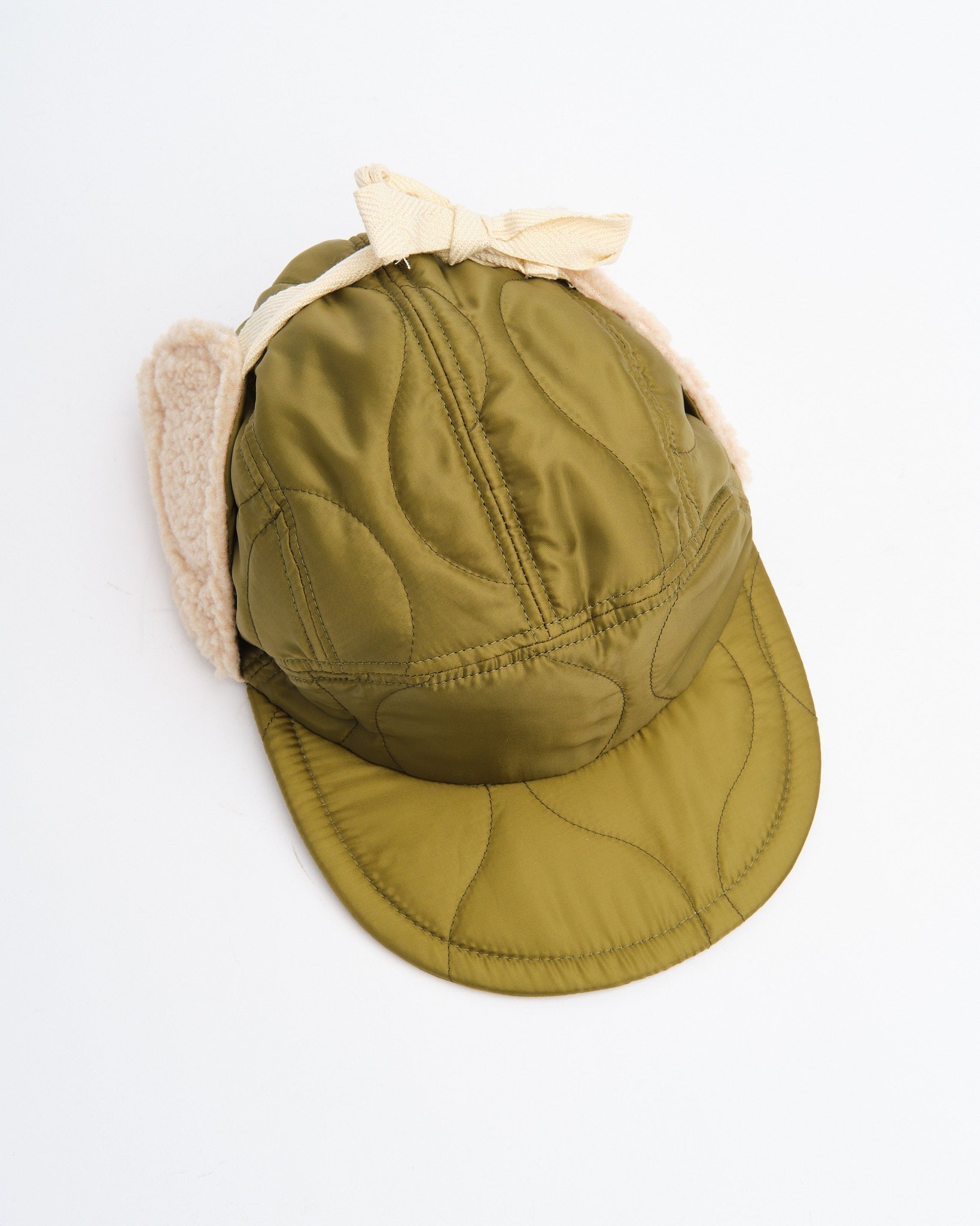 Halfmoon Cap With Ears vihreänä Found Featherilta on sotilaallisesti inspiroitu talvikappale, joka on suunniteltu lämpimäksi ja mukavaksi. Valmistettu Japanissa tikatusta nailonkuoresta polyesteritäytteellä ja pehmeillä boa fleece -korvapaneeleilla, tämä 4-paneelinen lippis on toiminnallinen, kevyt ja harkitusti yksityiskohtainen. Semi-leveä pehmeä EVA-vaahtomuovinen lippa tarjoaa rakennetta ilman massaa, kun taas puuvillaiset tasaiset nauhat ja täysin joustava takaosa takaavat turvallisen, joustavan istuvuuden. Viimeistelty käsileimatulla yksityiskohdilla, puuvillatvillivuorella ja QR-koodatulla hoitolapulla, se on utilitaristinen välttämättömyys kylmän sään tehtäviin.