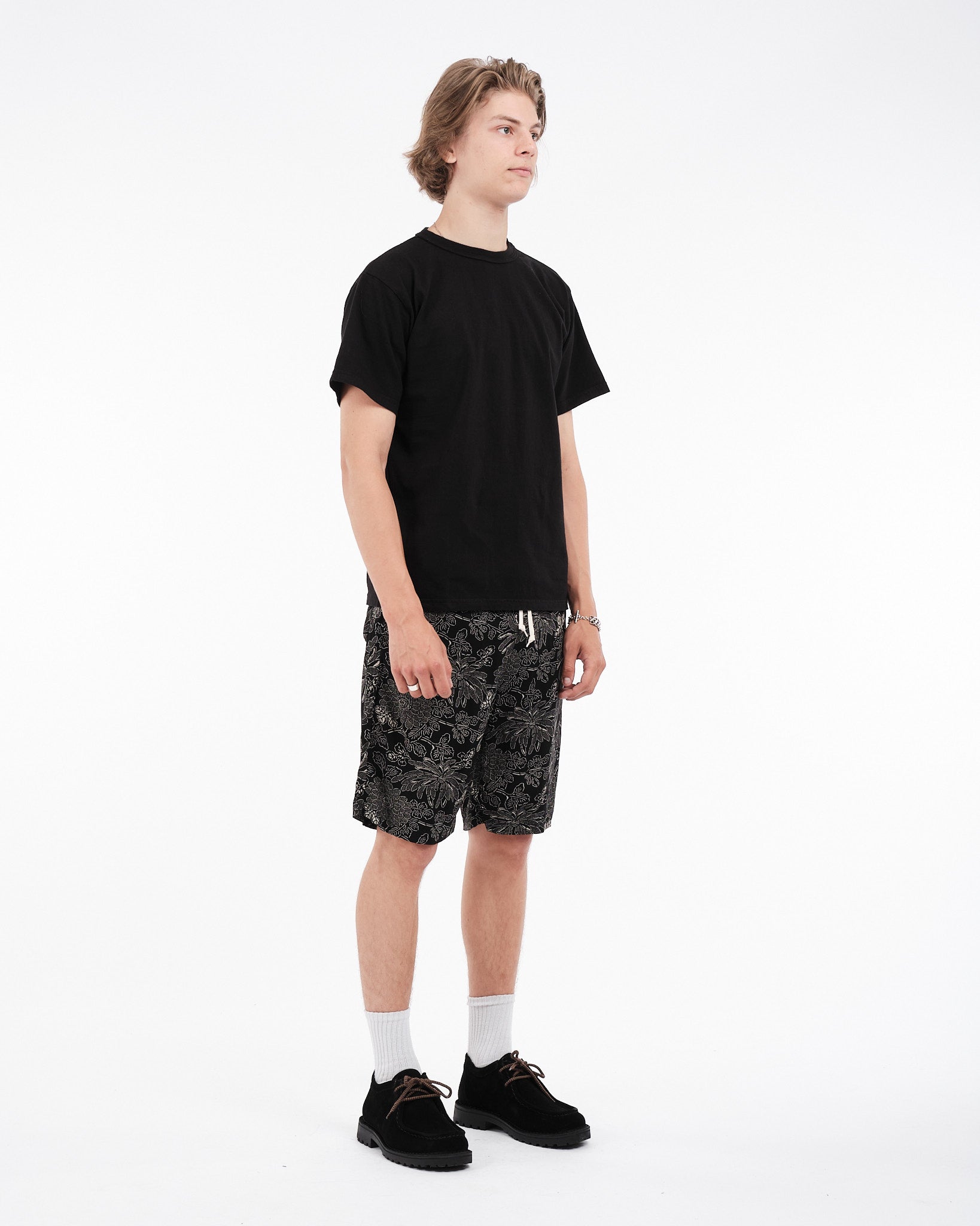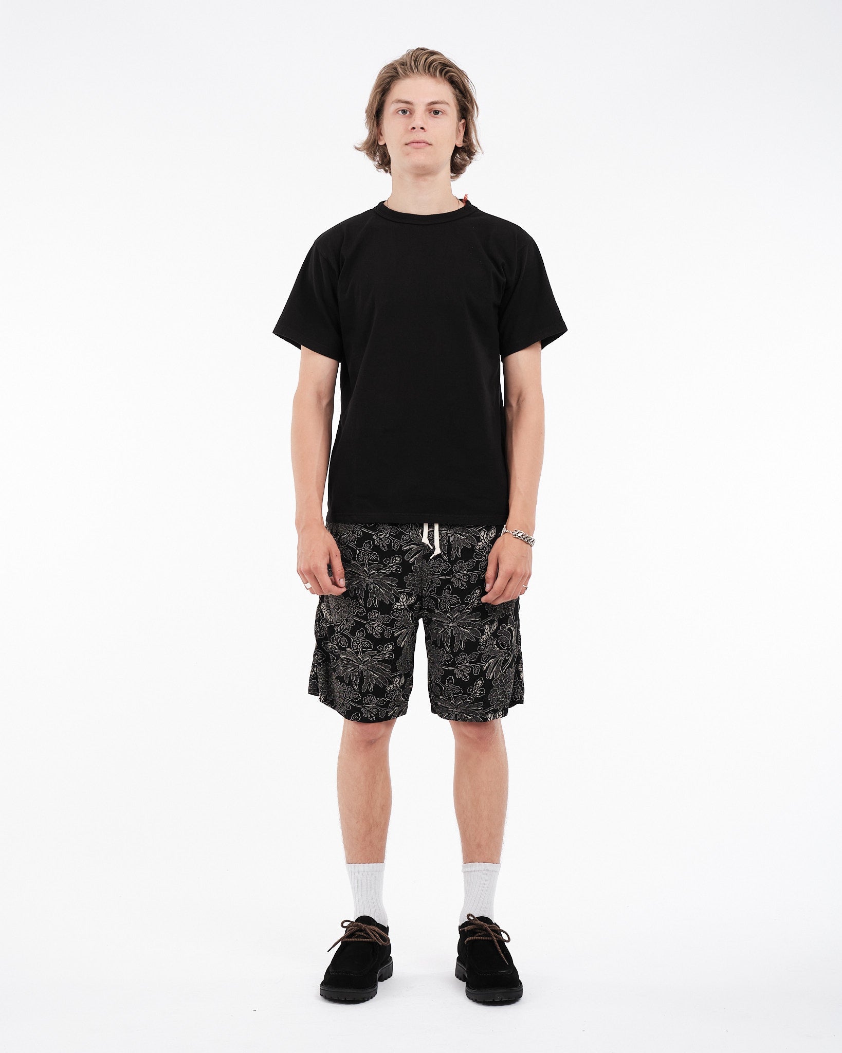orSlow Hawaiian Shorts in Black ovat täydellinen sekoitus mukavuutta ja tyyliä, ihanteelliset lämpimän sään käyttöön. Valmistettu 100% rayonista, nämä shortsit tarjoavat kevyen ja hengittävän tunteen. Kiristysnauhallinen vyötärö takaa mukavan ja säädettävän istuvuuden, kun taas kaksi sivutaskua tarjoavat kätevää säilytystilaa. Kauden kukkaprintti lisää tyylikkyyttä mihin tahansa rentoon asuun. Valmistettu Japanissa, ne heijastavat orSlow'n sitoutumista laadukkaaseen käsityöhön ja ajattomaan muotoiluun.