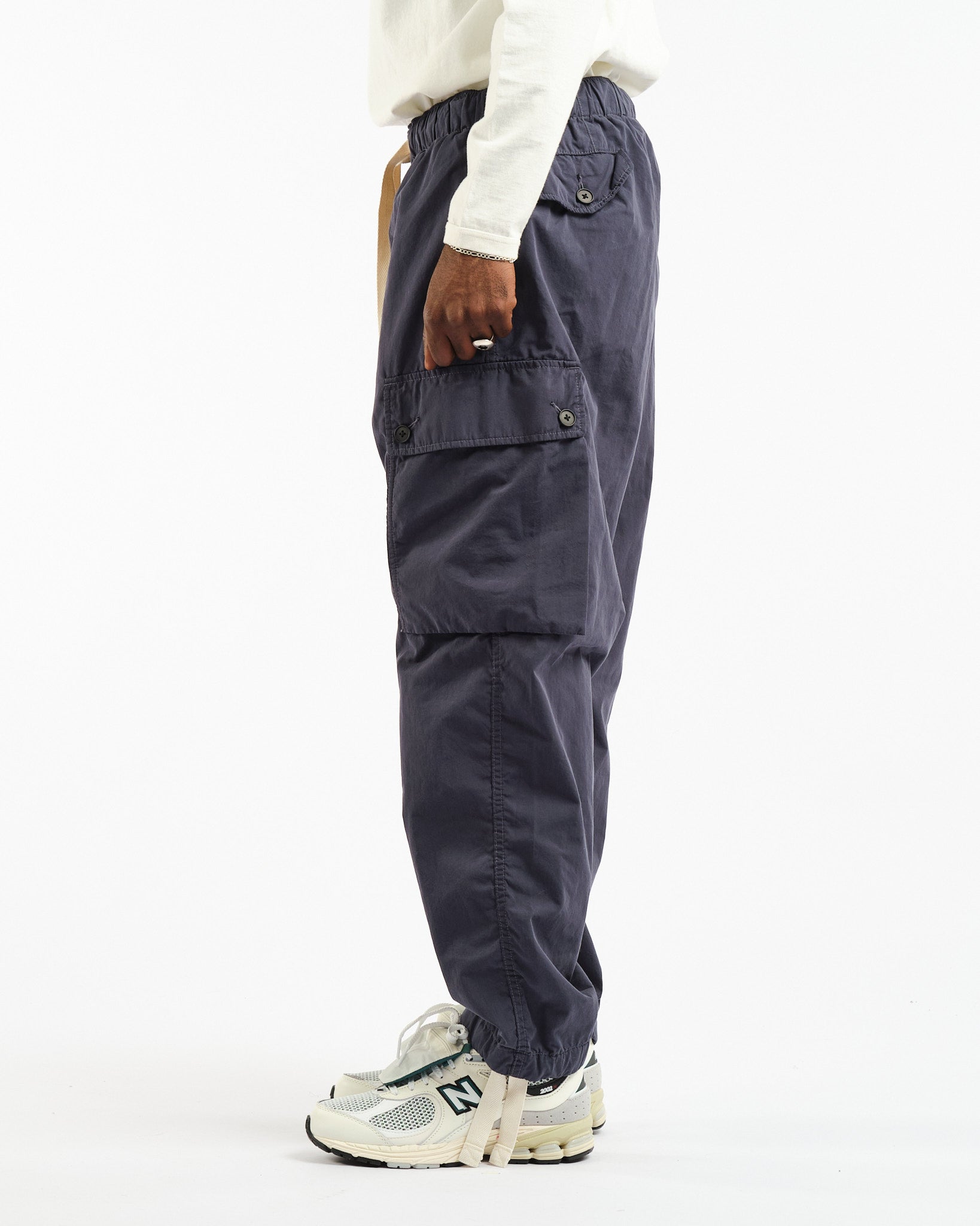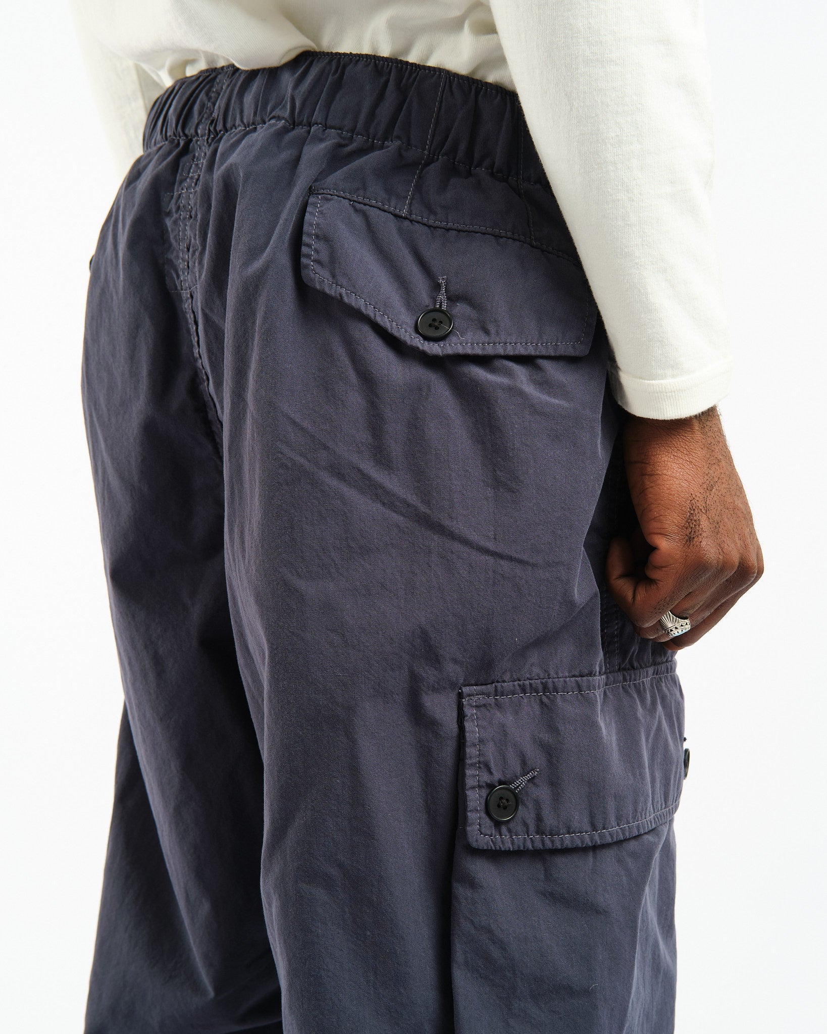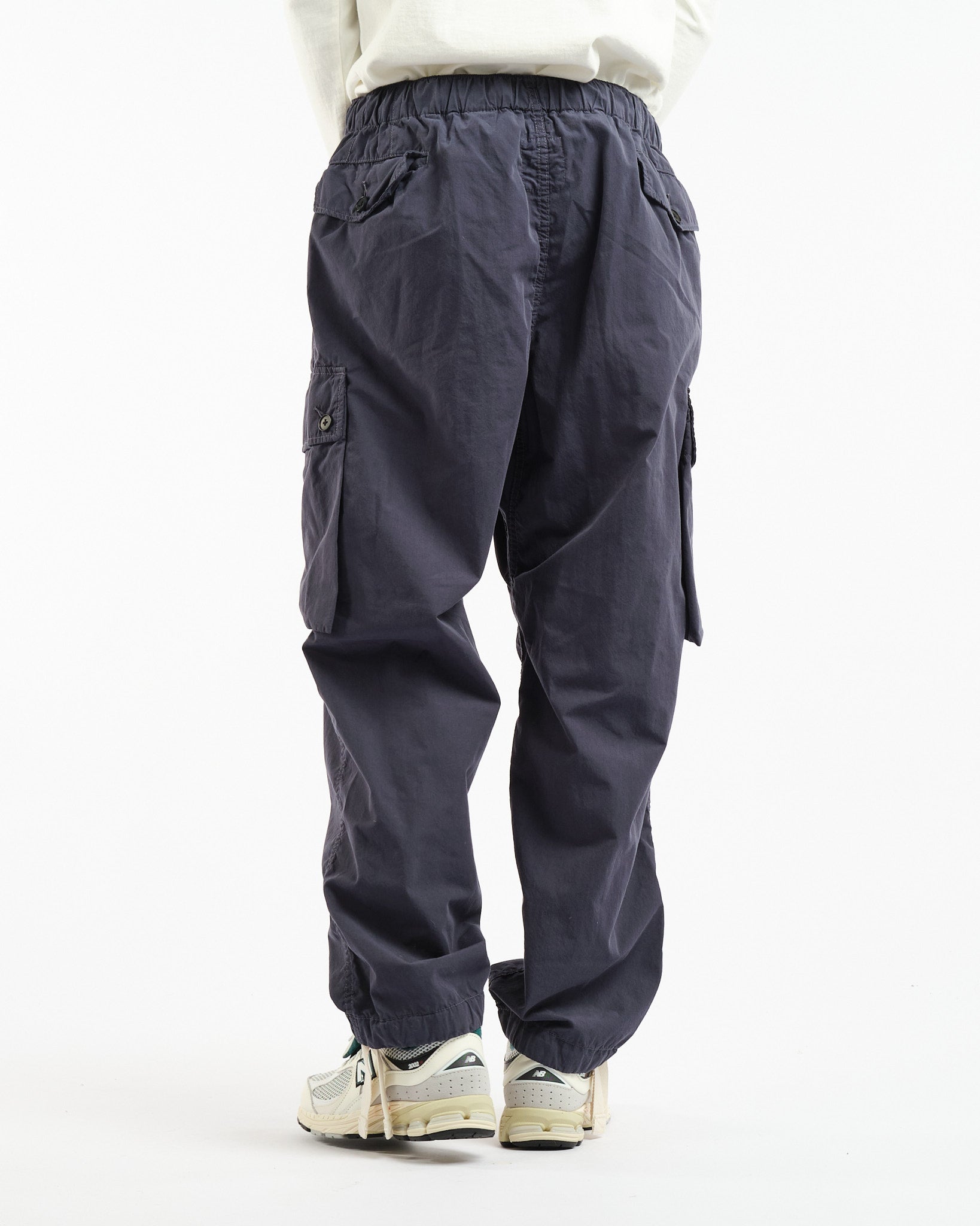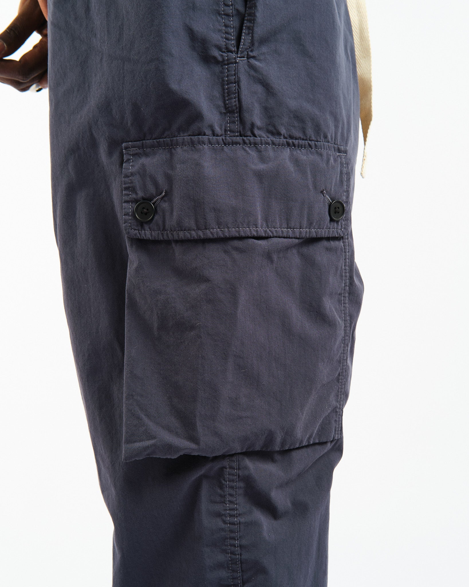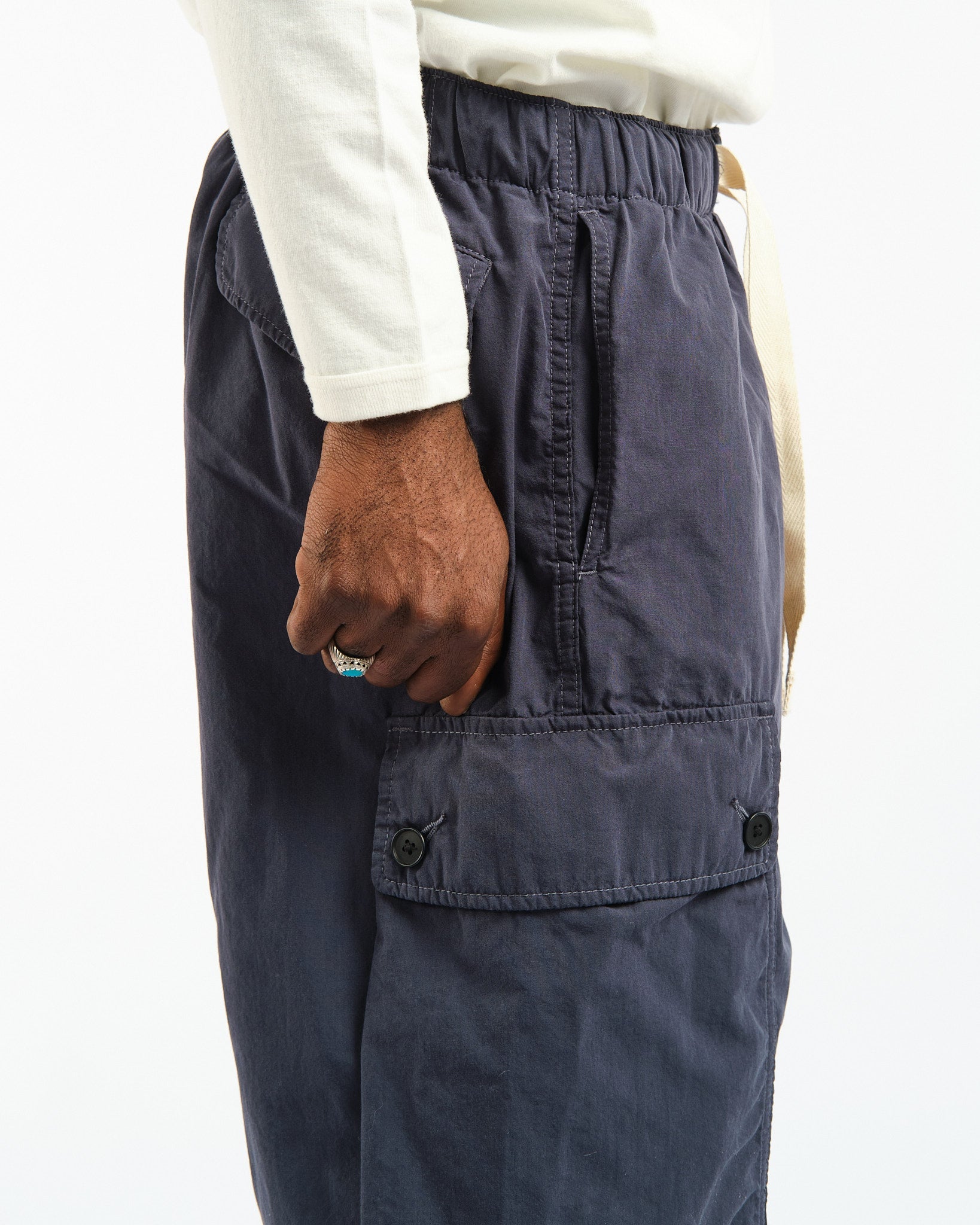 Valmistaudu mihin tahansa seikkailuun Nanamican Easy Cargo -housuilla värissä Marine Navy. Nämä housut on valmistettu broadcloth-kankaasta, jossa on peittävä ydinsäie, jossa polyesteriydin on kääritty puuvillan ympärille lisäämään kestävyyttä. Pestu viimeistely antaa housuille tyylikkään ilmeen, ja luonnollisen värinen puhdistamaton kangas, jota on käytetty lantion vuorauksessa, lisää kokonaisuuden mukavuutta. Taskujen suunnittelu perustuu 50-luvun sotilascargo-housuihin, ja leveästi kapeneva siluetti on väljä lantiolta ja kapenee kohti lahjetta. Napit ovat luonnollisia orgaanisia pähkinänappeja, ja tukinapit ovat simpukkanappeja, joissa on merellinen tuntu. Koon säädettävän vyötärön ja lahkeiden ansiosta nämä housut ovat täydelliset mihin tahansa seikkailuun.