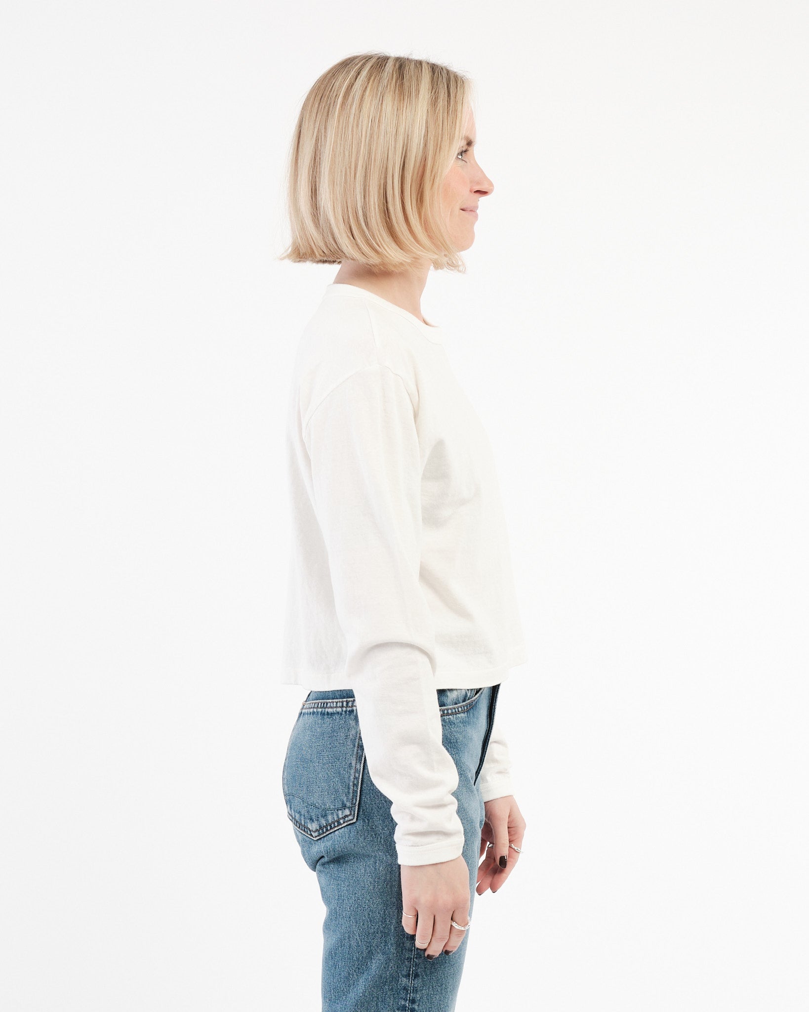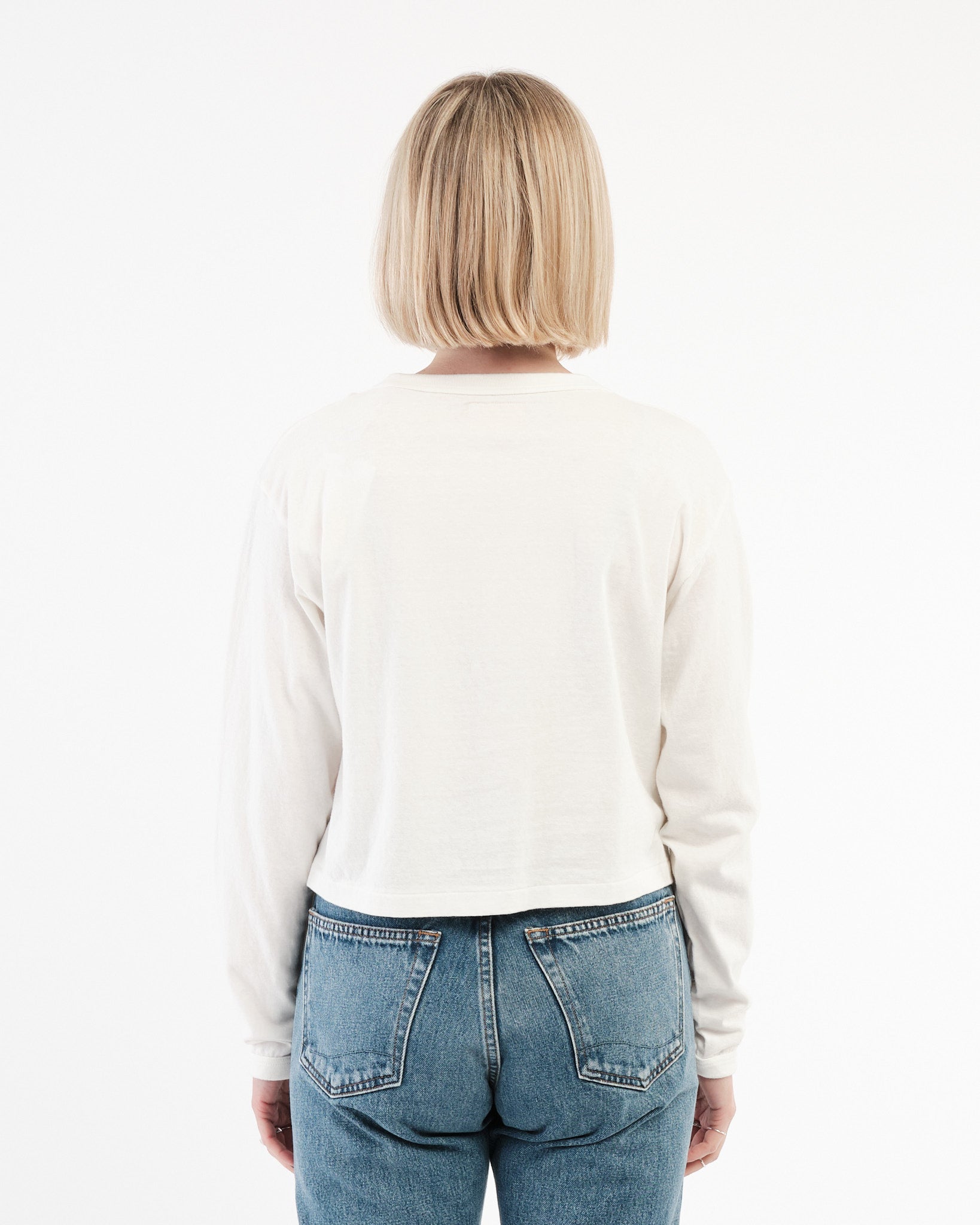 Hi'aka LS T-paita Off White Sunray Spiritiltä. Sunrayn T-paidat ovat perinteisen mallisia, inspiroituneita 50-luvun tunteesta. Rentouttava, lyhyempi pituus ja tavallinen istuvuus. Kaulus, ribbineulos ja kankaat ovat myös perinteisiä. 260 g. Valmistettu Japanissa. Hi'aka LS on pitkähihainen versio klassisesta T-paidasta, uutuus syksy/talvi 2022.
