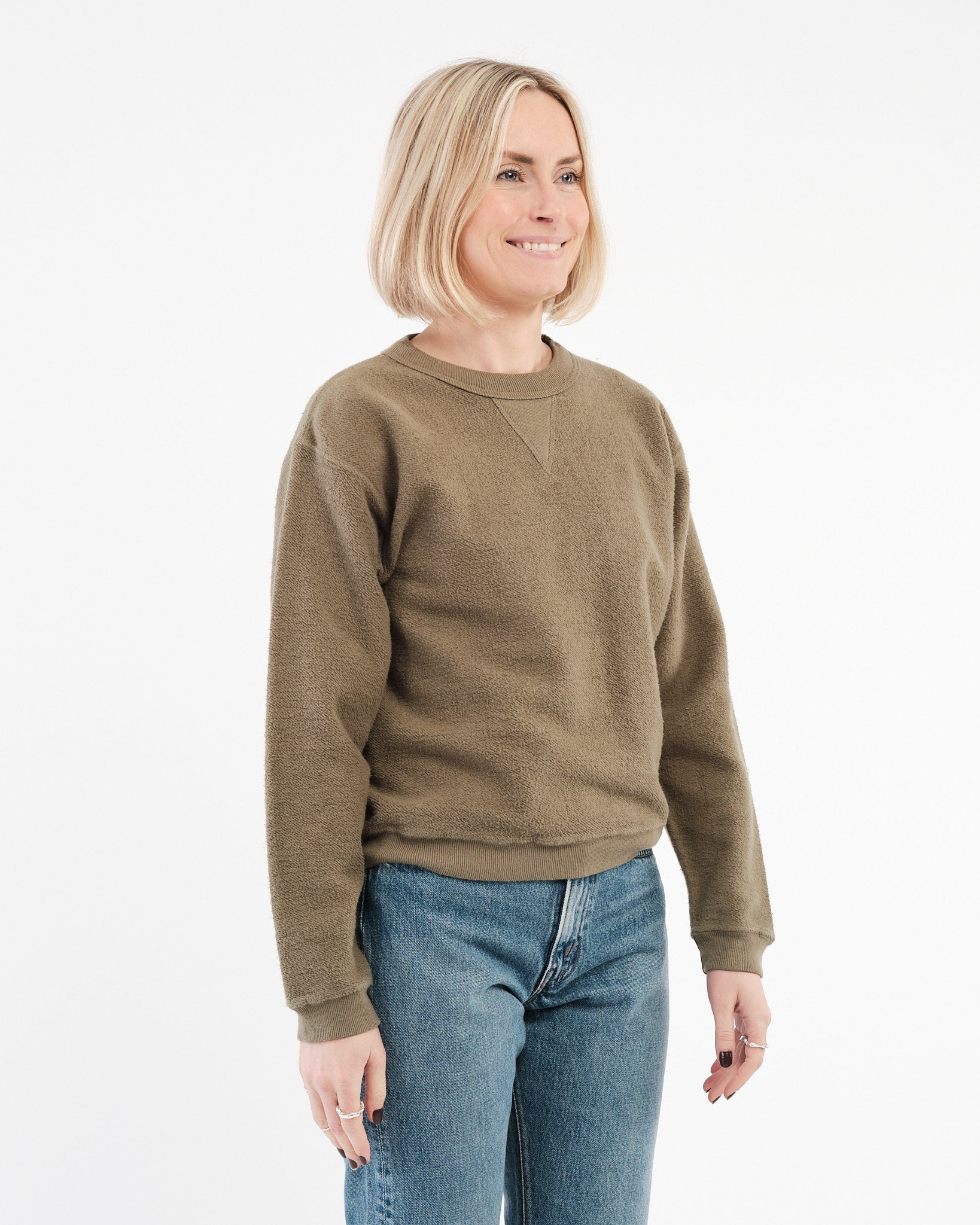 Hina Reversed Fleece Crew Neck Sweatshirt Deep Lichen Green
