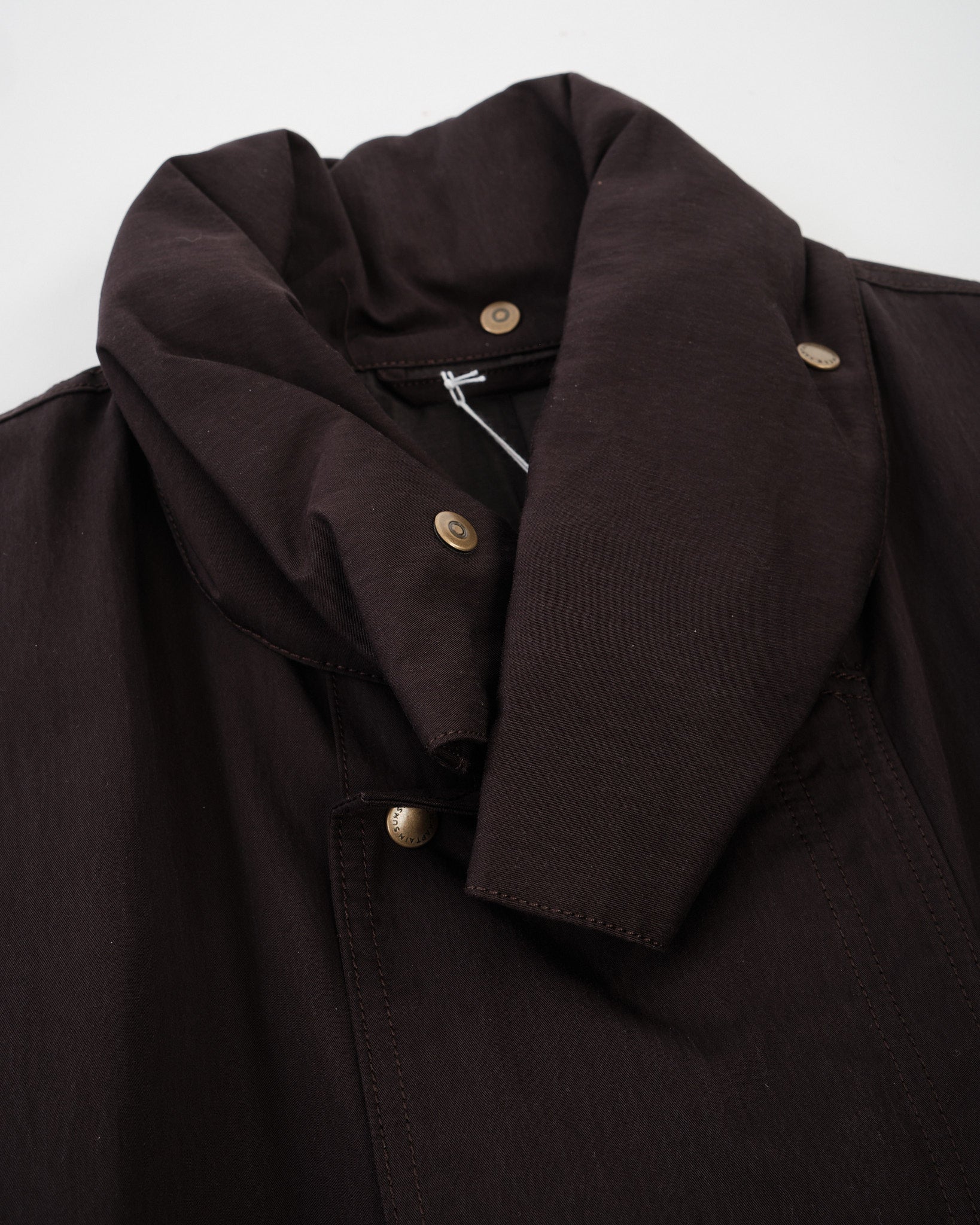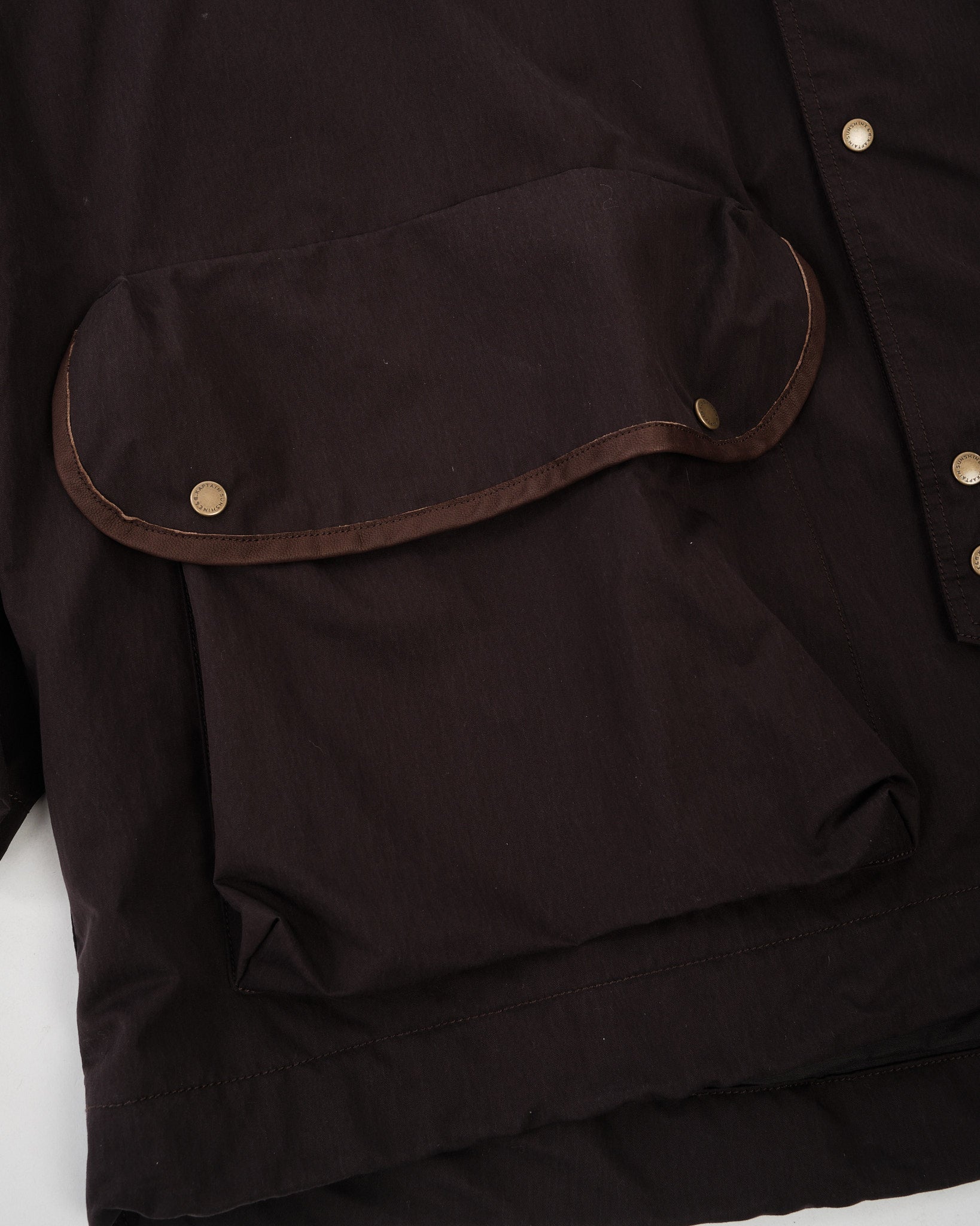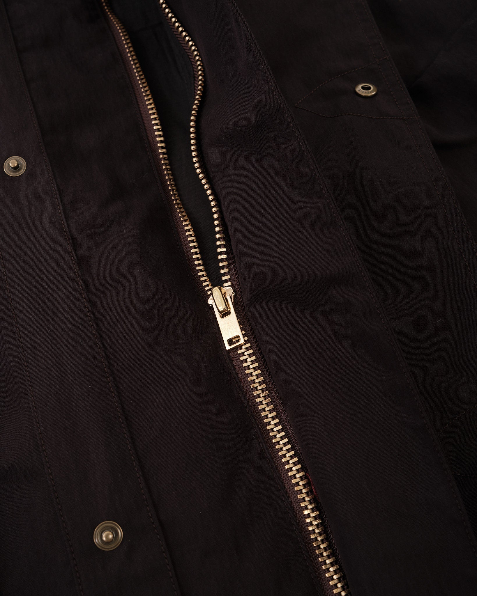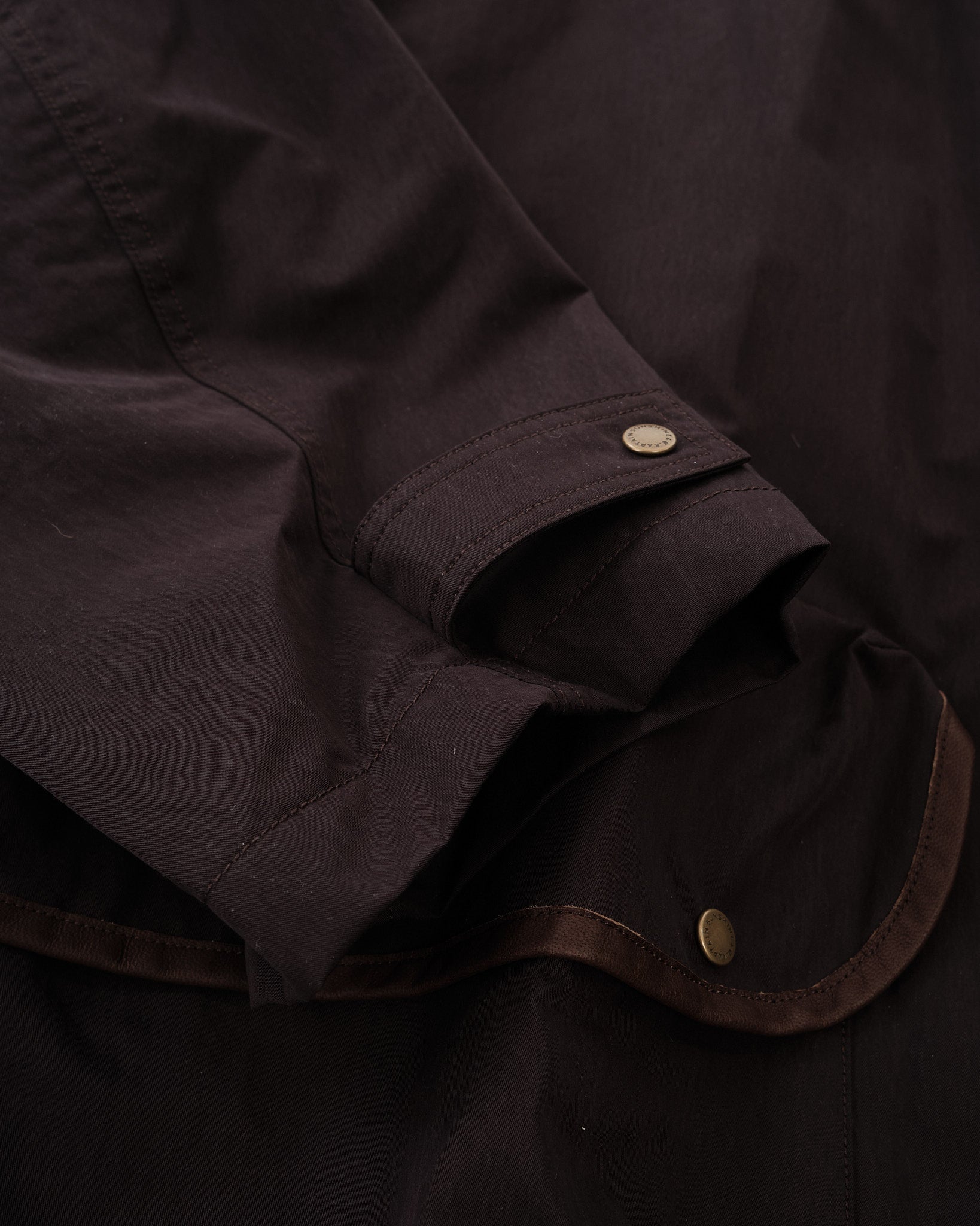 Kangas on tiheää puuvilla-nylon-twilliä, joka on kudottu puuvillaloimella ja nylonkuteella luoden kestävän, mutta kevyen rakenteen. Vettähylkivä viimeistely lisää käytännöllistä suojaa säilyttäen samalla hengittävyyden ja mukavuuden.