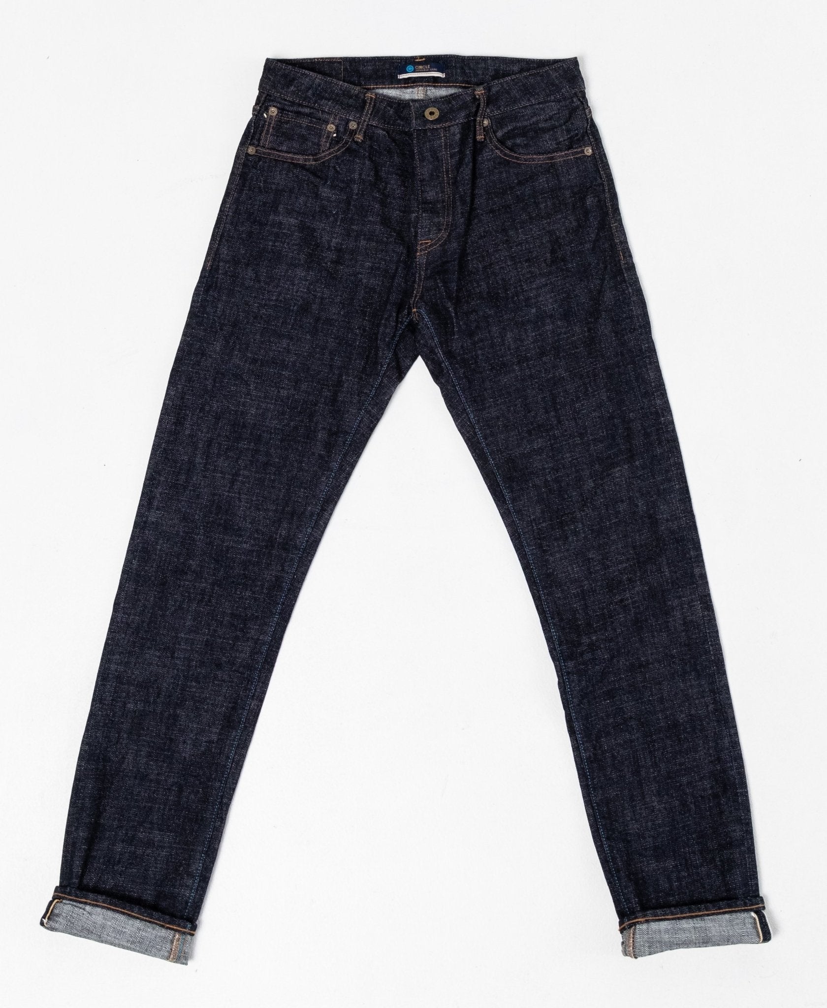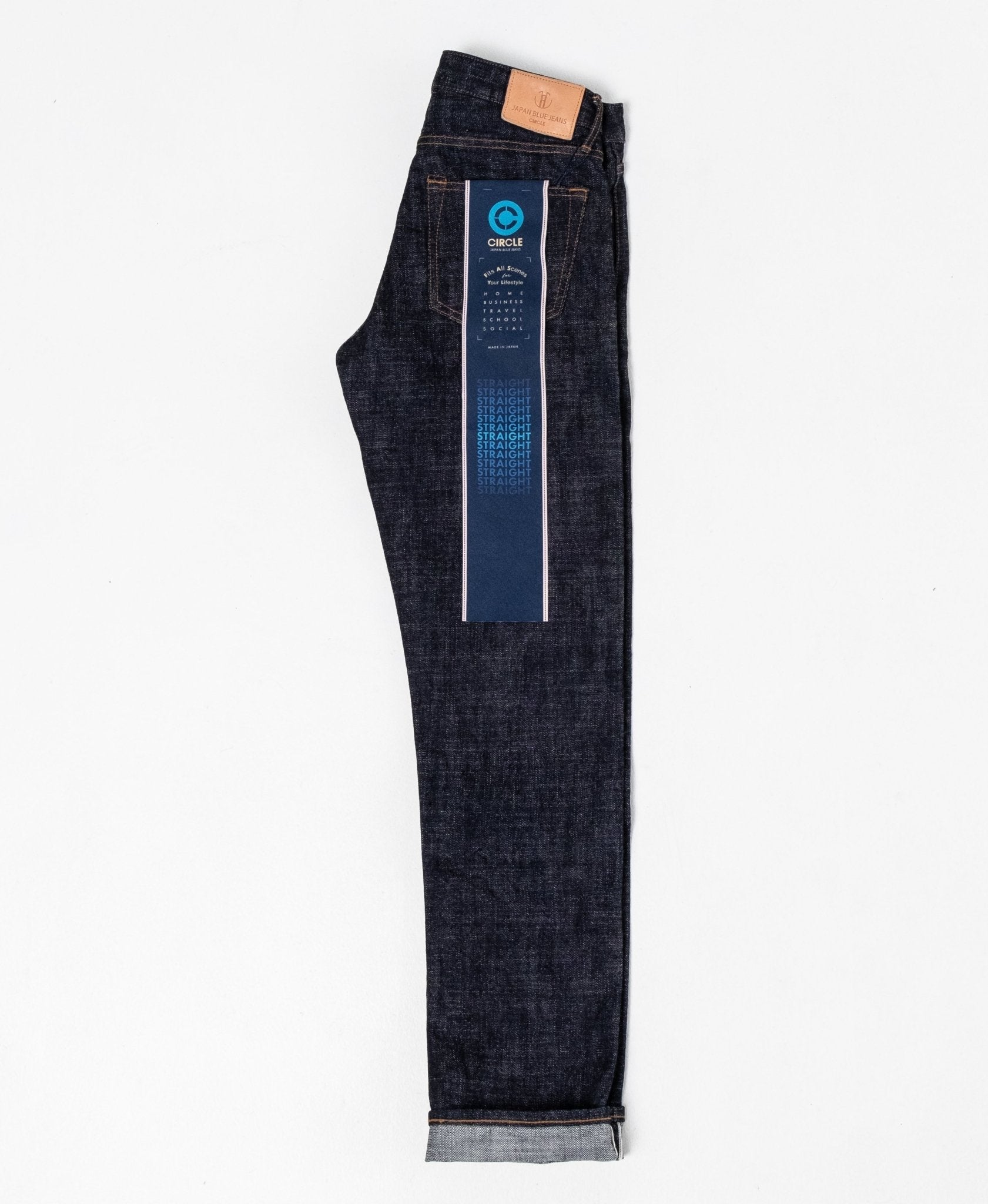 J366 Circle 16.5 Oz Suorat farkut Japan Blue Jeans -merkiltä. Se sijoittuu jonnekin kapean ja väljän välimaastoon. Reisissä on hieman tilaa ja polvesta alaspäin mukava kapenevuus. Raskas-unssinen vintage-selvage-denimi on valmistettu luonnonpuuvillasta Norsunluurannikolta. Ommellen koneella heikolla kosketuksella, valmis tuote päätyy kuin käsintehty denim. Materiaali on aluksi hieman karkea, mutta se muuttuu vähitellen sileämmäksi käyttämällä jonkin aikaa. Valmistettu Japanissa.