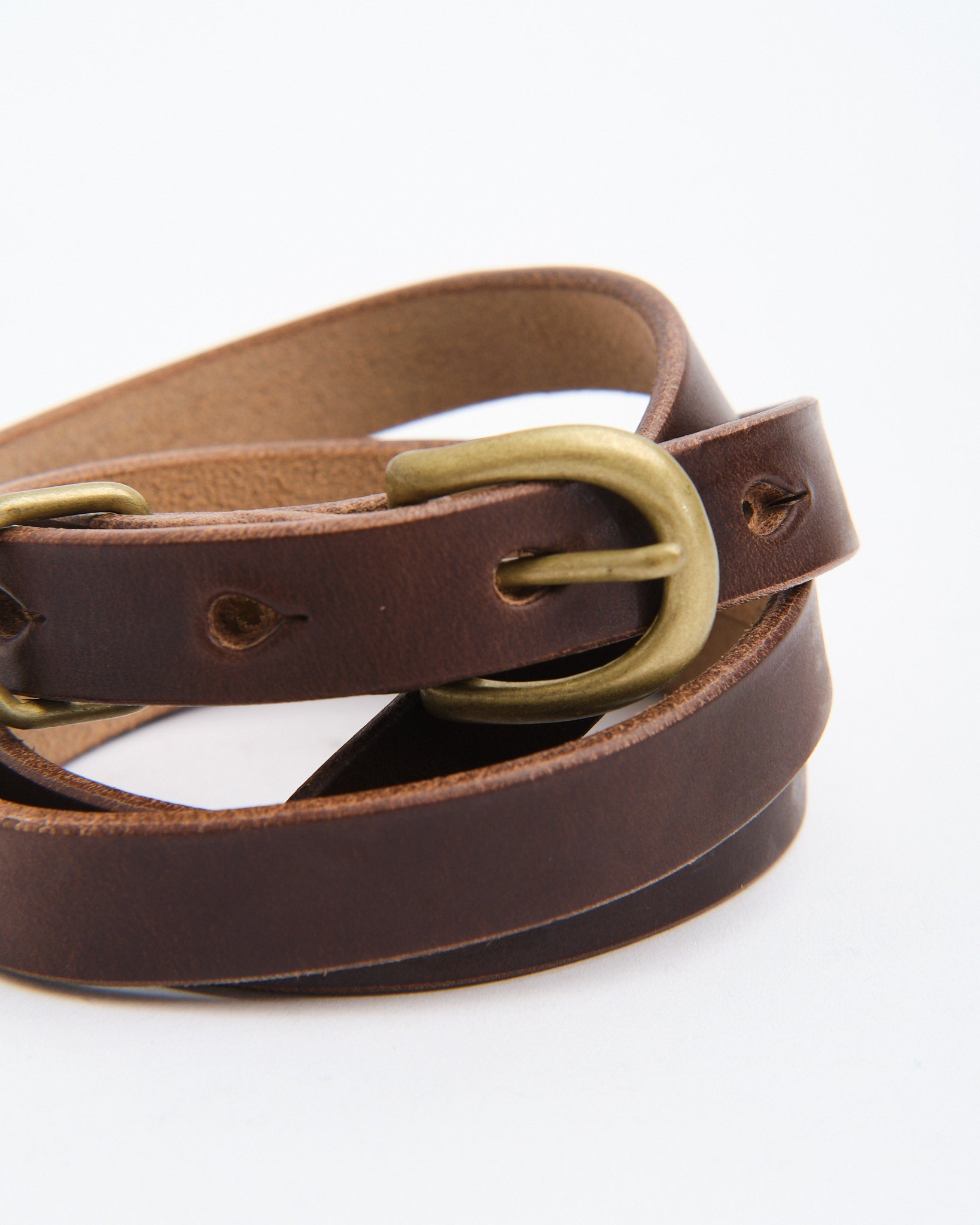 • Cast brass D-buckle with iron loop