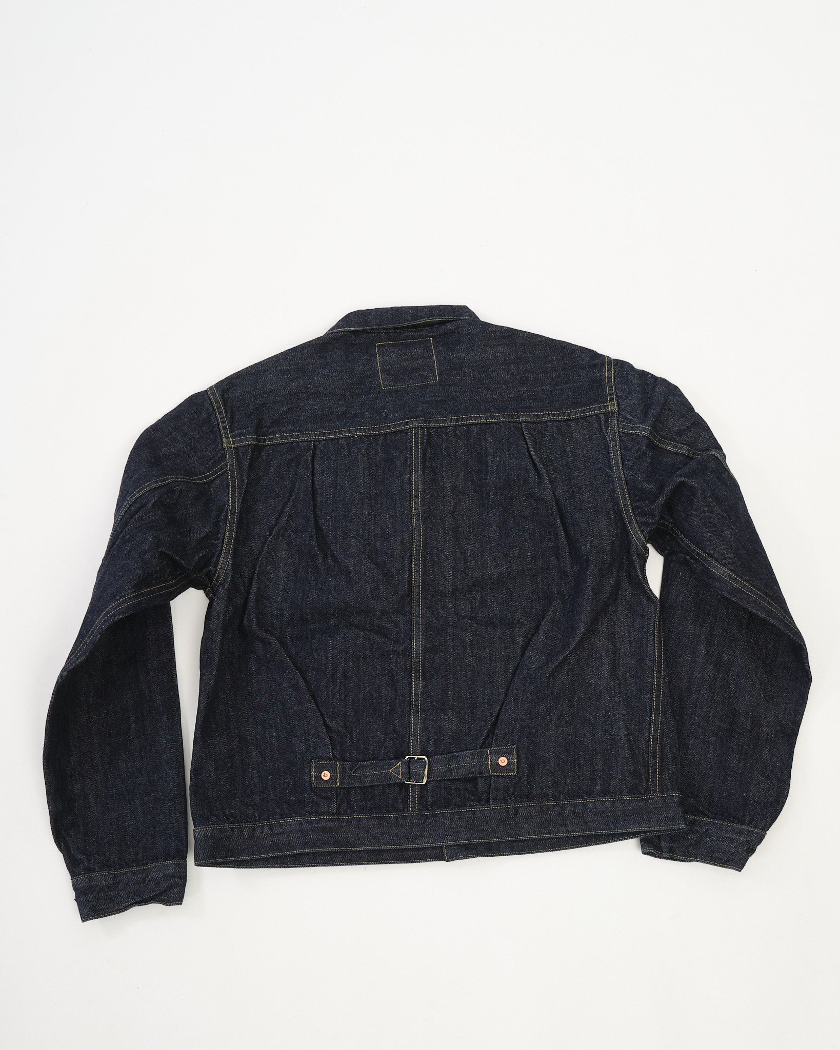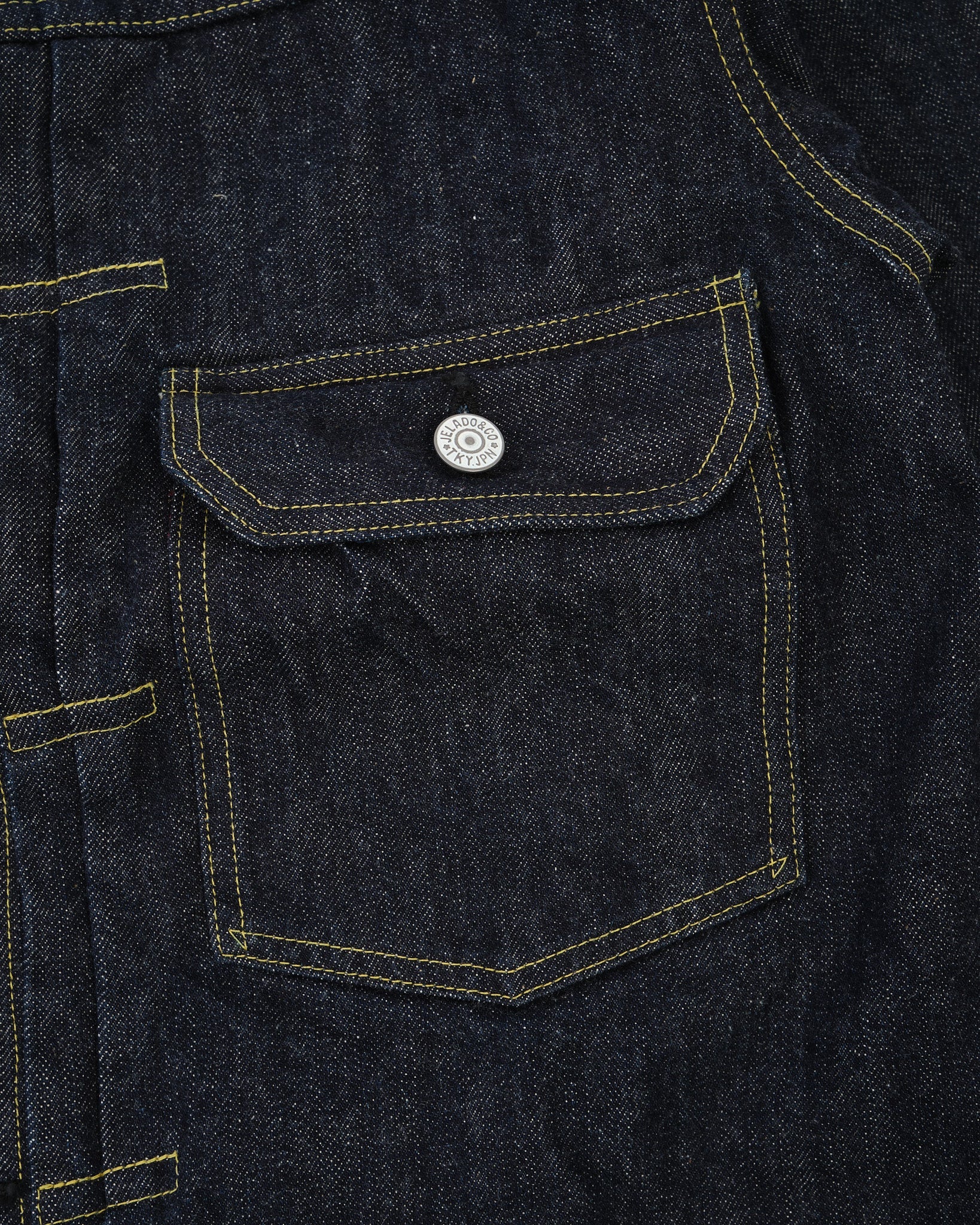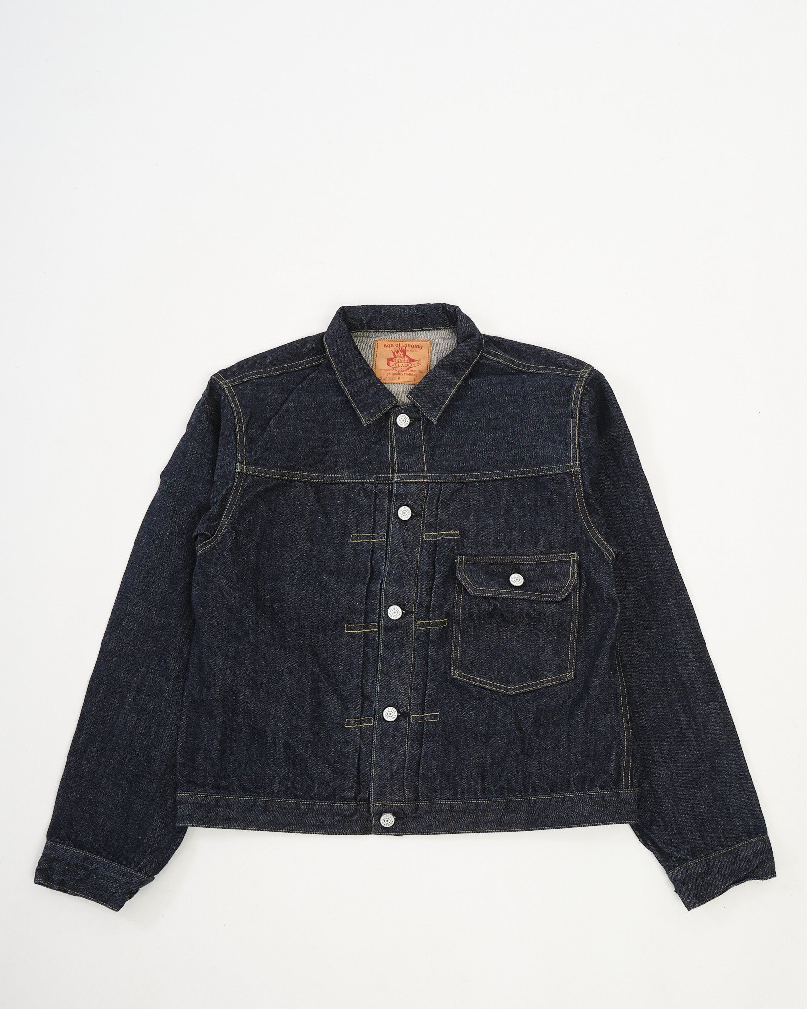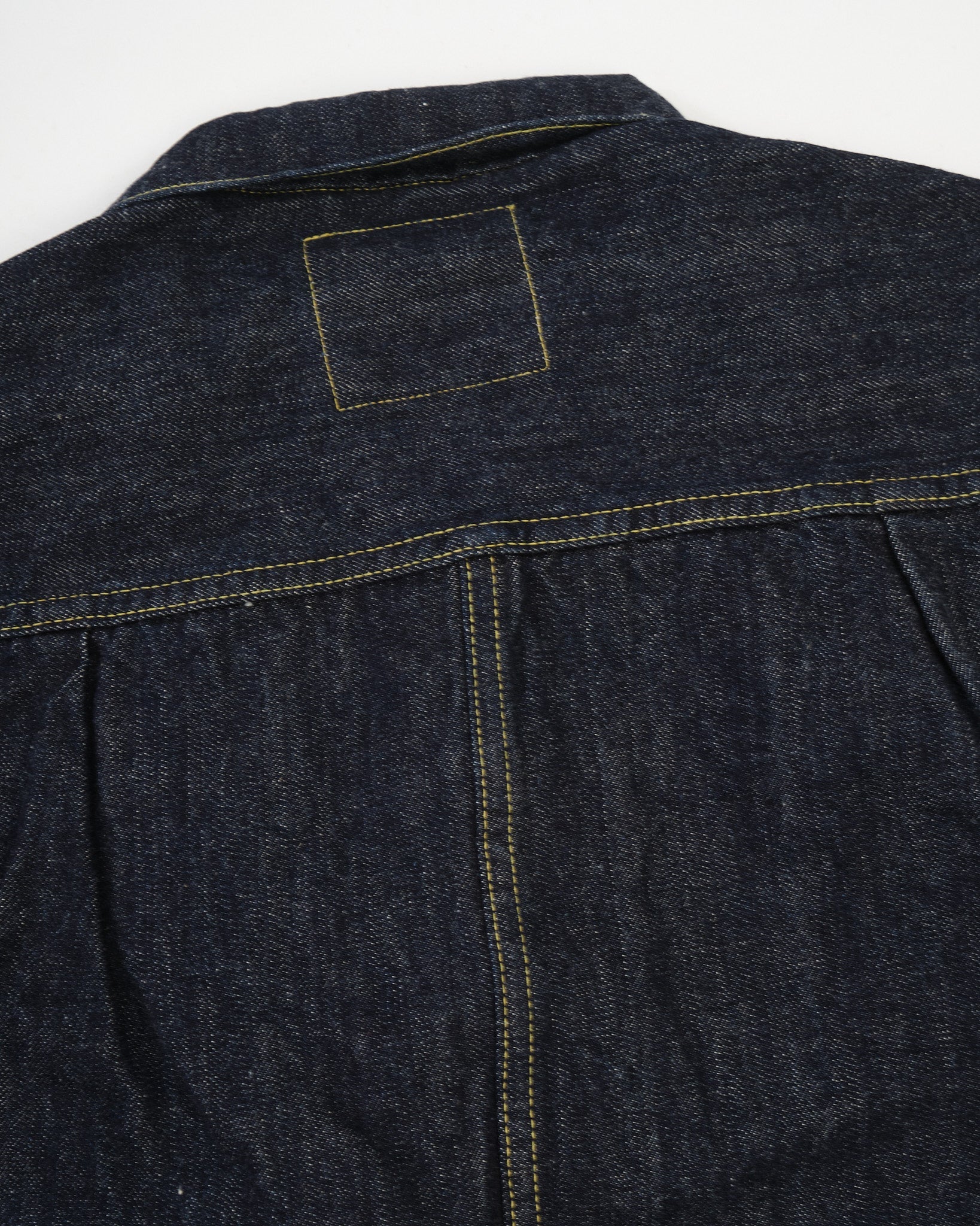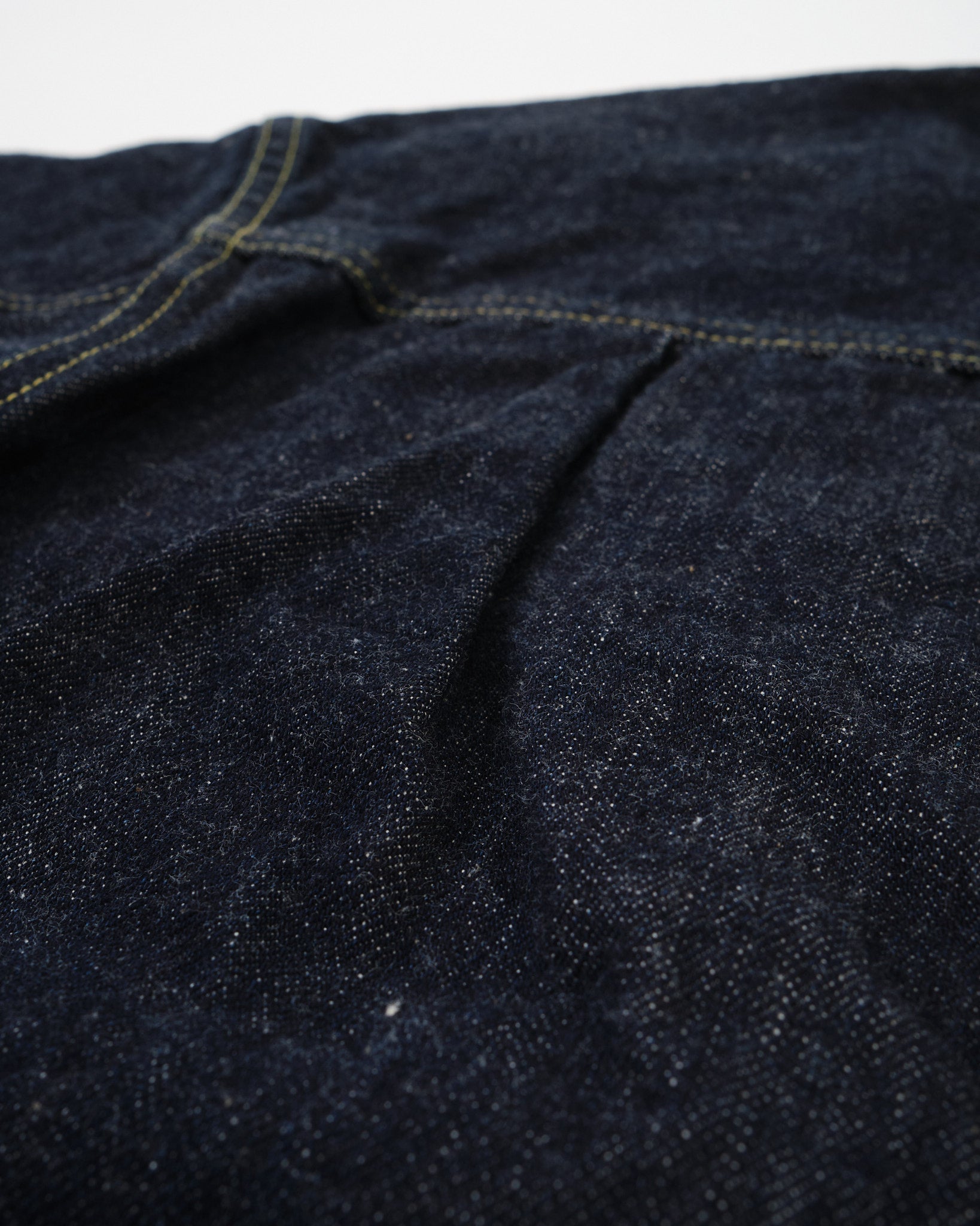 JP94407E 407EXX Denim Jacket on JELADOn ensimmäinen 1. tyyppinen farkkutakki, joka on valmistettu LASTRESORT BLACK TAG -denimistä saavuttamaan vielä villimpi ja vintage-tyyppisempi tunne. Tämä 15oz reunavahvistettu kangas analysoitiin huolellisesti ja rakennettiin uudelleen DEADSTOCK XX -denimistä, tarjoten ainutlaatuisen näkökulman alkuaikojen denim-käsityöhön.