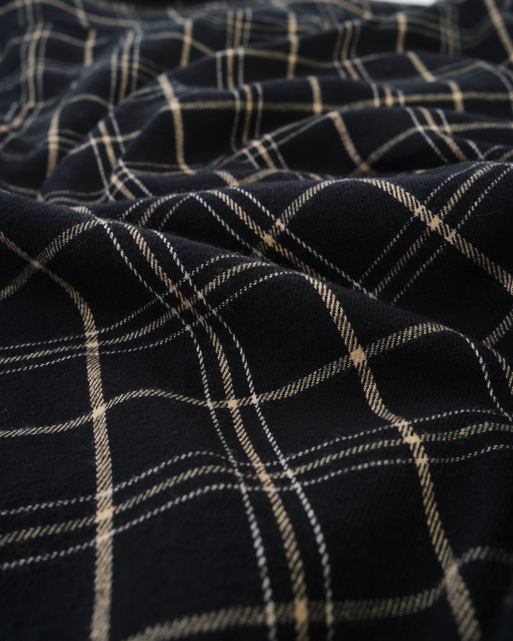 Julian Worker Shirt Checked Black is a long-sleeve shirt rooted in classic workwear, made from a soft and lightweight black-and-white checked twill fabric. A subtle brushing gives the material an extra layer of softness, making it comfortable to wear while retaining a clean, structured appearance.