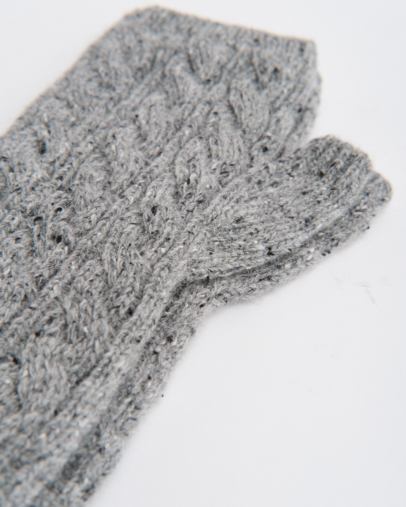 Löydä ainutlaatuiset Harmaat Löydetty Sulka -kädenlämmittimet, jotka ovat välttämättömyys talvivaatekaappiisi. Nämä kädenlämmittimet saavat inspiraationsa ruotsalaisesta sotilassuunnittelusta, joka juontaa juurensa 1950-luvulle, mutta nykyaikaisella kierretyllä palmikkoneuleella. Italialaisesta Donegal Tweed -villasta valmistettuina ne tarjoavat pehmeän tuntuman. Niiden suunnittelun monipuolisuus mahdollistaa niiden käyttämisen joko ylös kyynärvarren yli ulottuvina tai ranteessa käärittyinä, tehden niistä täydelliset lisäämään sekä lämpöä että tyyliä mihin tahansa asuun. Sopivat kaikille nämä kädenlämmittimet eivät ole vain herkku käsillesi, vaan ne myös kunnioittavat ajattomia ja kestäviä muotitrendejä.