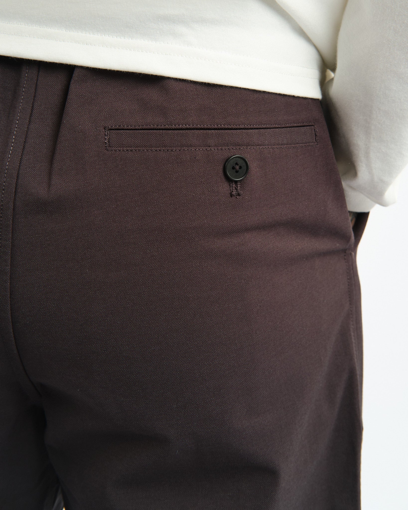 Etukiinnitysaukko lisää tyylikkyyttä näihin käytännöllisiin housuihin.