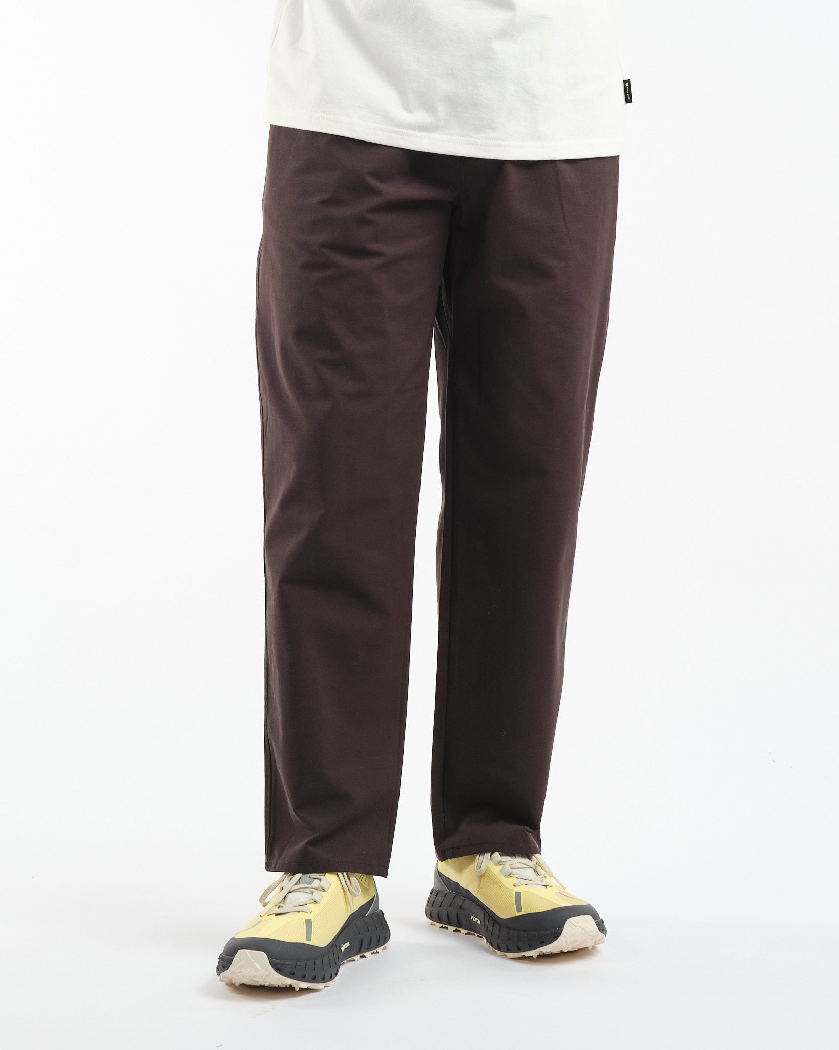 Löydä täydellinen yhdistelmä perinteistä japanilaista kudontaa ja modernia kangasteknologiaa Nanamica Karami Easy Pants -housuissa värissä Charcoal. Nämä kapenevalla leikkauksella olevat housut on valmistettu ainutlaatuisella "Karami"-kudoksella, jota tyypillisesti käytetään kesäkimonoihin ja papillisiin asuihin. Kangas imee hikeä, kuivuu nopeasti ja on joustavaa, mikä tekee niistä ihanteelliset kesäkuukausille. Loimi käyttää osittain puuvillaa, ramie-kuitua ja pellavaa, mikä luo er distinct, rapean tekstuurin.