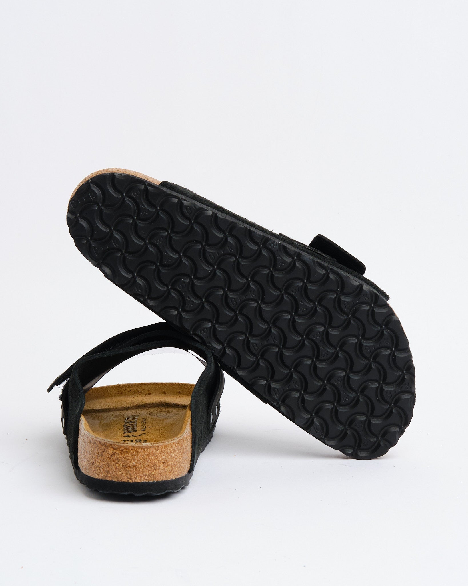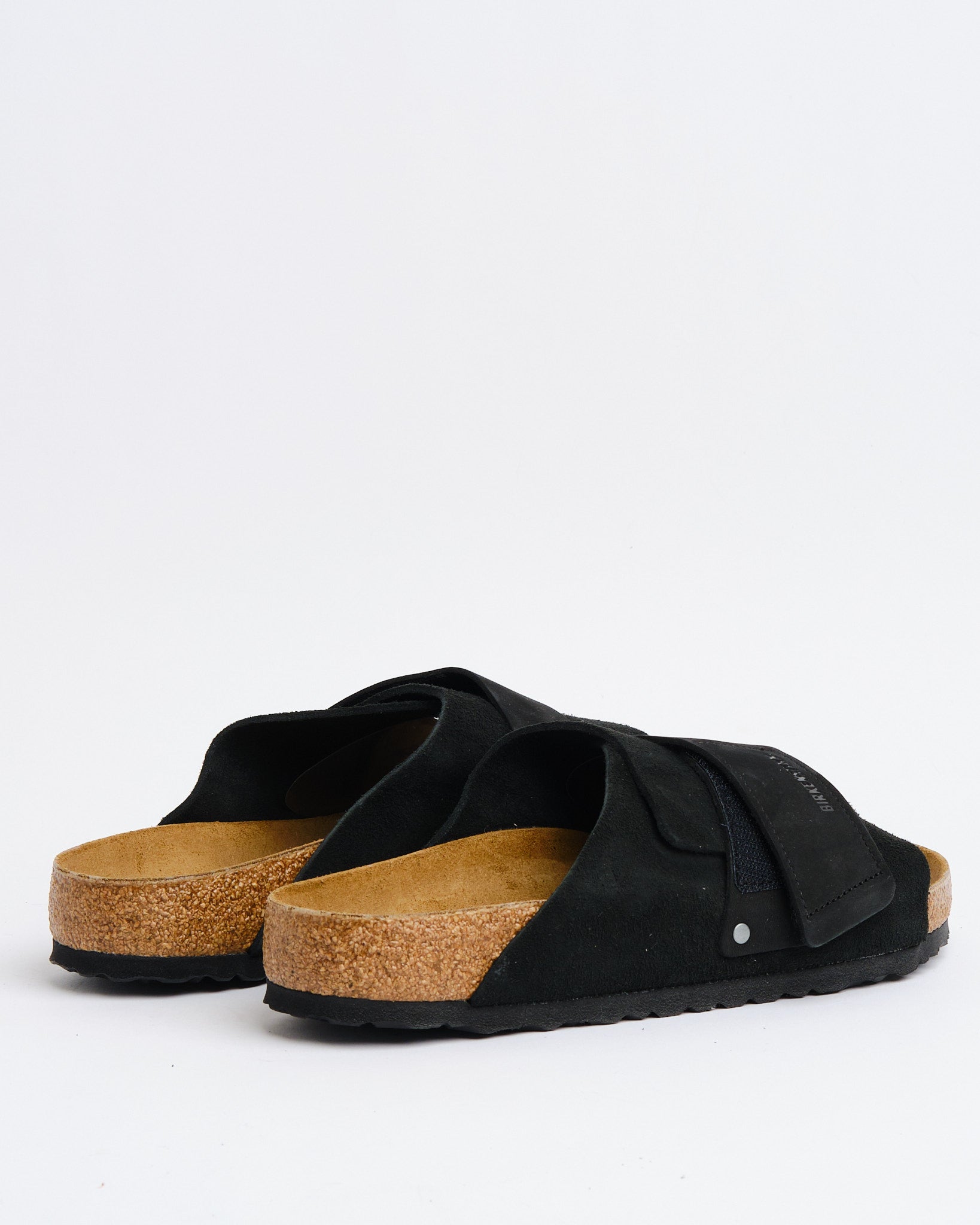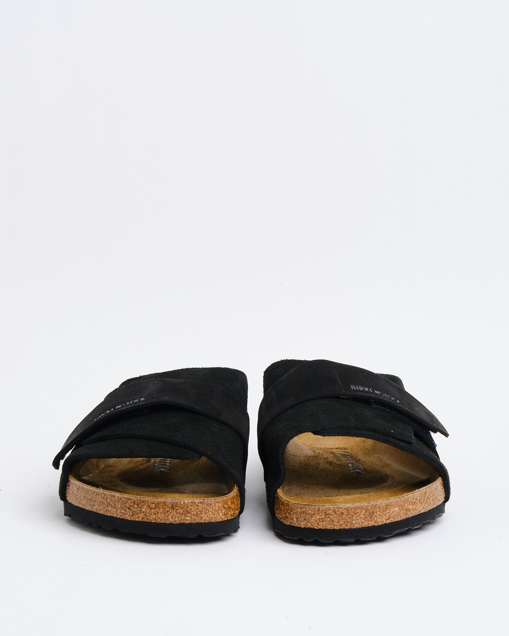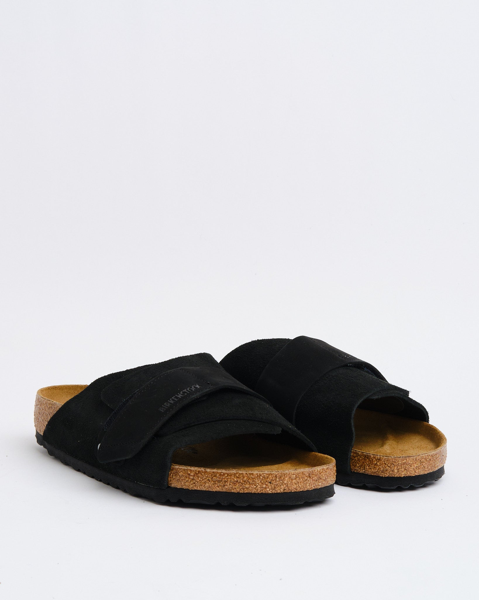 Birkenstock Kyoto on sinun mennä-kenkäsi rentoon menoon, joka lainaa erottuvan tyylinsä ikonisesta Zürich-mallista. Kompaktissa suunnittelussa on yksilöllisesti säädettävä solki, joka takaa tiukan istuvuuden ja optimaalisen pidon. Päällinen yhdistää pehmeän mokkanahan ja huippuluokan nupukkinahan, muotoutuakseen jalkaasi kuin toinen iho. Anatomisesti muotoiltu korkki-latex-pohjallinen tarjoaa vertaansa vailla olevan tuen, ja EVA-pohja tarjoaa kevyttä kestävyyttä. Kaikki nämä ominaisuudet tulevat "Made in Germany" -laatumerkin kanssa.