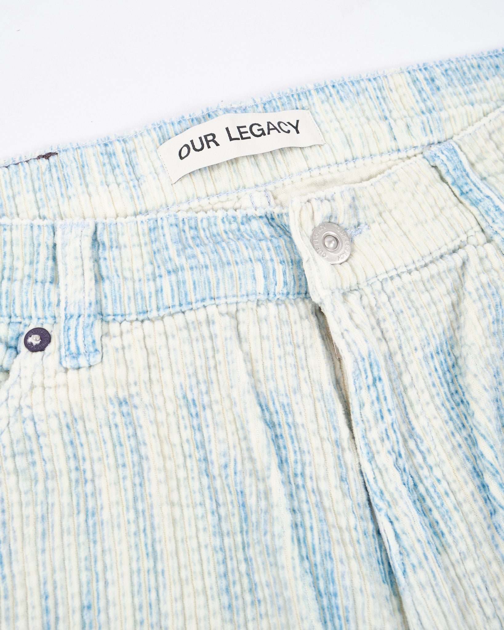Löydä vintage-inspiraation ja modernin muotoilun yhdistelmä Our Legacy:n Vast Cut -mallistosta Blue Brush Stroke Print -kuosissa. Kiinassa pehmeästä vakosametista valmistetut korkeavyötäröiset farkut tarjoavat tyylikkään tulkinnan klassisesta farkkumallista. Niissä on leveä, väljä leikkaus ja viisi taskua, jotka takaavat mukavuuden ja toiminnallisuuden. Kohokuvioitu OUR LEGACY -merkki ja kupariniitit lisäävät tyylikkyyttä. Tämä ainutlaatuisella digitaalipainatuksella varustettu vaate, joka muistuttaa vintage-farkkujen suunnittelua, muotoutuu käyttäjänsä mukaan ja kulkeutuu luonnollisesti ajan myötä, viimeistellen sen ainutlaatuisen suunnitteluprosessin.