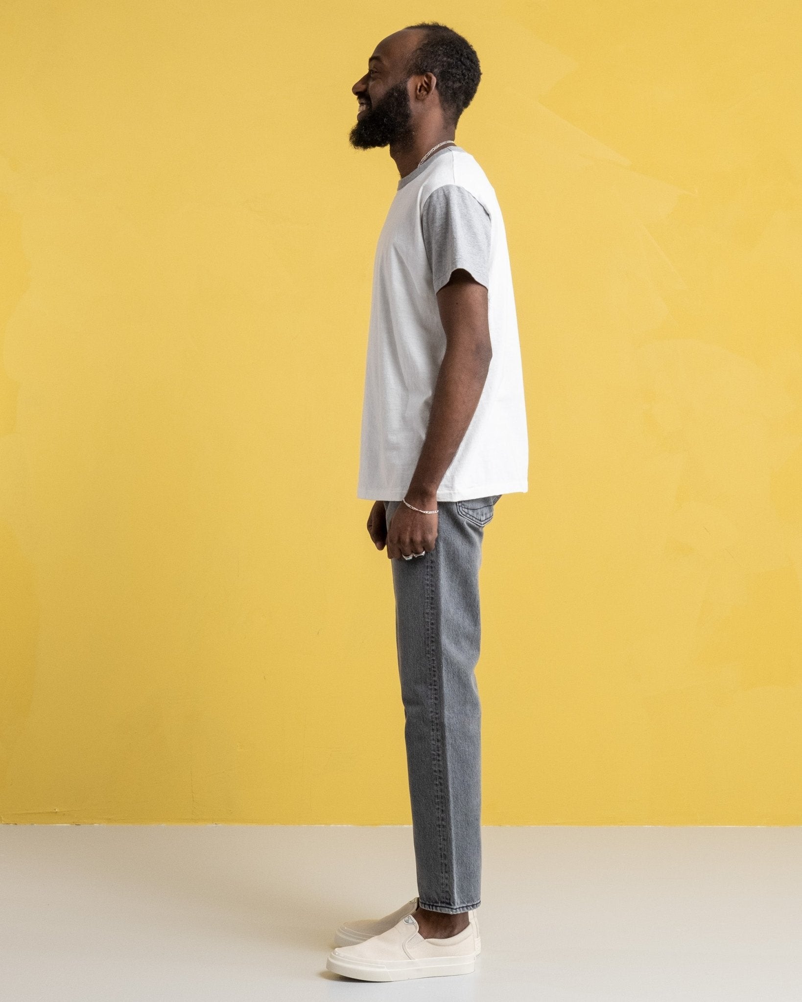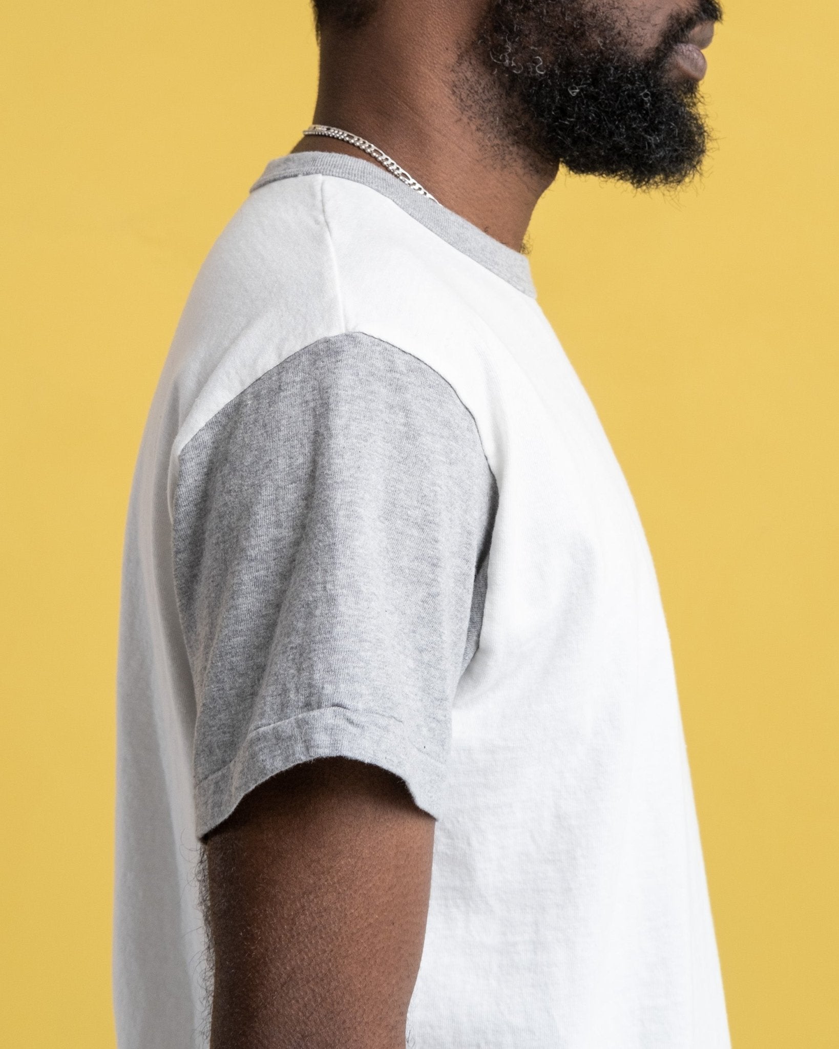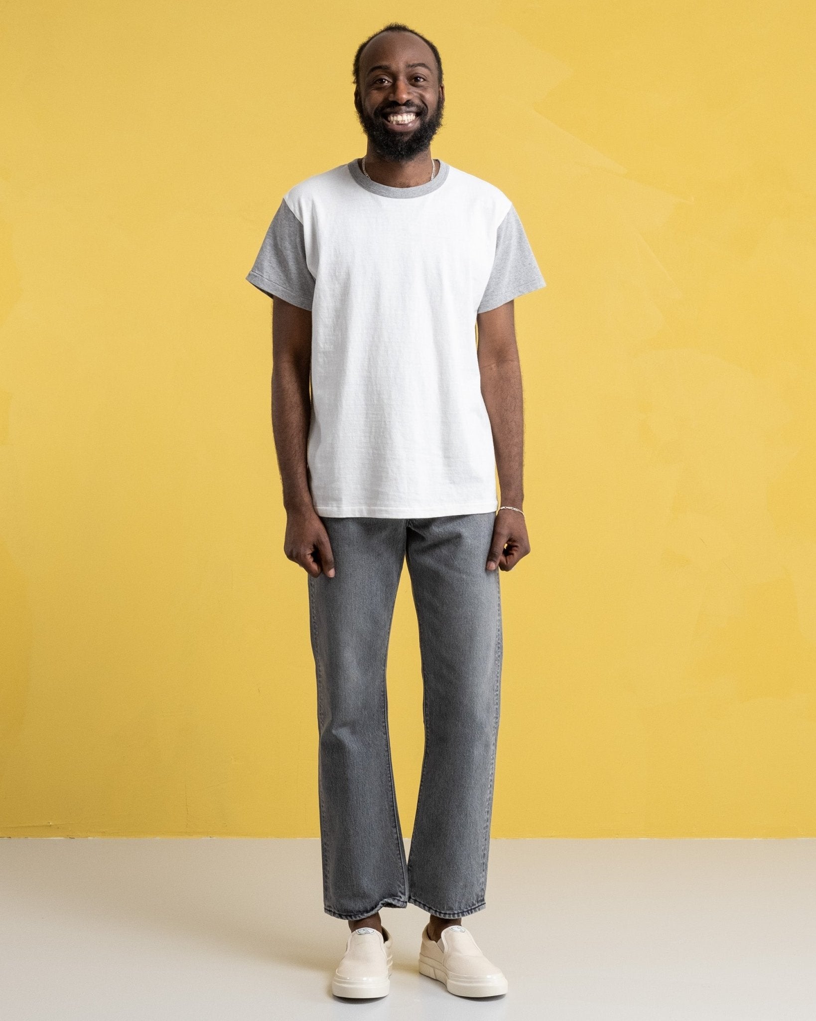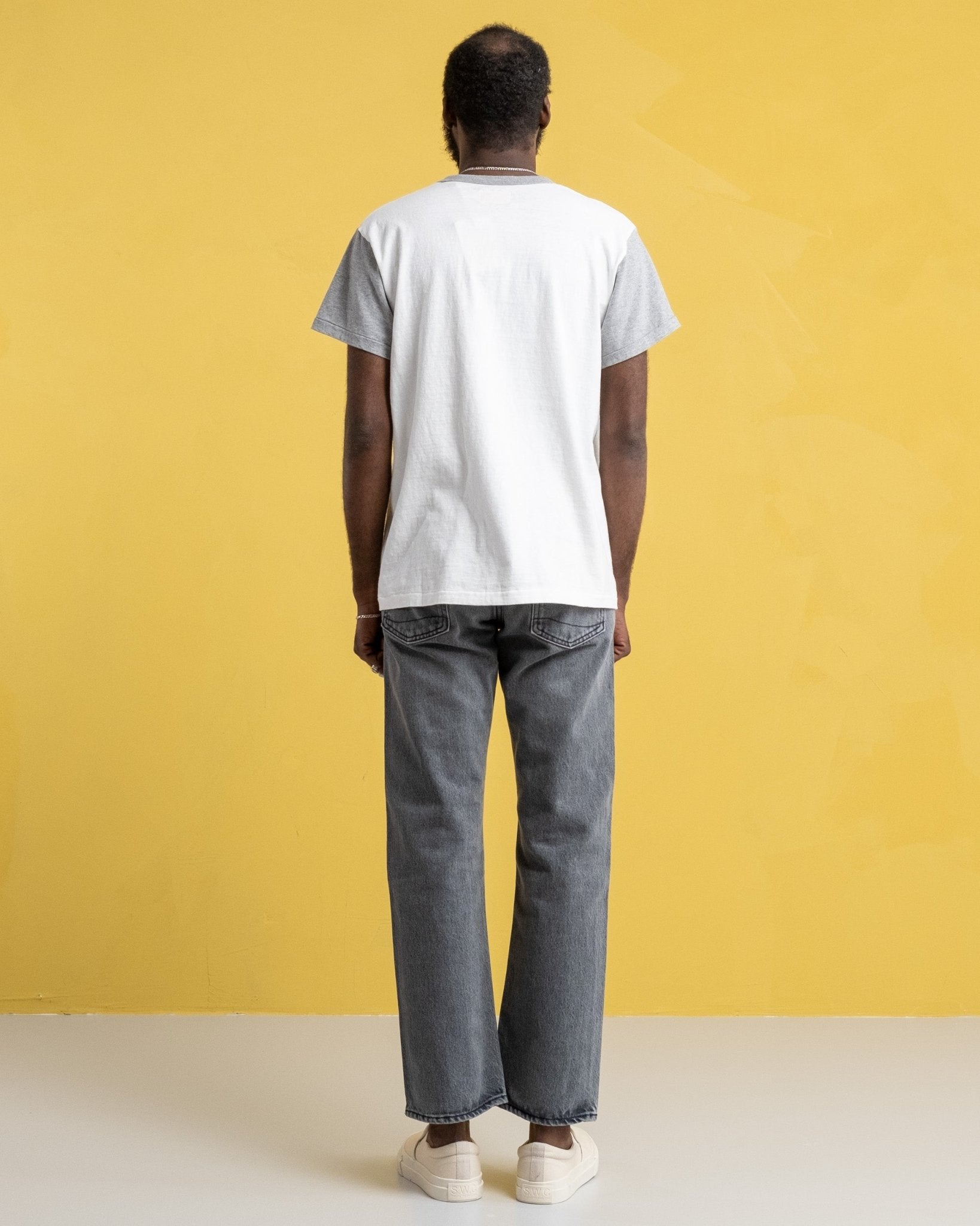 La'ie SS T-paita Off White / Hambledon Grey "Tennessee Smokes" Sunray Sportswearilta. Sunrayn T-paidat ovat perinteisen mallisia, inspiroituneena 50-luvun tunteesta. Rentoutta ja hieman lyhyempiä hihoja kuin Haleiwassa, kunnianosoituksena Tennessee Smokes -baseballjoukkueelle kontrastiväreillä. Kaulus, ribbineulos ja kankaat ovat myös perinteisiä. 260 g. Valmistettu Japanissa.