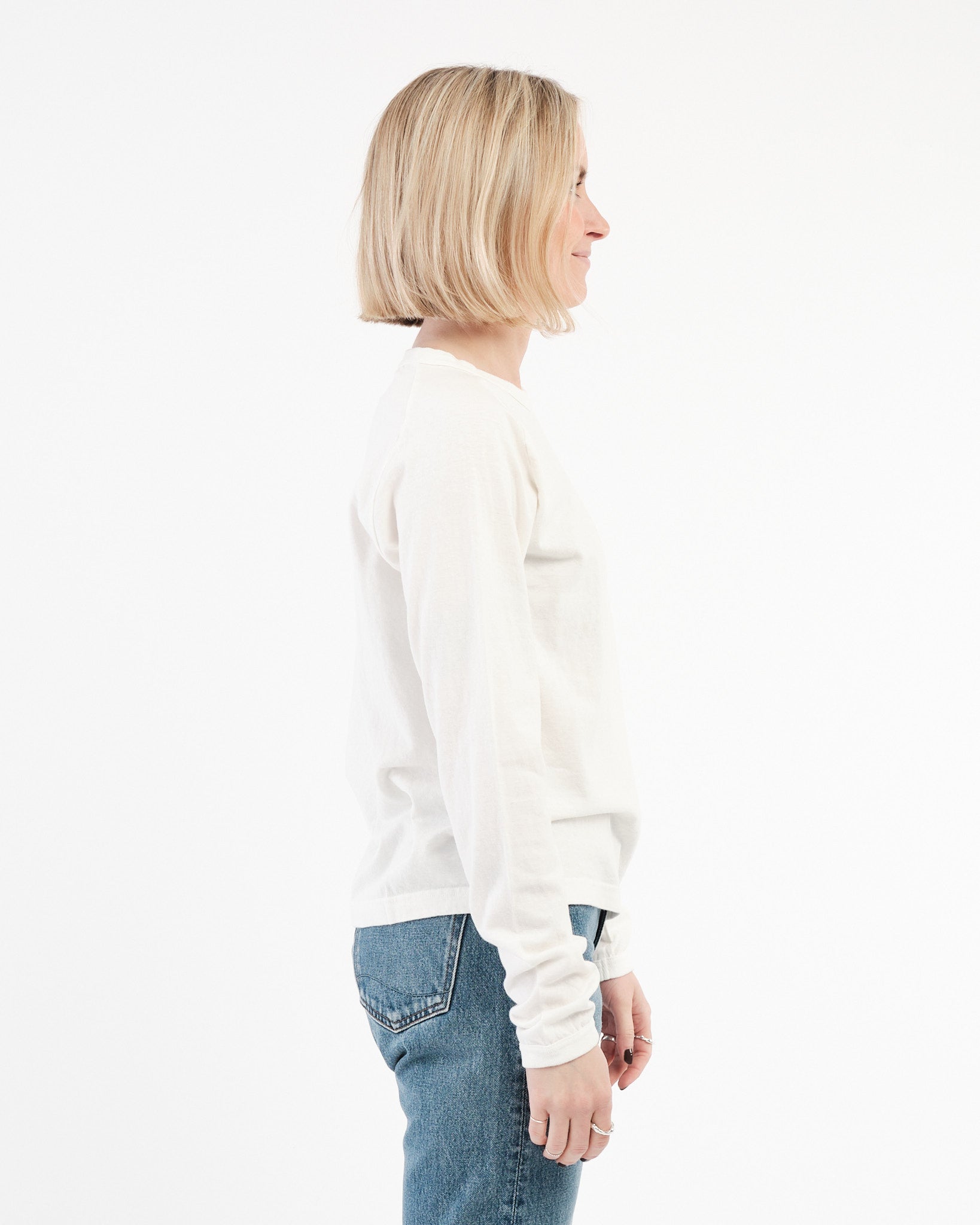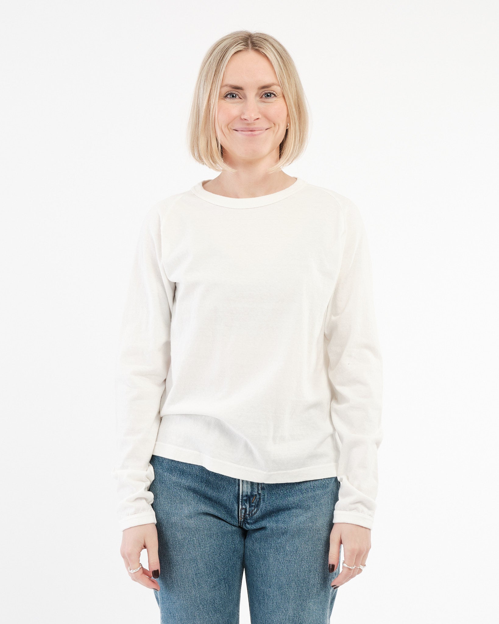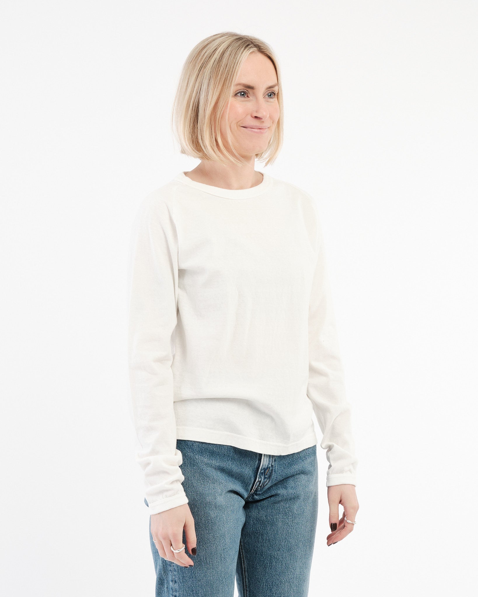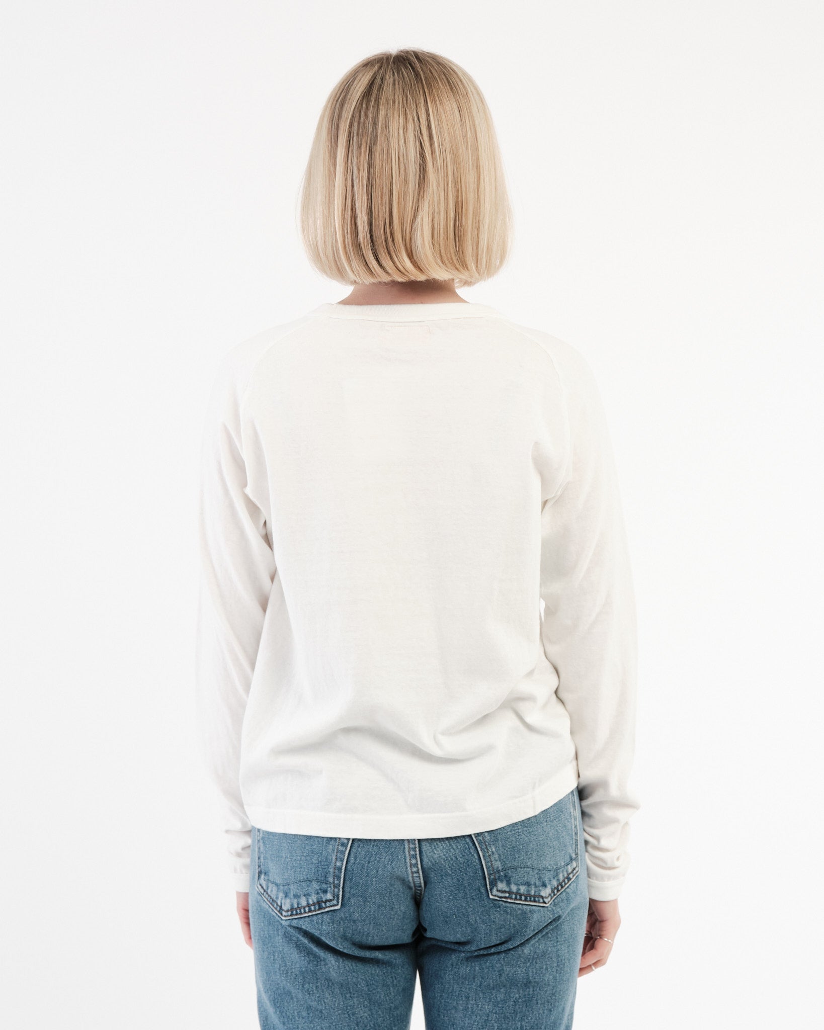 Laka LS T-paita Off-White Sunray Spiritiltä. Sunrayn T-paidat ovat perinteistä mallia, joka on inspiroitunut 50-luvun tunteesta. Rentoutta ja tavallista istuvuutta. Kaulus, ribbineulos ja kankaat ovat myös perinteisiä. 260 g kierrätettyä Ochiwata-jerseytä. Valmistettu Japanissa.