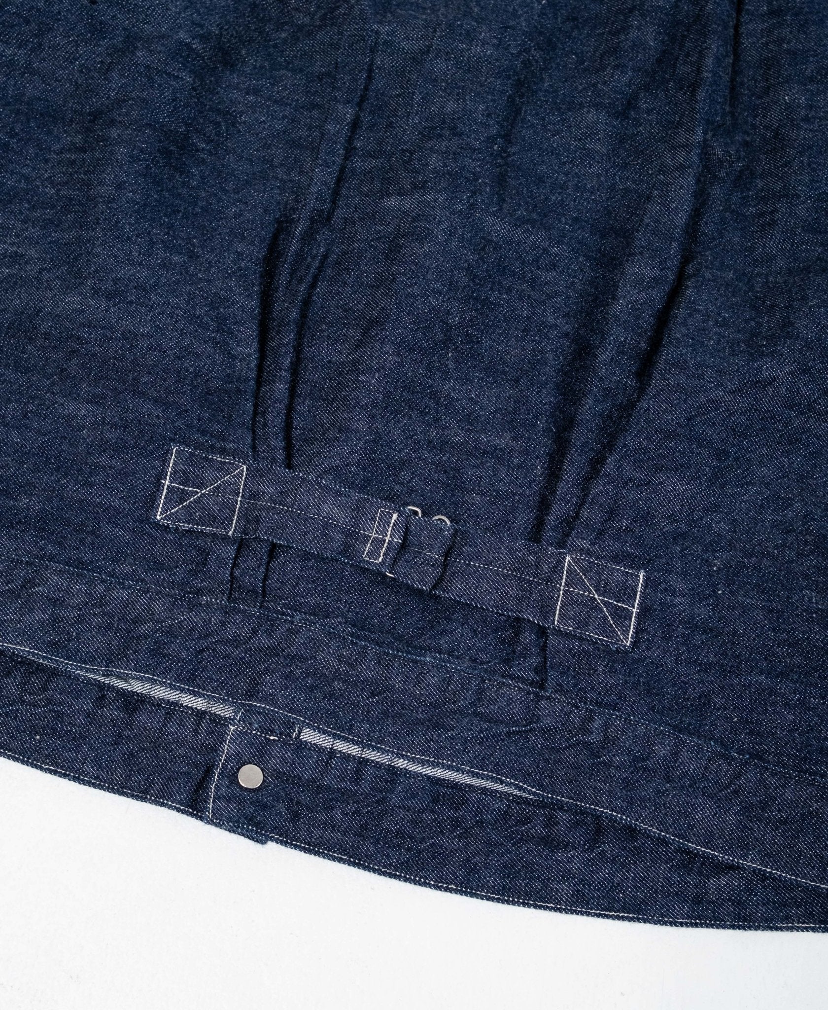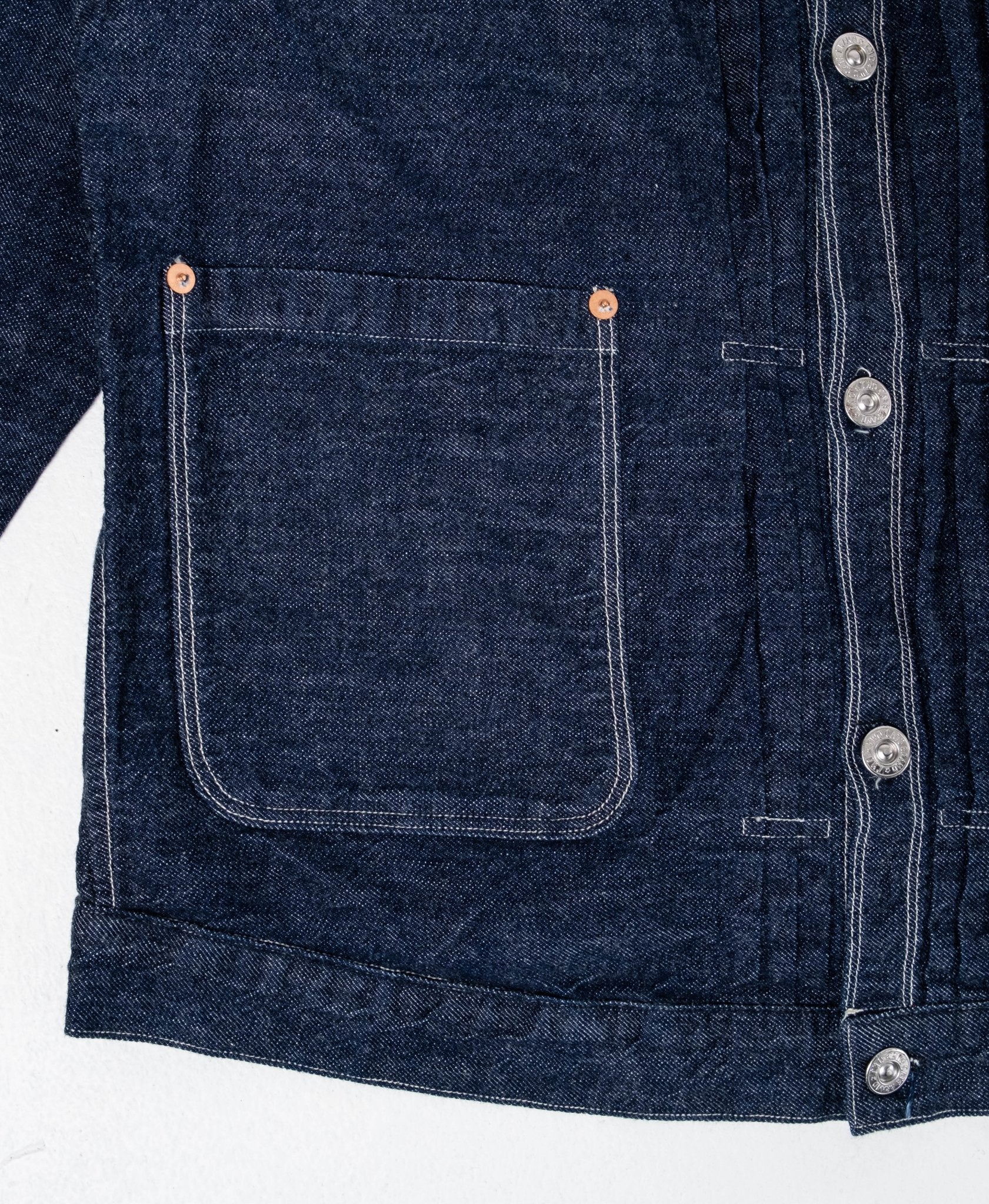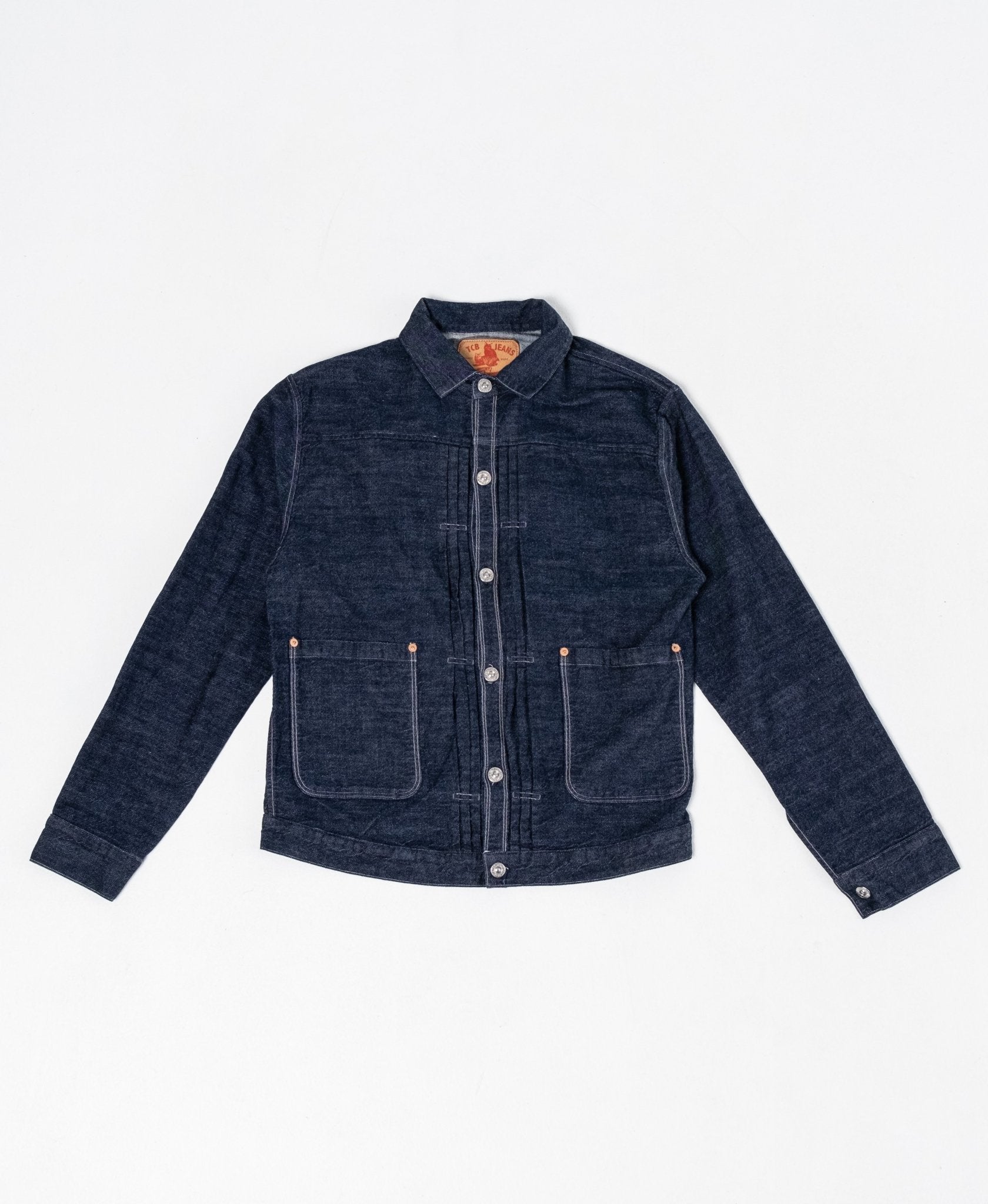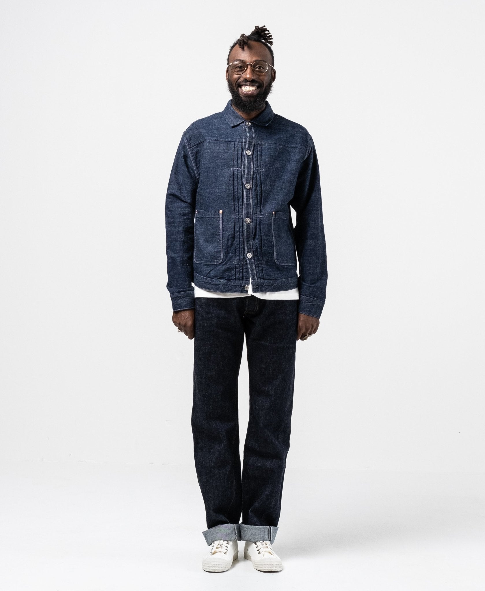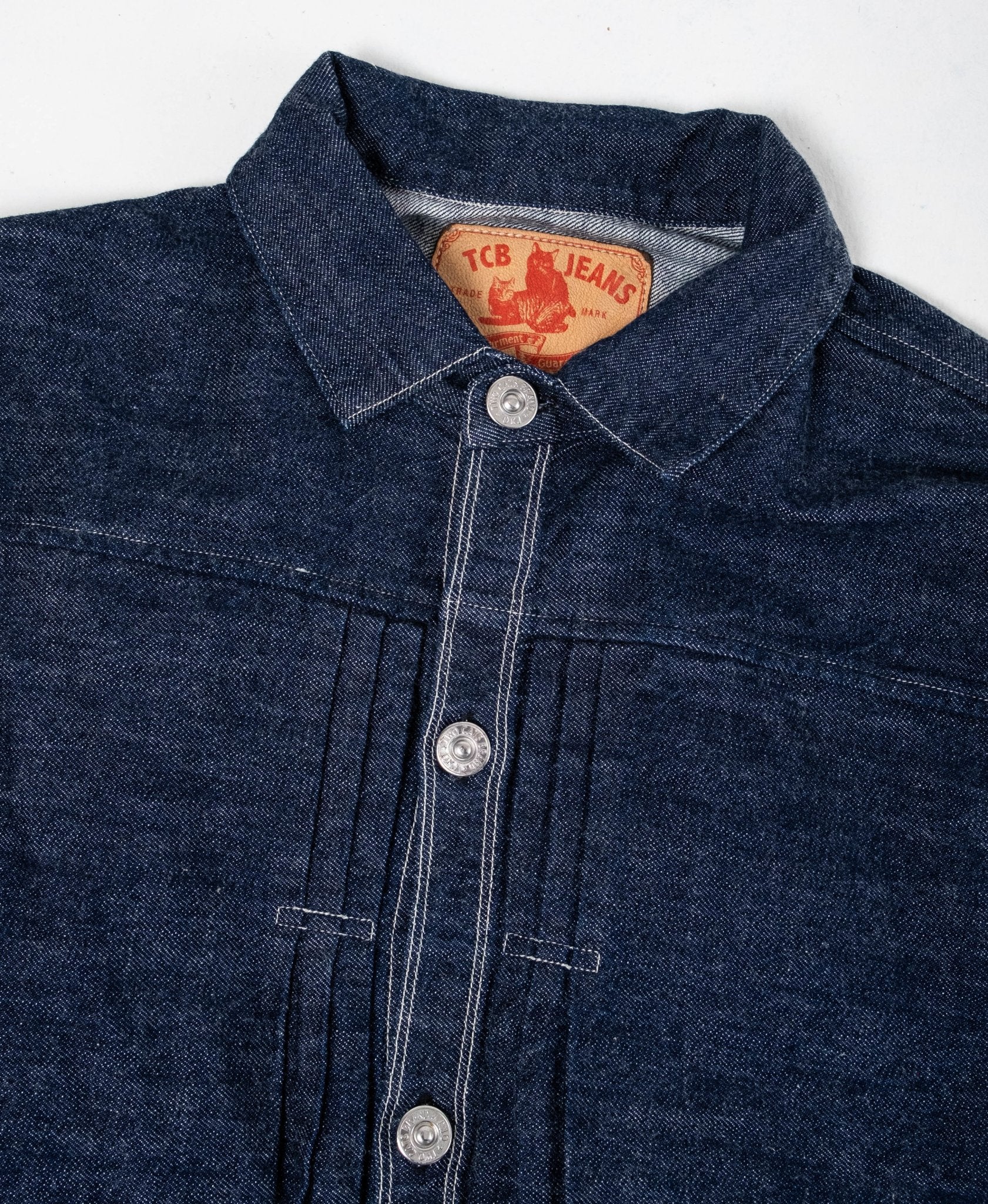 Laskostettu puserotakki TCB:ltä. Tämä takki on saanut inspiraationsa yhdestä varhaisimmista farkkupuseroista 1800-luvun lopulta. Tuolloin suunnitteluun kuului kolme etulaskosta ja selkeä indigonsininen väri. Värjätty luonnonindigolla perinteisellä tavalla. Kaksi etutaskua ja säädettävä takakiristys. Valmistettu Japanissa.