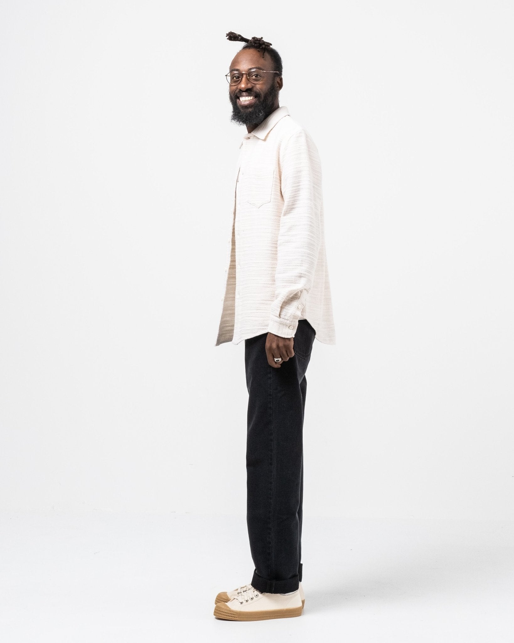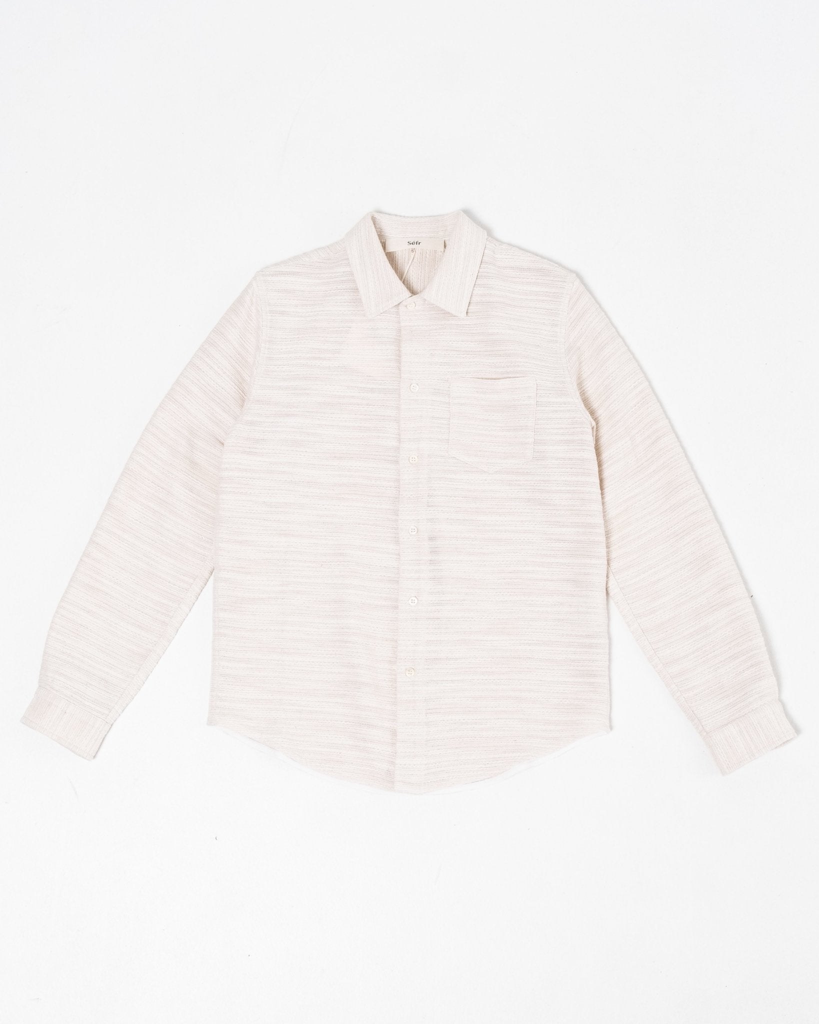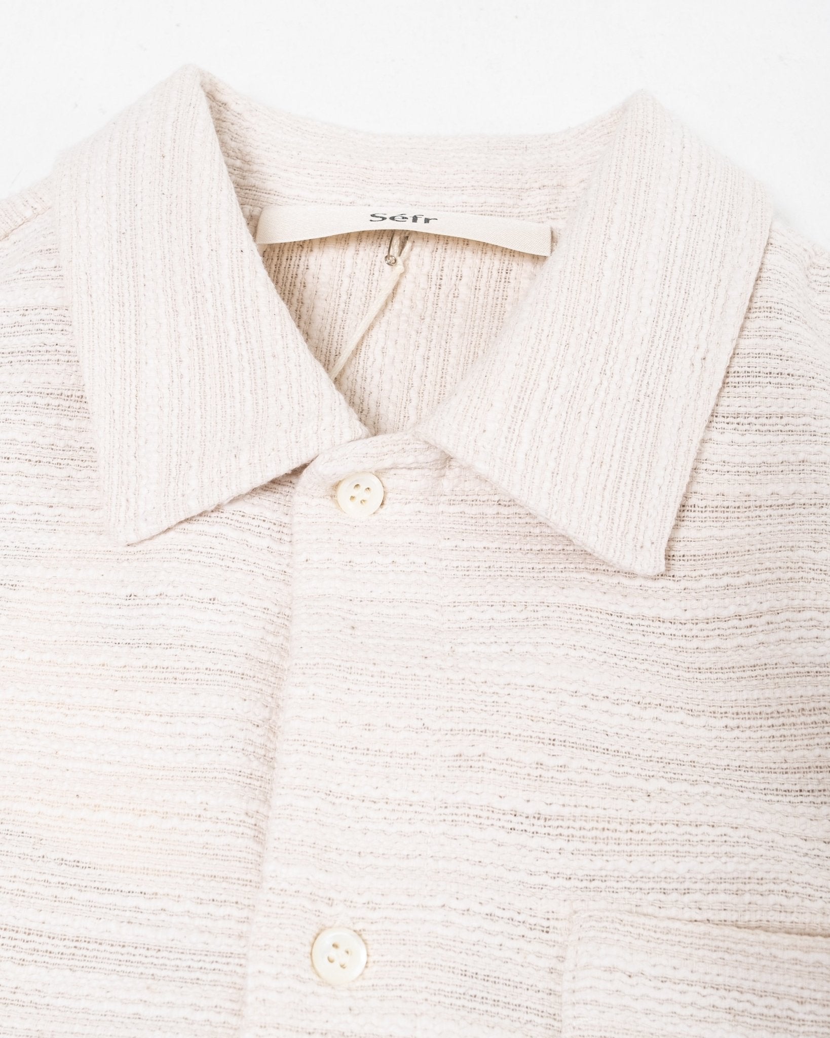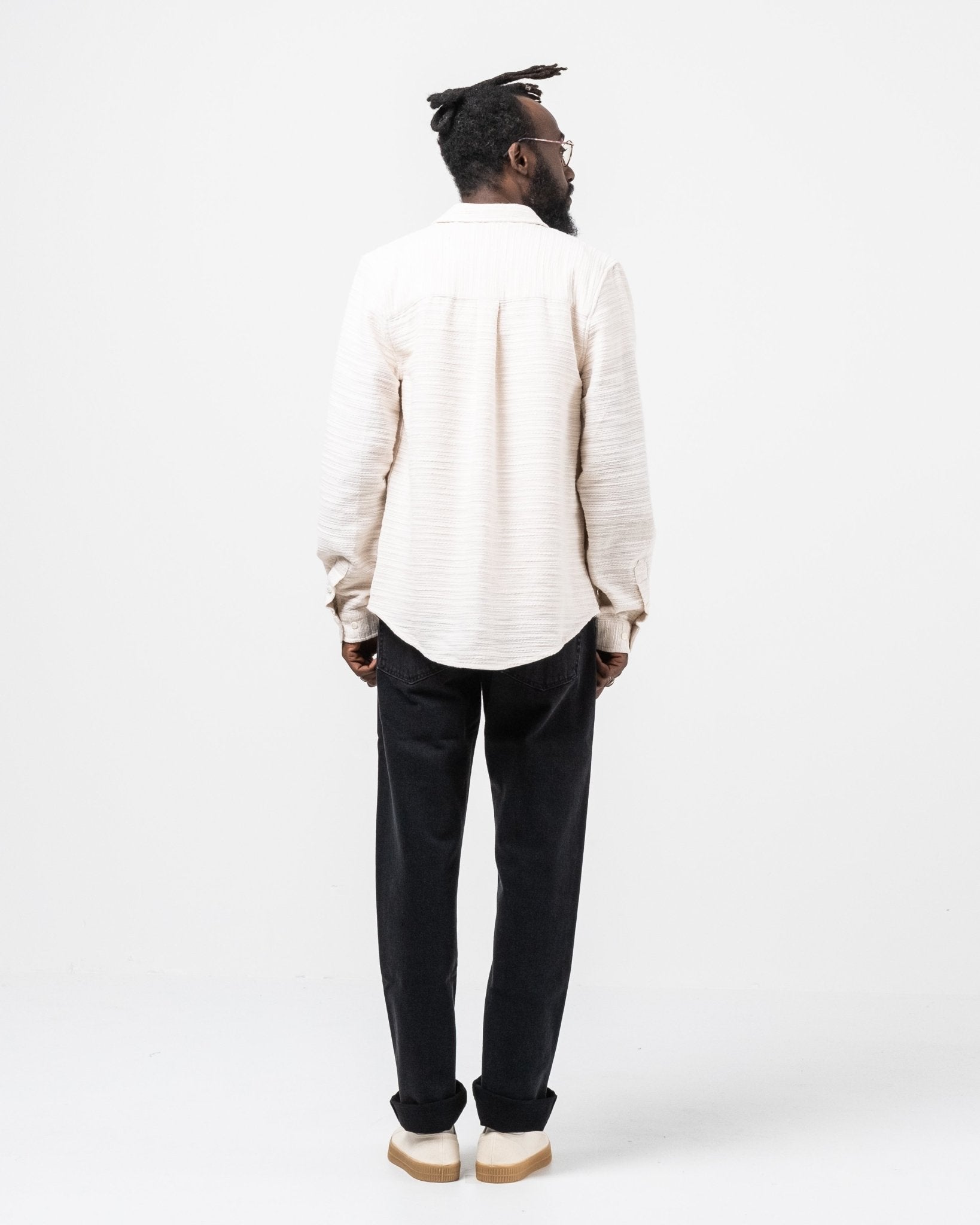 Leo-paita, väri luonnonvalkoinen, merkiltä Séfr. Pitkähihainen paita 100% pehmeästä italialaisesta puuvillasta. Yksi rintatasku ja helmiäisnapit. Valmistettu Latviassa.