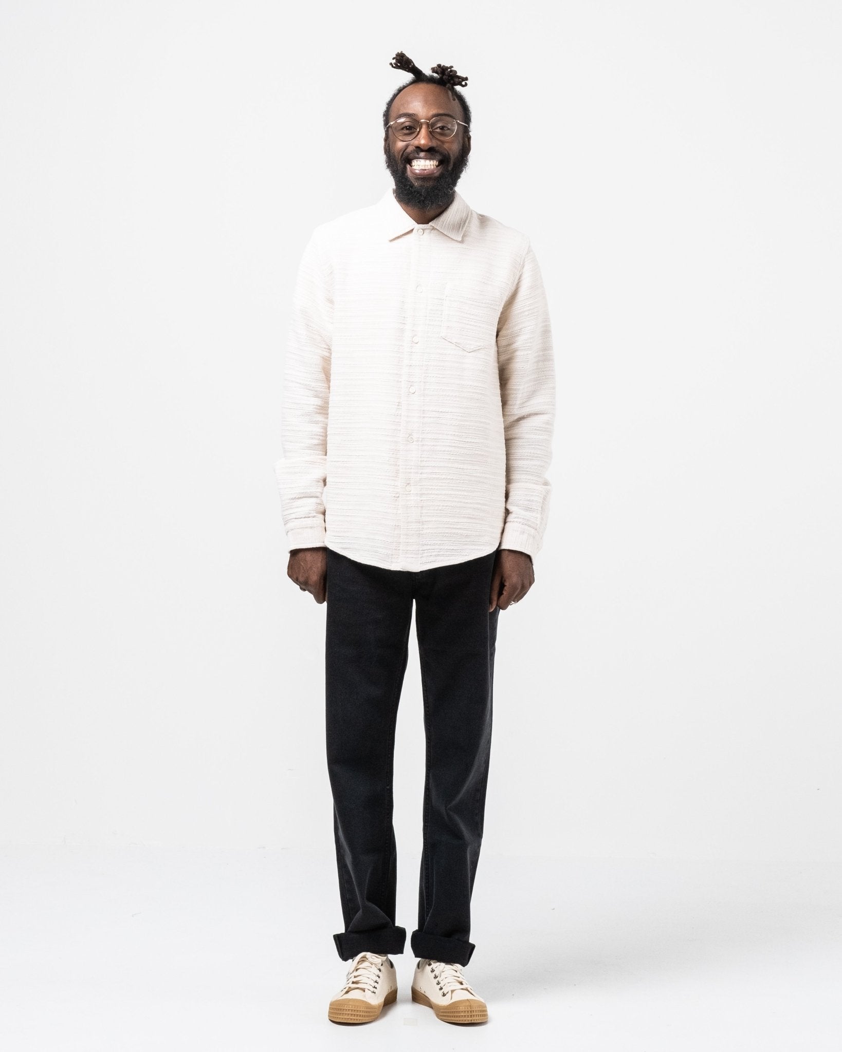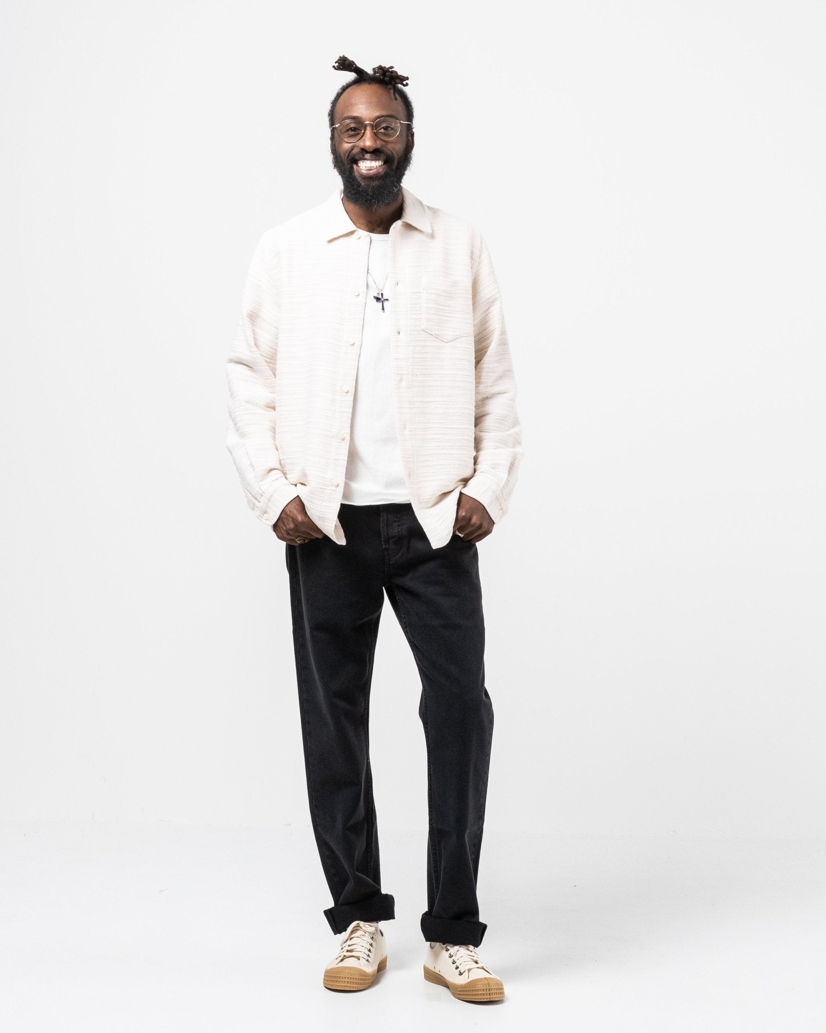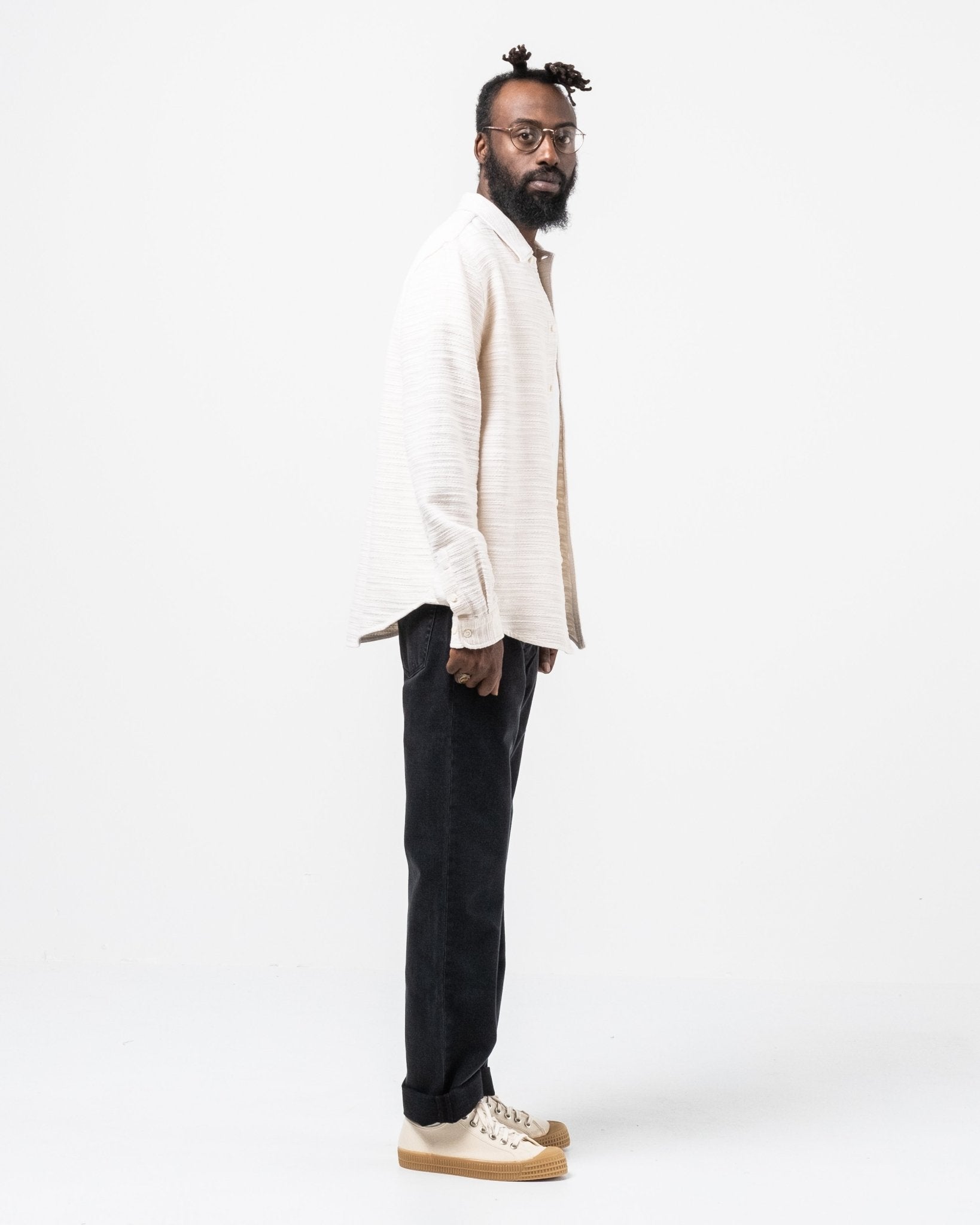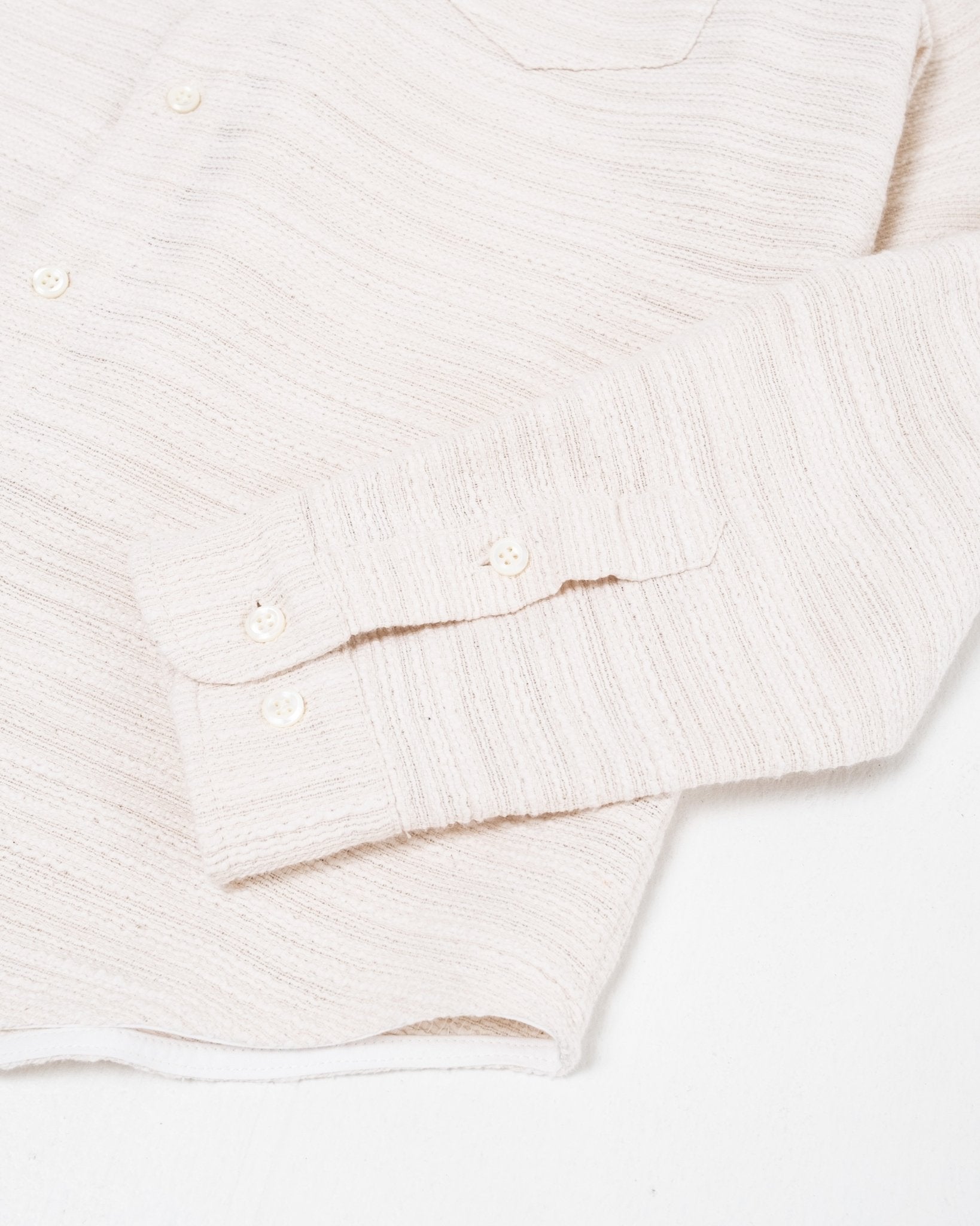 Leo-paita, väri luonnonvalkoinen, merkiltä Séfr. Pitkähihainen paita 100% pehmeästä italialaisesta puuvillasta. Yksi rintatasku ja helmiäisnapit. Valmistettu Latviassa.