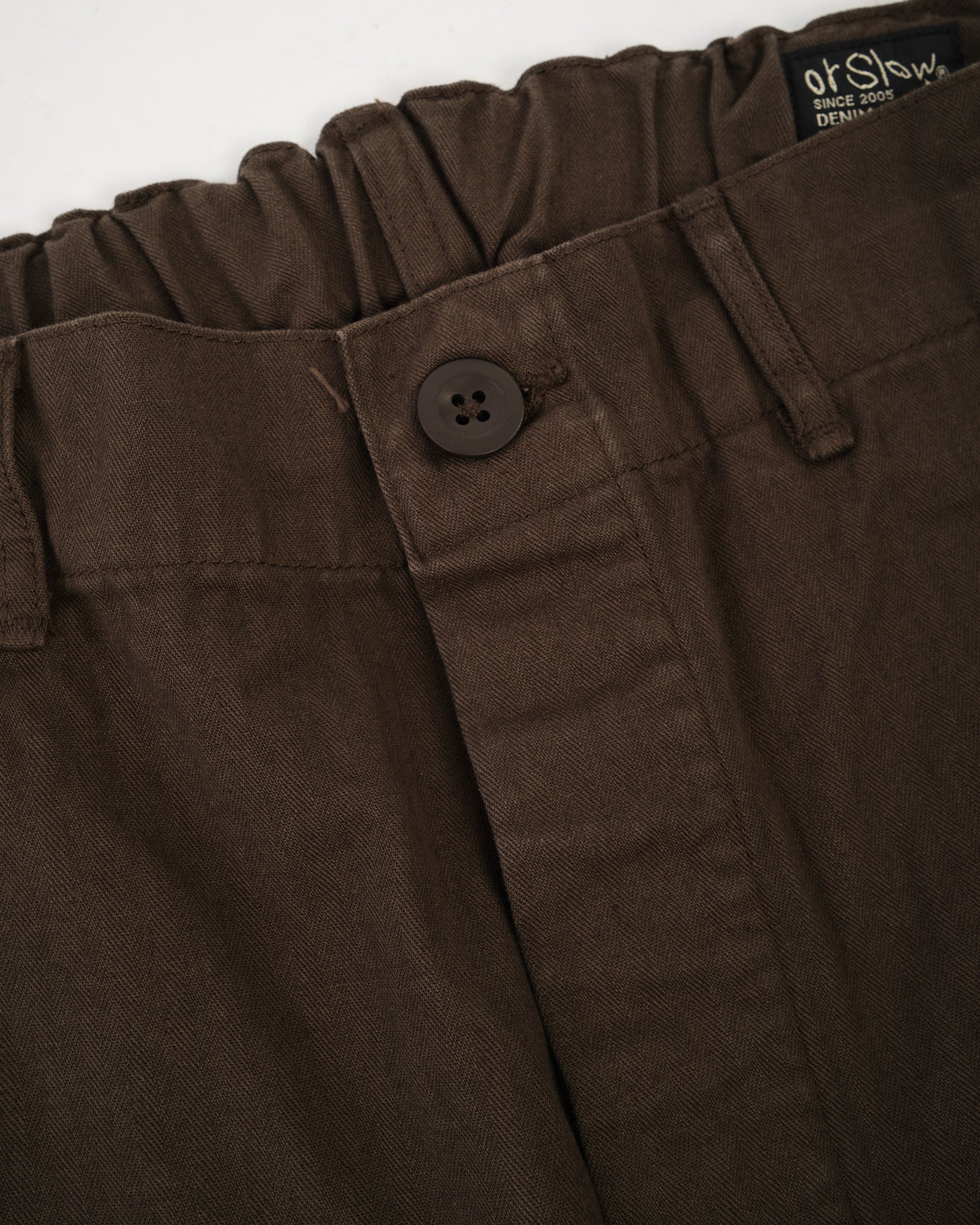 orSlow Wide Fit Work Pants -housut kahvinruskeassa sävyssä tuovat modernin vivahteen perinteiseen ranskalaiseen työasusteeseen tarjoten mukavan ja käytännöllisen leveälahkeisen istuvuuden, joka sopii monenlaisiin tilaisuuksiin. Käsityönä Japanissa valmistetut housut on tehty puuvillamateriaalista ja niissä on korkea vyötärö sekä tilava lahkeen leikkaus, mikä mahdollistaa esteettömän liikkumisen. Tyylikäs kahvinruskea sävy lisää monikäyttöisyyttä ja eleganssia näihin housuihin, jotka ovat täydelliset sekä rennoissa kokoontumisissa että virallisissa tilaisuuksissa. Etu- ja takataskujen sekä kestävän rakenteen ansiosta, jotka takaavat pitkäaikaisen käytön, se korostaa orSlown sitoutumista laatuun ja klassiseen muotoiluun.