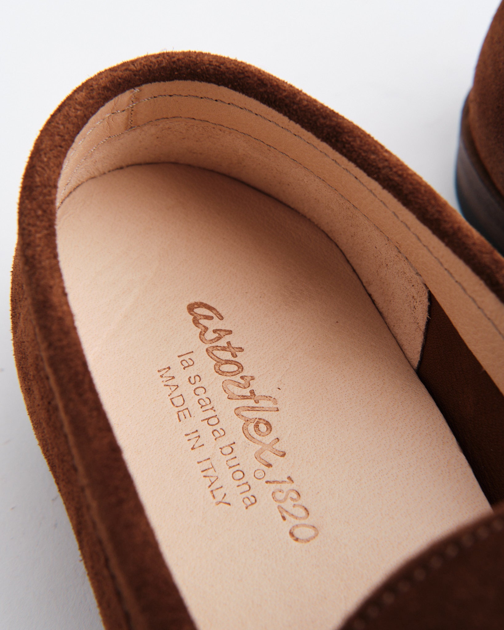 Paranna vaatekaappiasi ASTORFLEX LOBBYFLEX 503 MATTONE -loaferilla, joka on premium-luokan italialaisvalmisteinen kenkä, yhdistäen eleganssin ja jokapäiväisen mukavuuden. Korkealaatuisesta mokkanahasta valmistettu, tämä slip-on kenkä muotoutuu jalkoihisi henkilökohtaisen istuvuuden takaamiseksi. Joustava kumipohja tarjoaa erinomaisen pidon ja iskunvaimennuksen, varmistaen vaivattoman käytön koko päivän ajan. Sen rikkaan Mattone-ruskean viimeistelyn ja ajattoman designin ansiosta tämä loafer siirtyy saumattomasti rennoista tilaisuuksista muodollisiin. Koe asiantunteva käsityötaito ja kestävä tuotanto jokaisella askeleella.