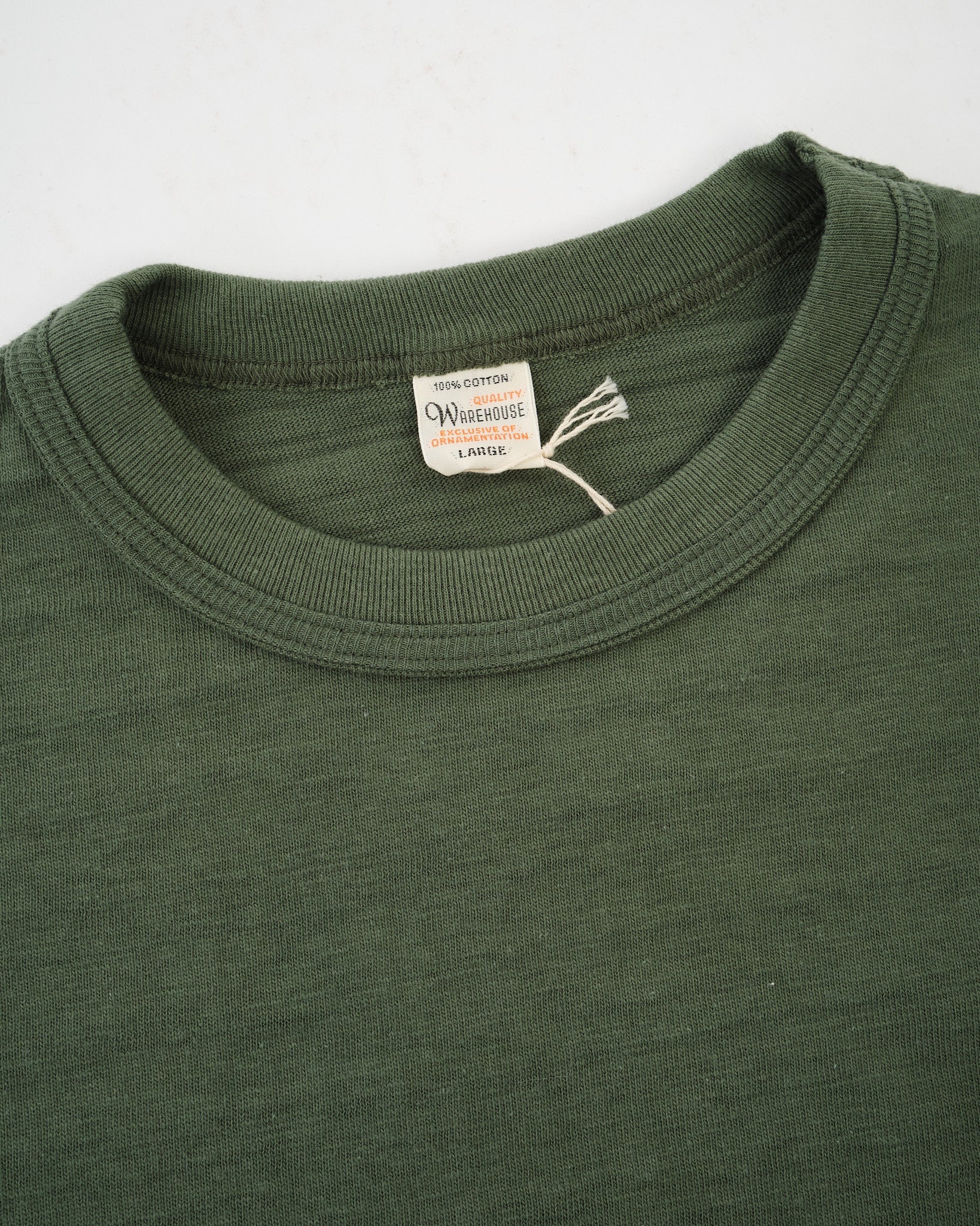 WAREHOUSE Lot 4601 T-paita vihreänä on ajaton välttämättömyys, joka on valmistettu premium-luokan nukkaantuneesta puuvillasta. Sen pehmeän tuntuman ja mukavan istuvuuden ansiosta tämä yksivärinen t-paita ilmentää vintage-laatua ja jokapäiväistä monikäyttöisyyttä. Olipa se sitten aluskerroksena tai sellaisenaan käytettynä, se tarjoaa sekä kestävyyttä että klassista tyyliä. Pakollinen perusvaate jokaiseen vaatekaappiin.