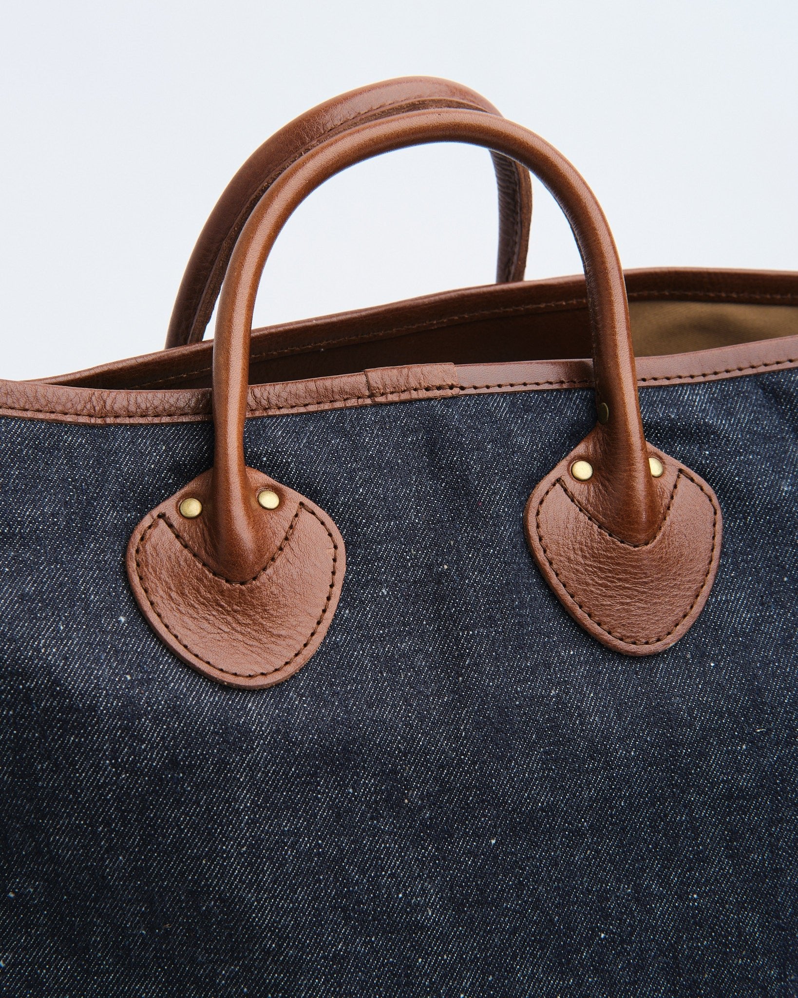 Unlike standard shoulder totes, the Lot 5230 features a deliberately short handle — a detail true to its workwear roots. The vegetable-tanned leather handles will develop a rich patina over time, while the denim body will fade beautifully with use, telling a story unique to each owner.