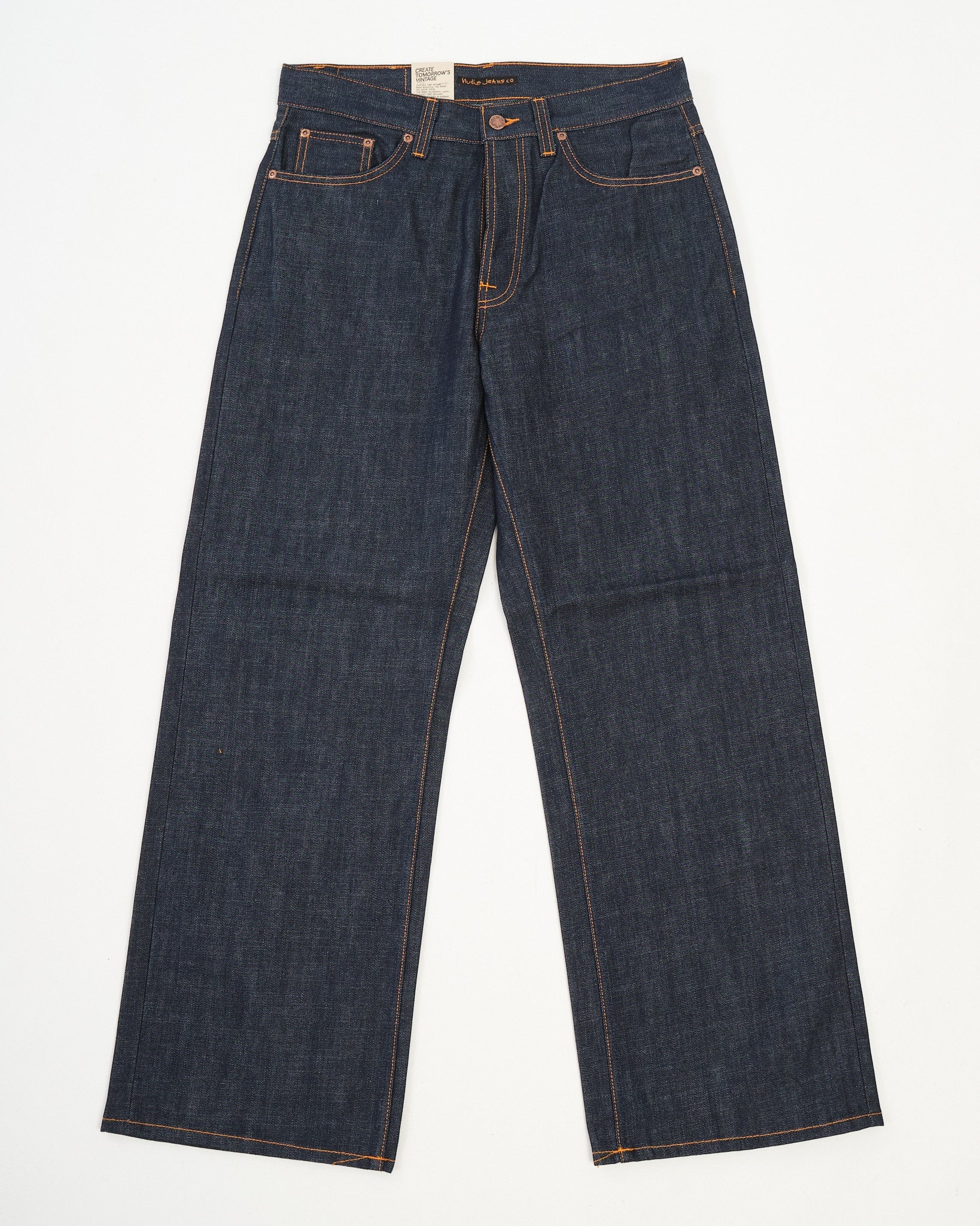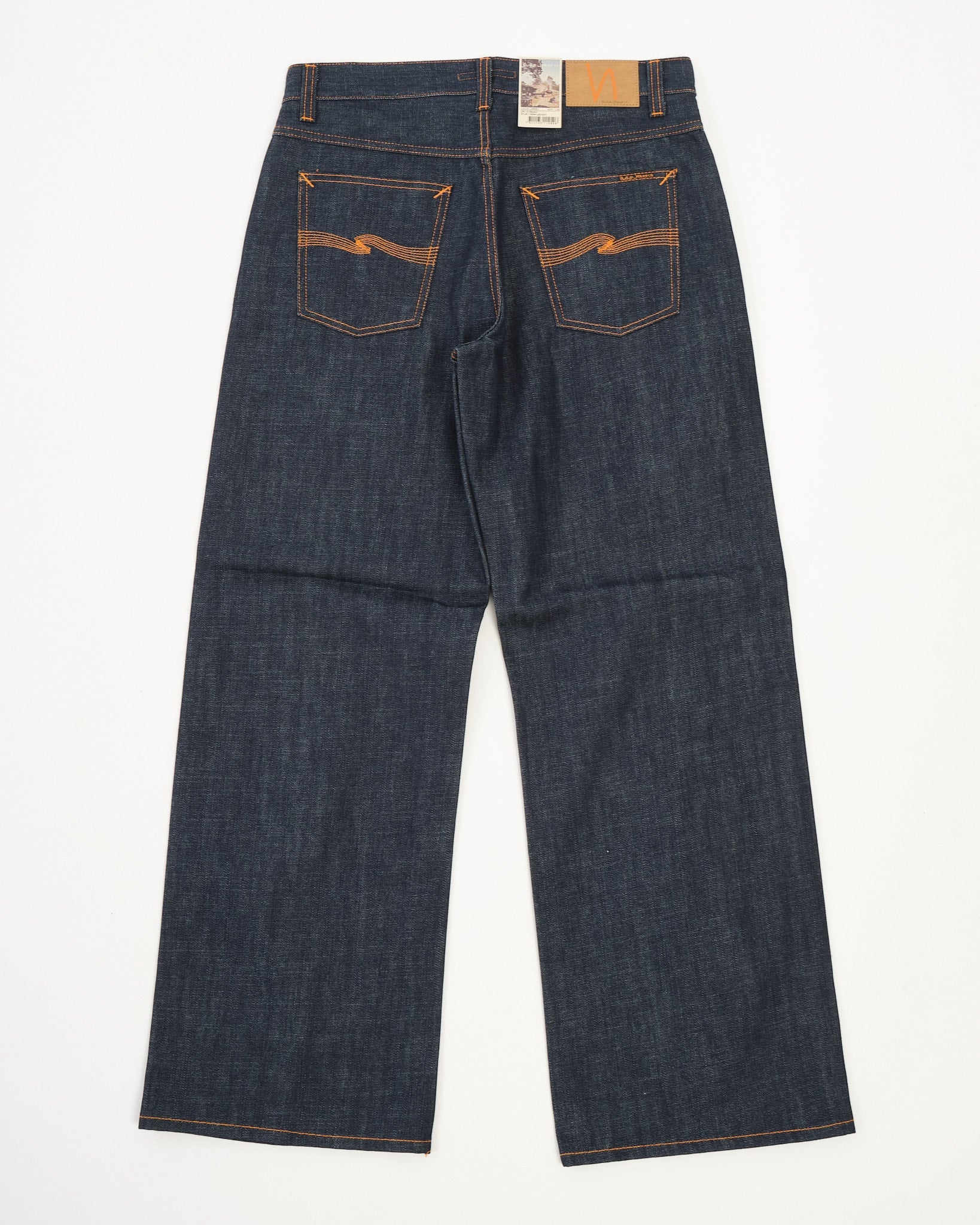 Loud Larry is Nudie Jeans’ relaxed take on classic denim, cut with a high waist, loose fit, and wide straight legs. This version comes in Dry Streaky, a 13.7 oz rigid denim made from organic cotton, defined by its pronounced vertical slubbiness with irregular yarn thickness throughout the fabric.