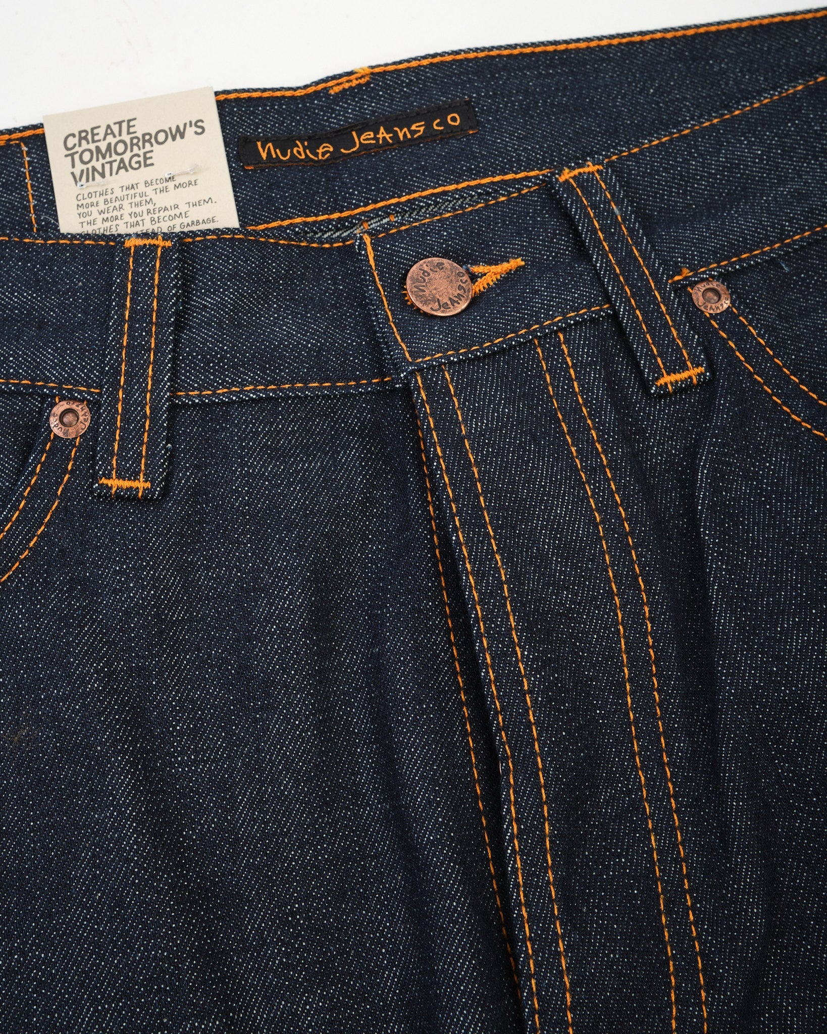 Finished with signature Nudie details such as orange contrast stitching, copper trims, button fly, and a classic Jacron patch, these jeans are made in Italy and designed to age with integrity. Loud Larry Dry Streaky is not about instant perfection — it’s about the journey, the wear patterns, and the character that only time can create.