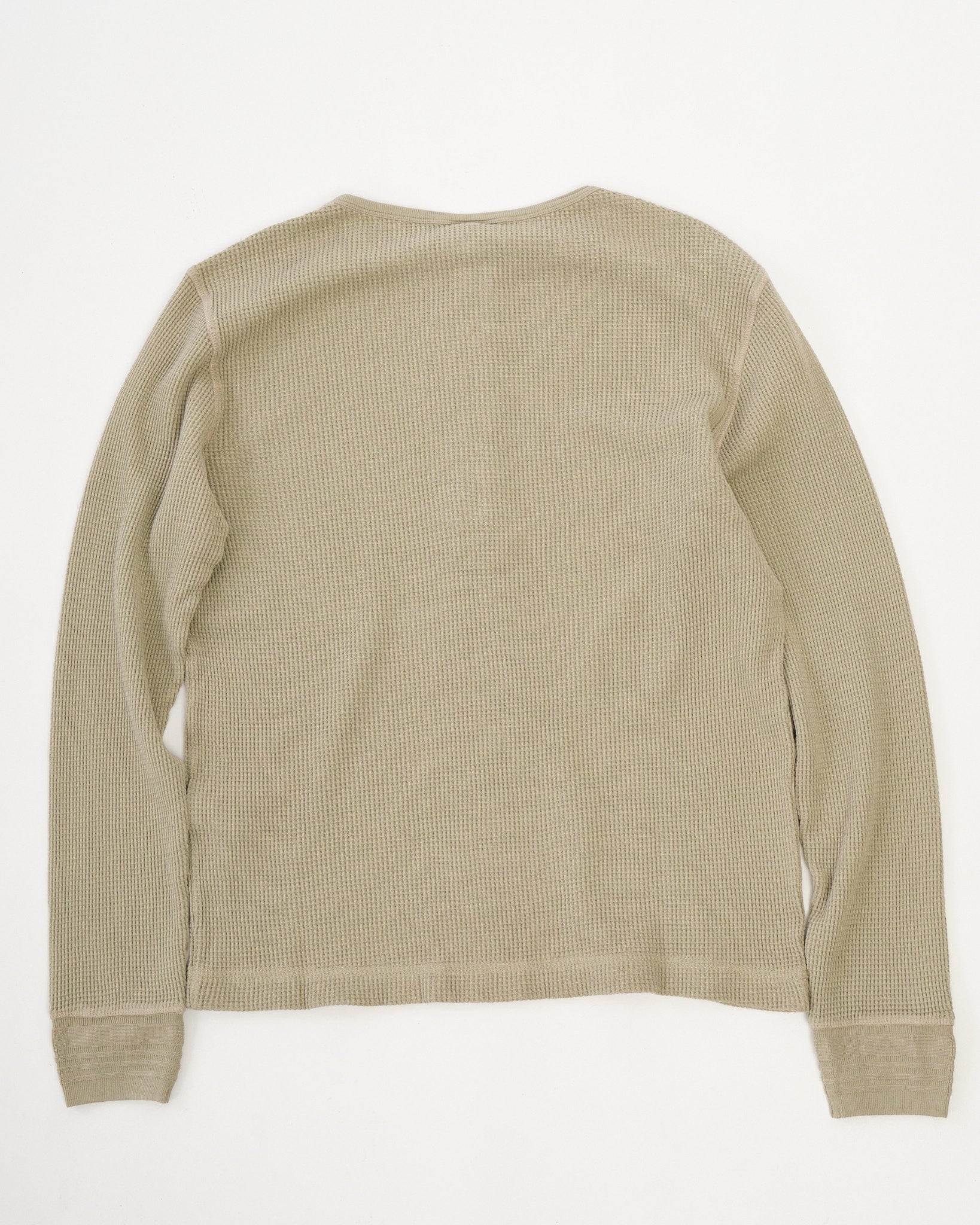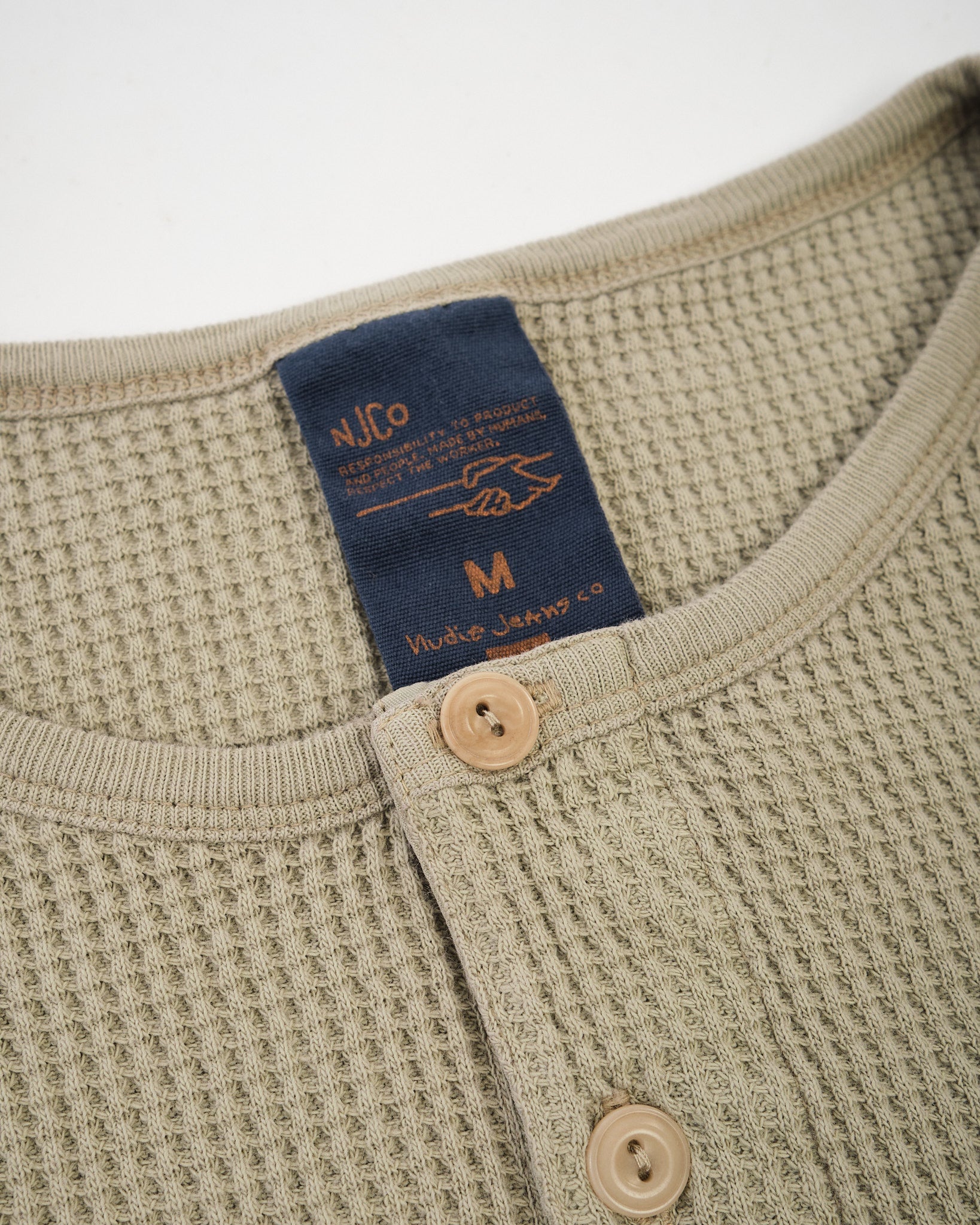 LS Henley Vohveli-T-paita aavikon värissä on sellainen perusvaate, joka tekee enemmän kuin vain kerrostuu hyvin – se lisää tekstuuria, rakennetta ja jokapäiväistä mukavuutta. Valmistettu pehmeästä luomupuuvillasta klassisessa vohvelineuleessa, siinä on neljän napin lista ajattoman Henley-lookin aikaansaamiseksi. Hihansuut ja kaulus on viimeistelty 1x1 resorilla muodon terävänä pitämiseksi. Säännöllisellä istuvuudella ja mukavalla tuntumalla, tämä pitkähihainen T-paita toimii yhtä hyvin flanellin alla kuin yksinäänkin.