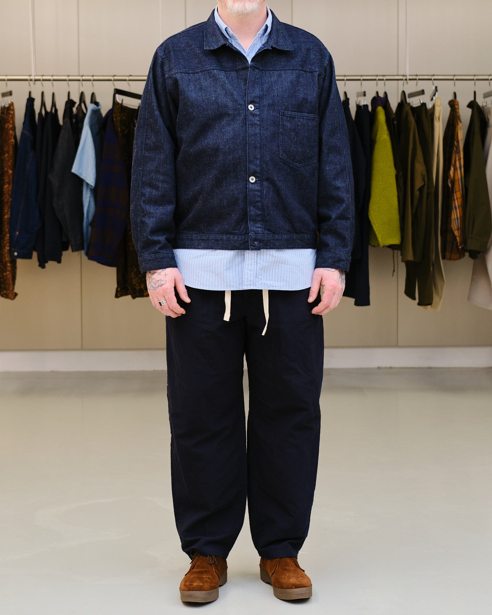 Innoittajana 1940-luvun vintage-farkkutakit yksinkertaistetulla, sotaaikaisella suunnittelulla.
