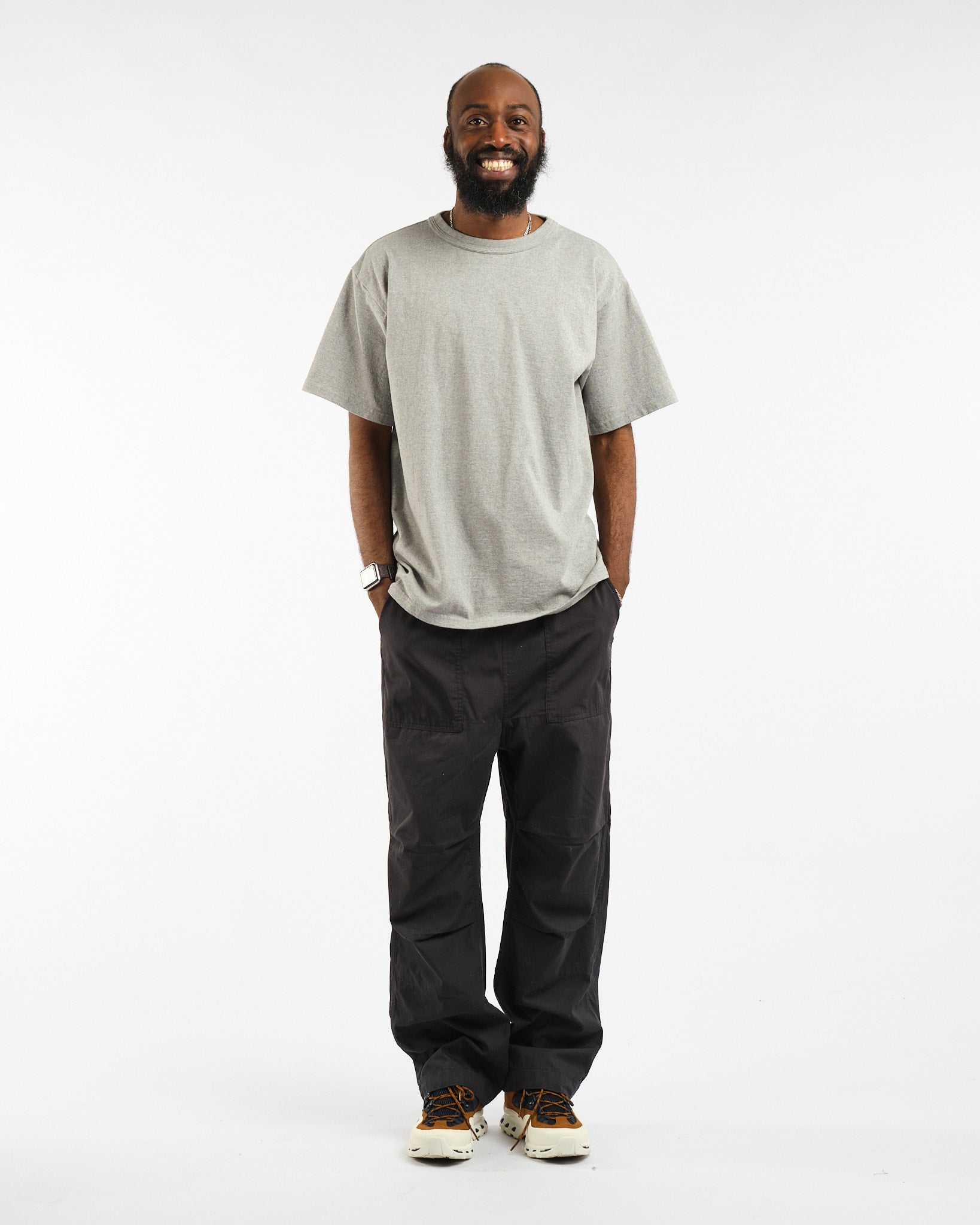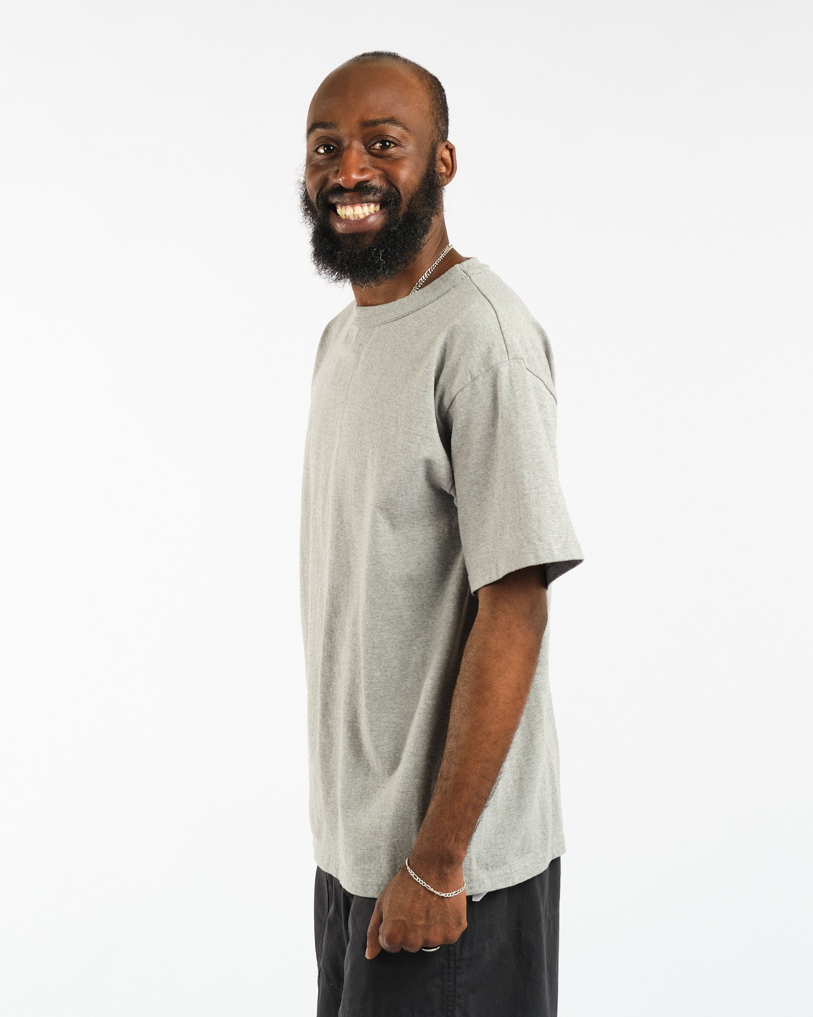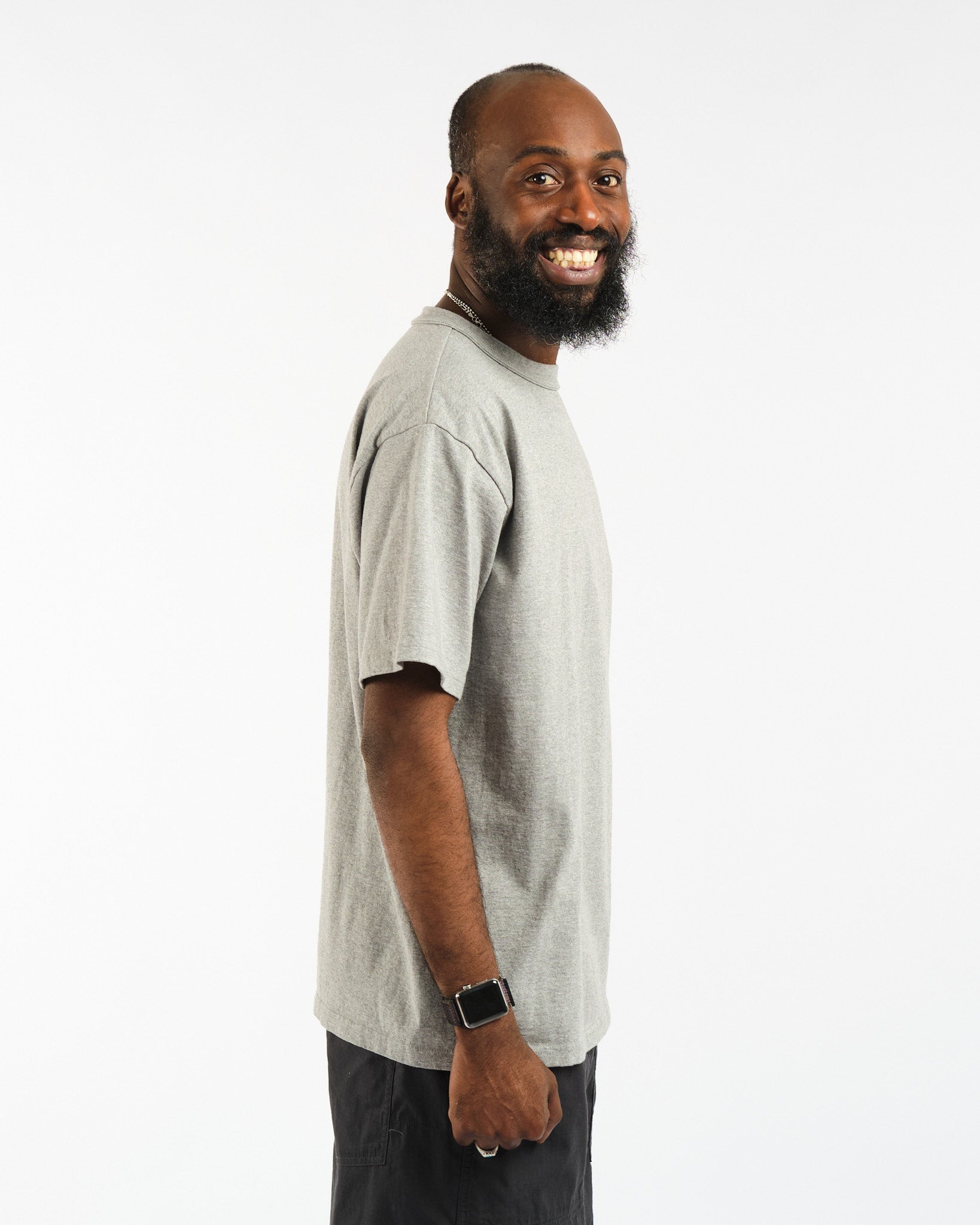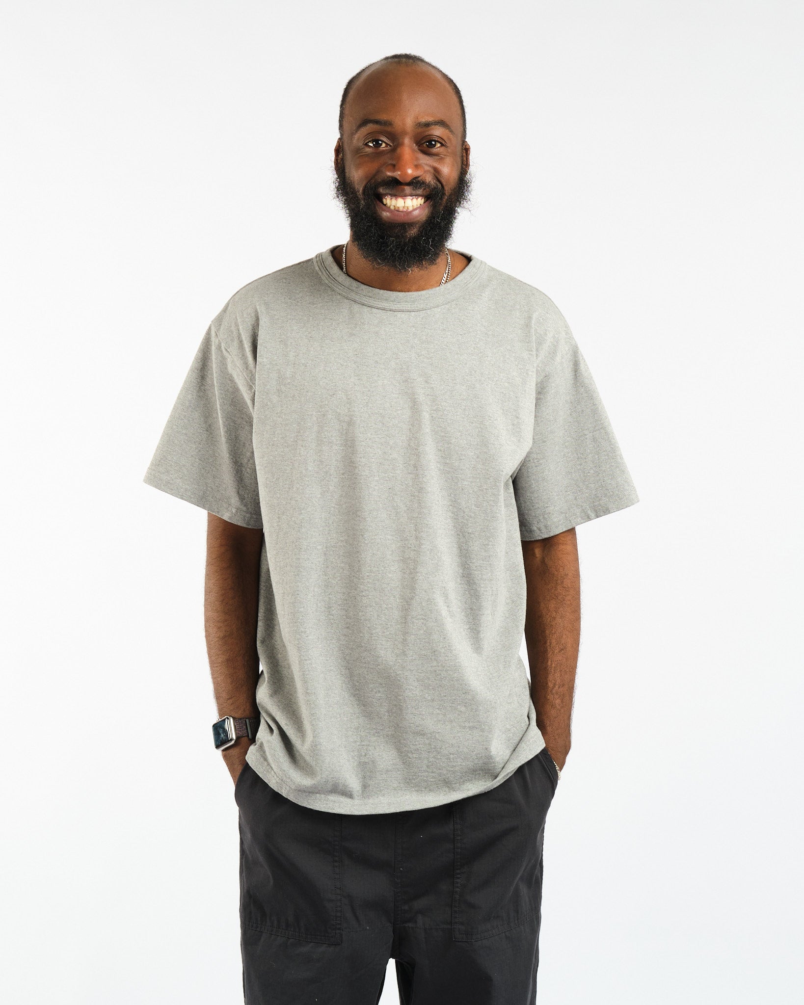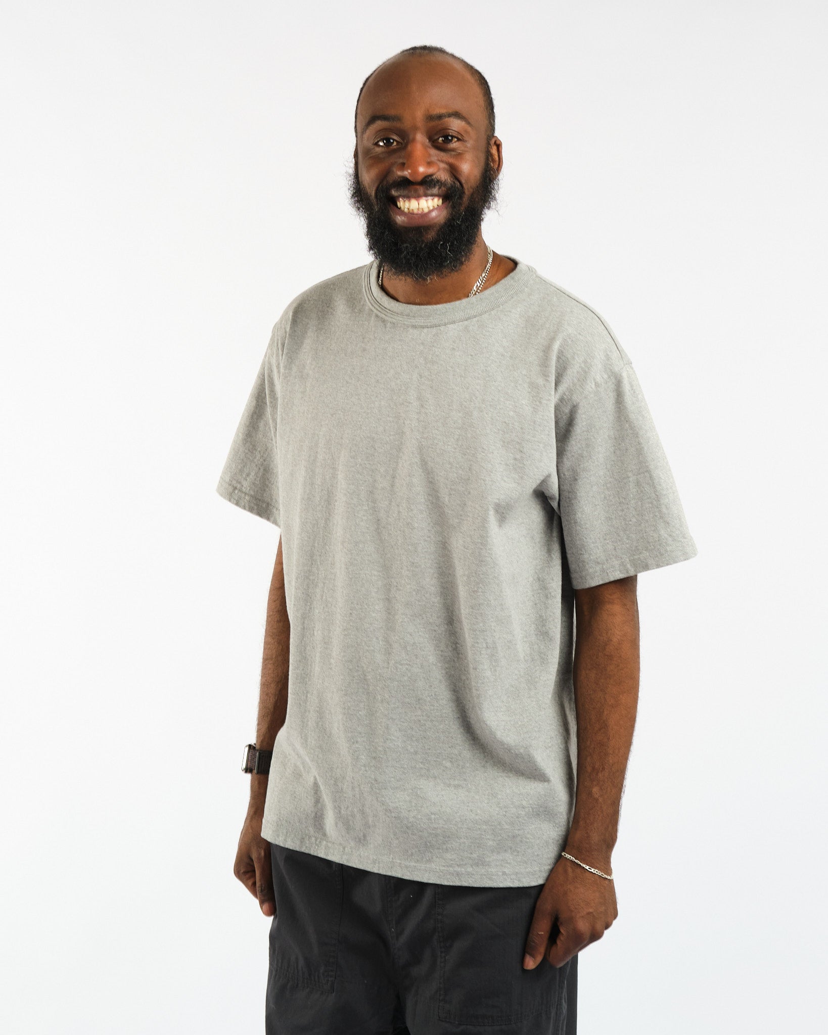 Esittelyssä Makaha lyhythihainen T-paita Hambledon Grey merkiltä Sunray Sportswear. Tämä Japanissa valmistettu kappale vangitsee 1950-luvun olemuksen rennolla, laatikkomaisemmalla siluetillaan, joka on hieman lyhyempi kuin nykyaikainen istuvuus. Sunrayn T-paidat valmistetaan ainutlaatuisesti antiikkisilla pyöröneulekoneilla, mikä antaa niille erottuvan saumattoman sivumuotoilun. Jokaisen kappaleen valmistaminen kestää yli 1,5 tuntia, mikä on todiste hitaasta, huolellisesta prosessistamme, joka takaa aina muotonsa säilyttävän vaatteen. Koe vertaansa vailla oleva mukavuus, kestävyys ja klassinen tyyli Sunray Sportswearilta.