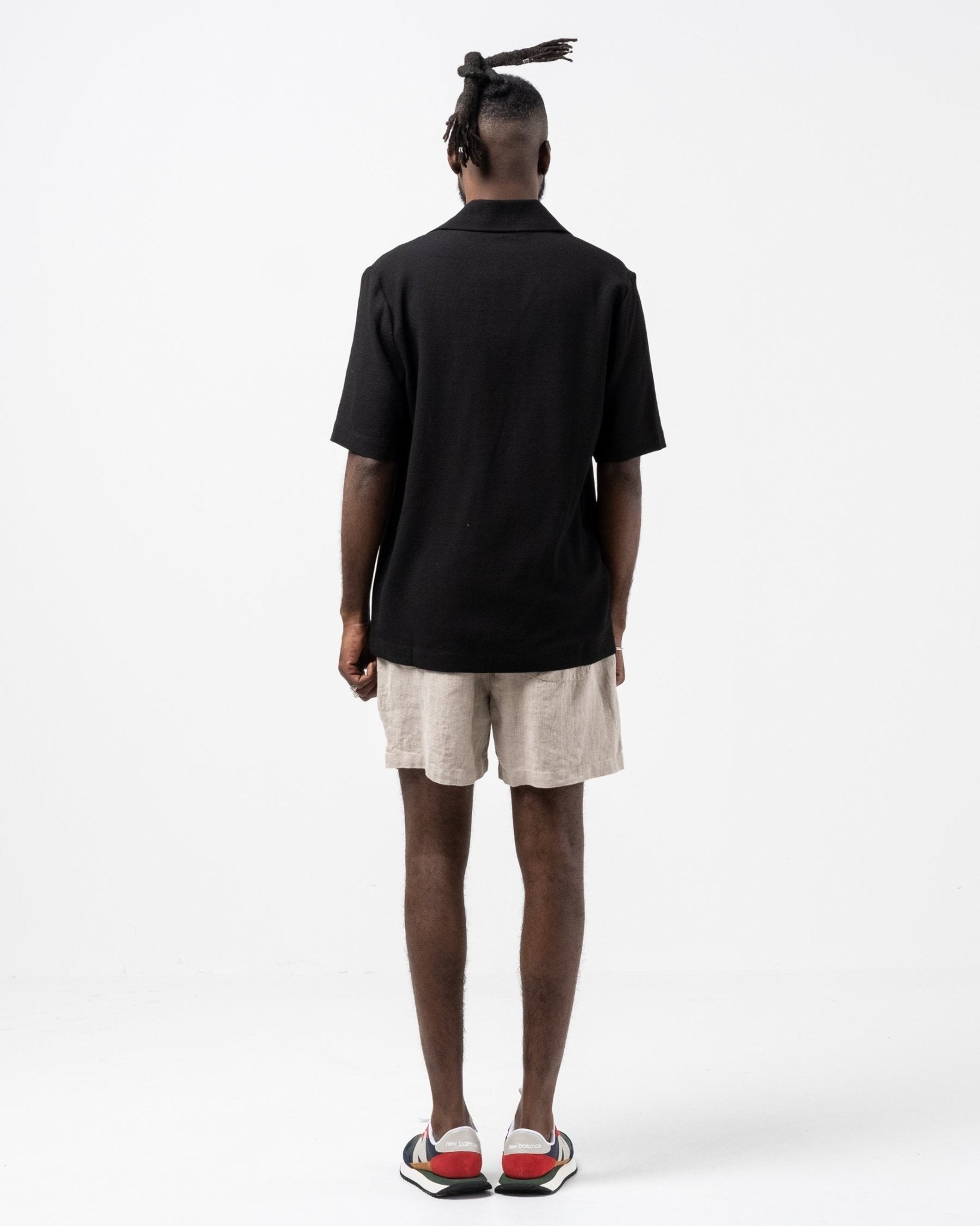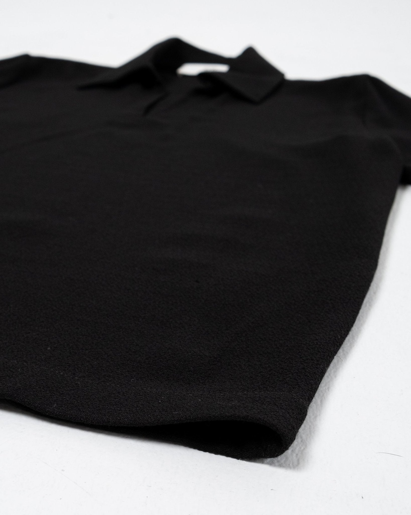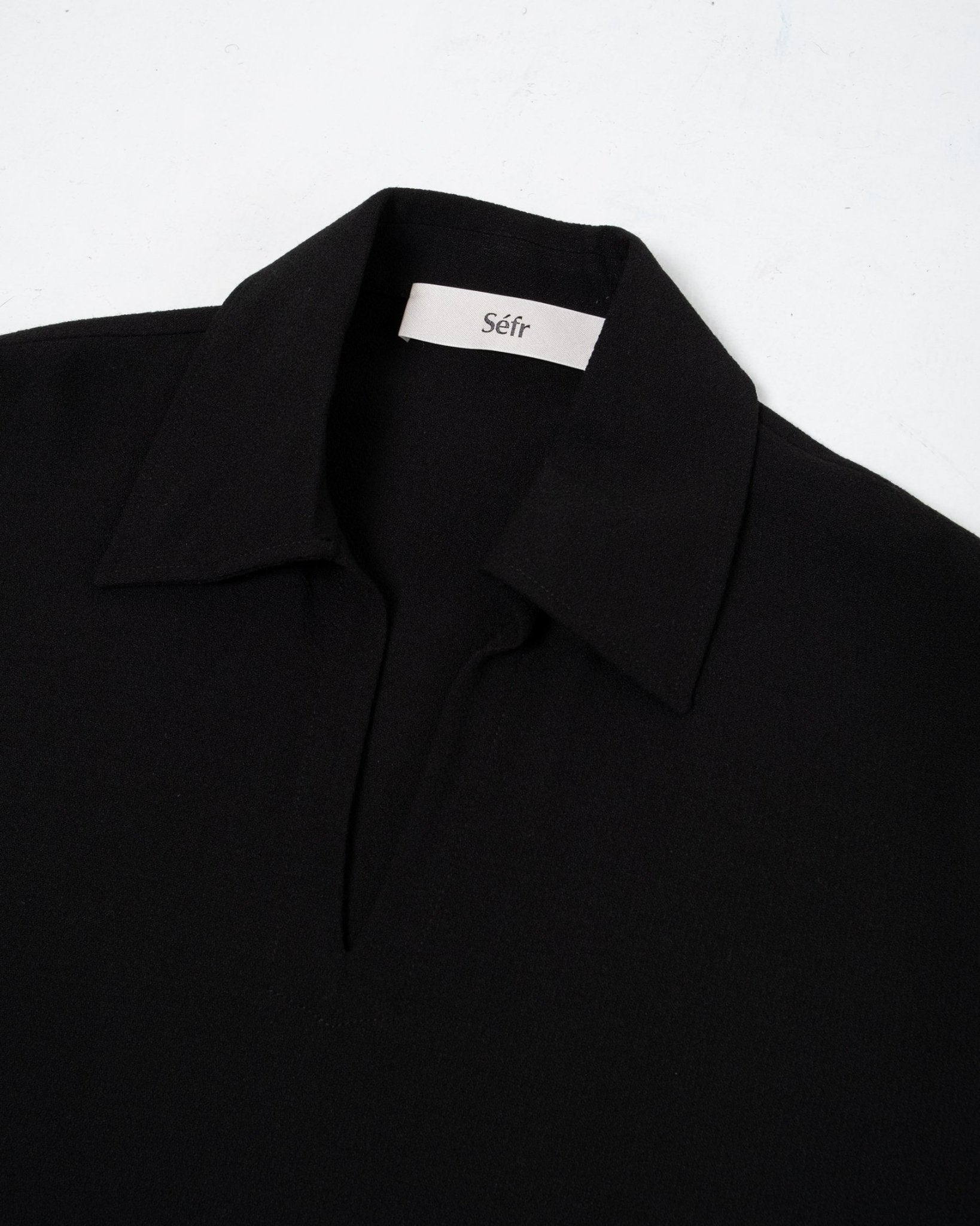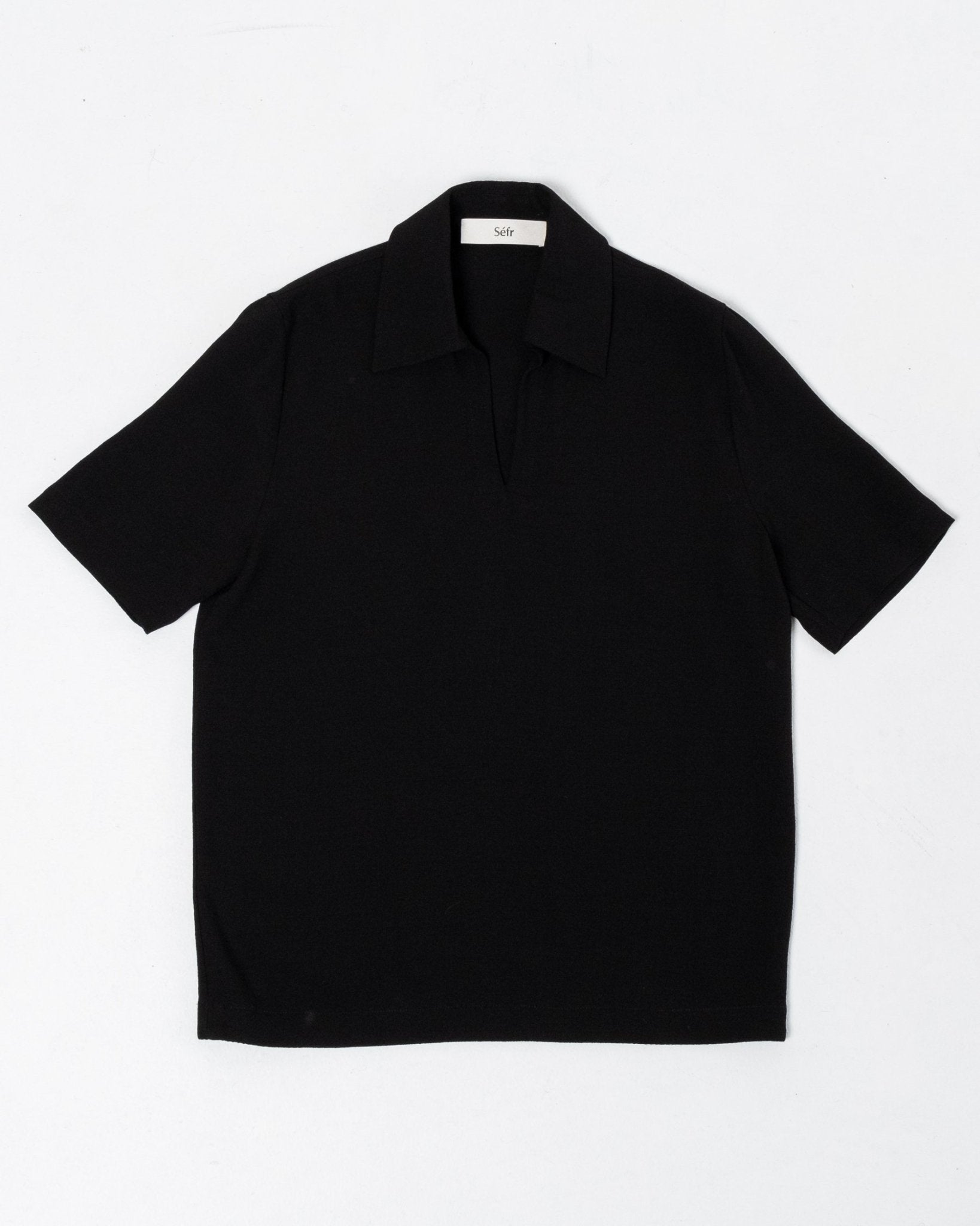 Mate SS Shirt Black merkiltä Séfr. Lyhythihainen paitapusero leveällä kauluksella. Rento istuvuus suoralla helmallisella. 60% viskoosia ja 40% villaa. Valmistettu Latviassa.