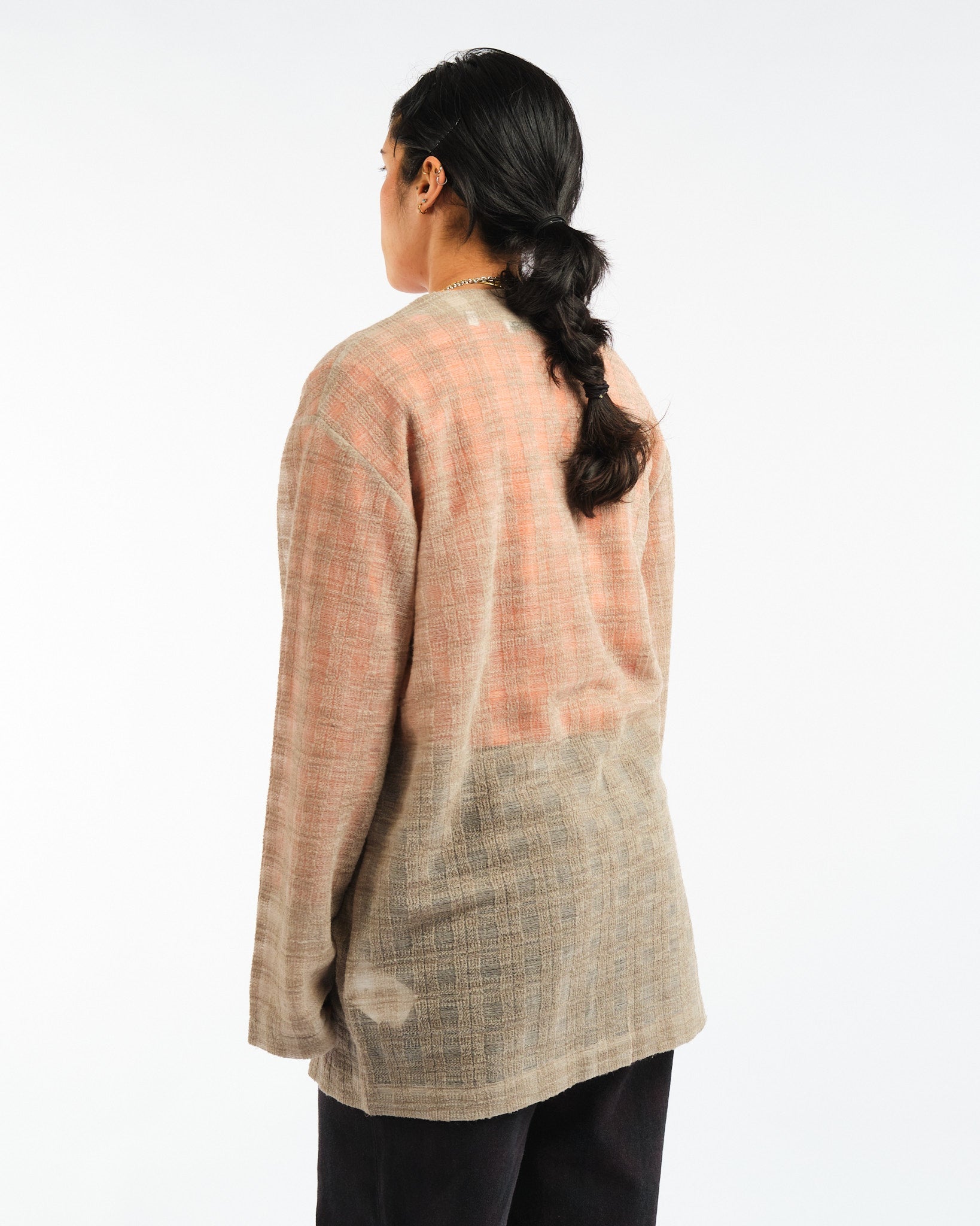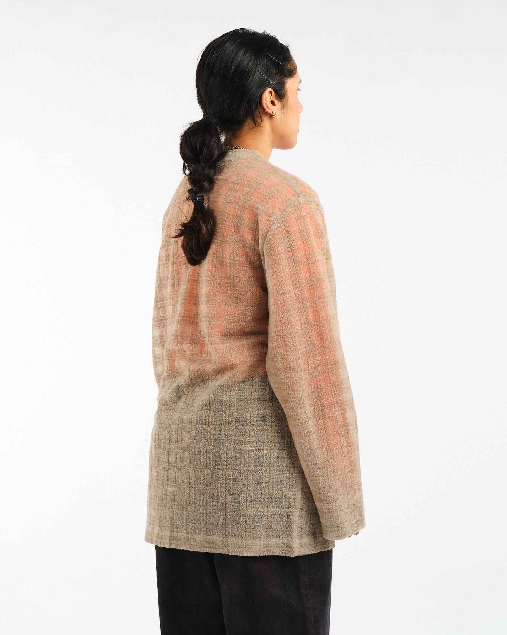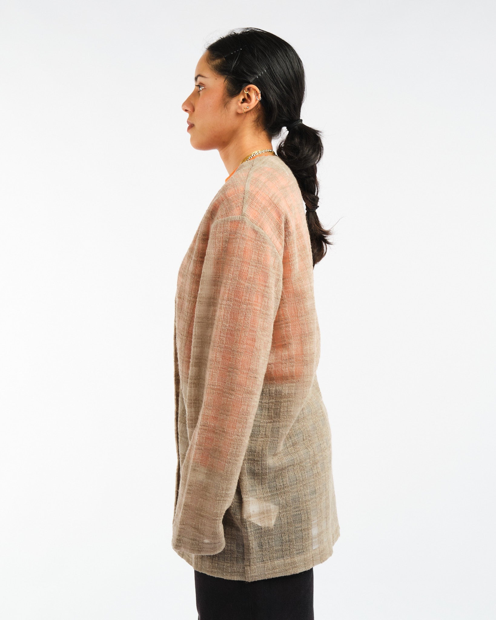 Tarjoamme Our Legacy -merkin Midline-neuletakin harmaassa Disintegration Check -kuosissa Meadow'ssa. Italialaisesta merinovillan ja polyamidin seoksesta valmistettu neuletakki on ylpeä hienostuneesta ja hienosta kankaastaan. Suunniteltu naisille, siinä on pitkä ja rento istuvuus, jonka voi kiinnittää keskeltä tai sivusaumaan. Neuletakissa on myös v-kaulus ja helmiäisnapit.