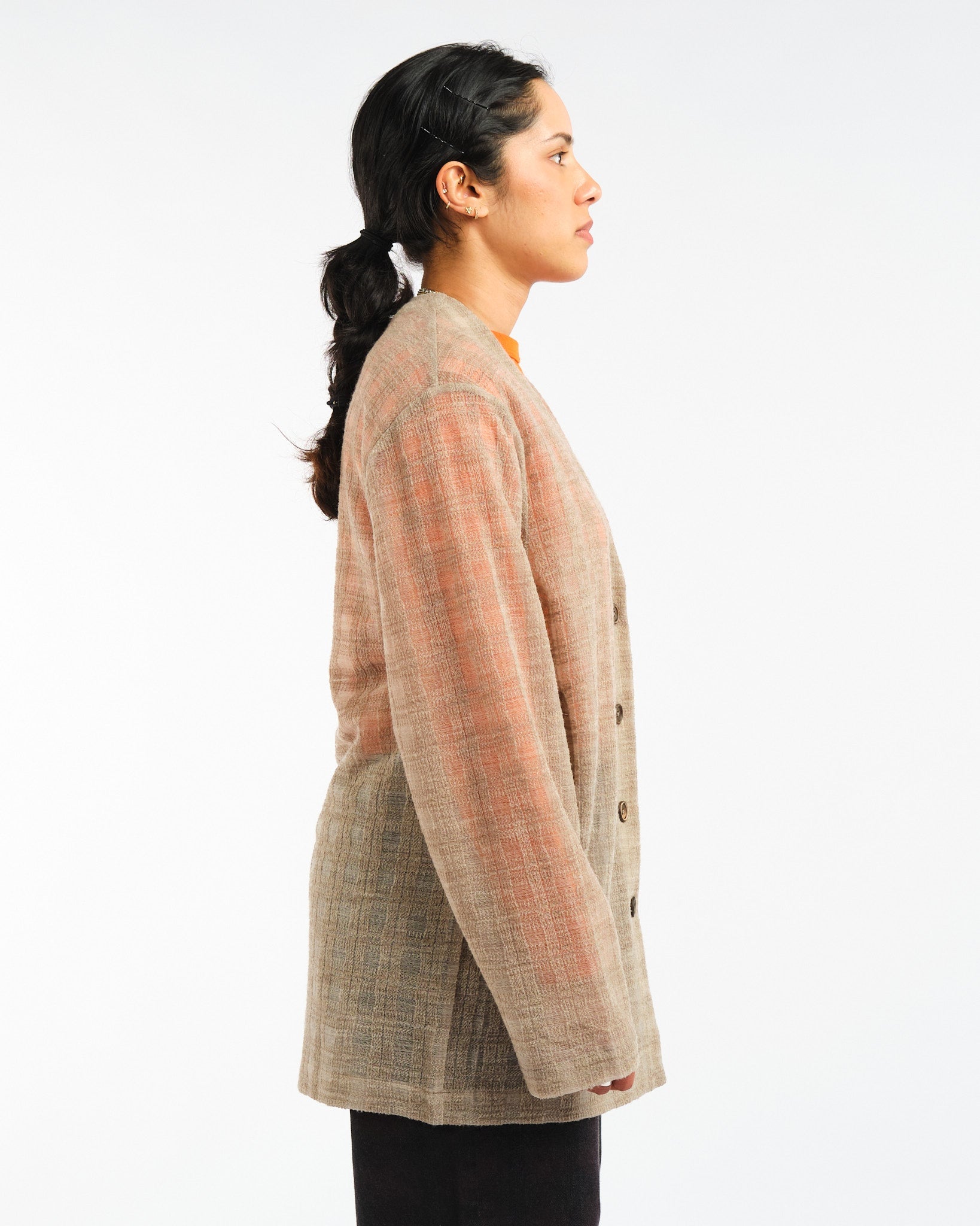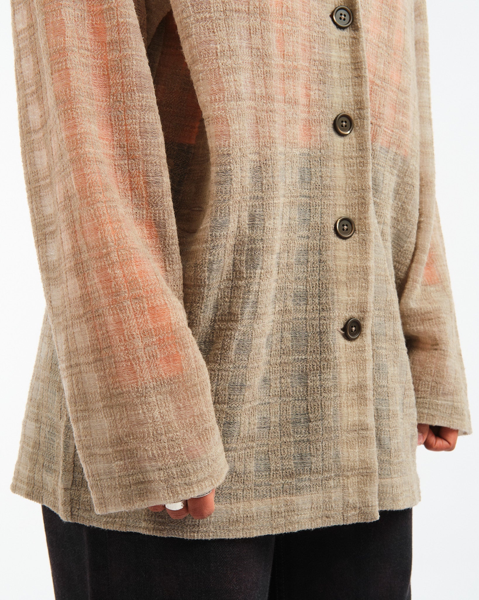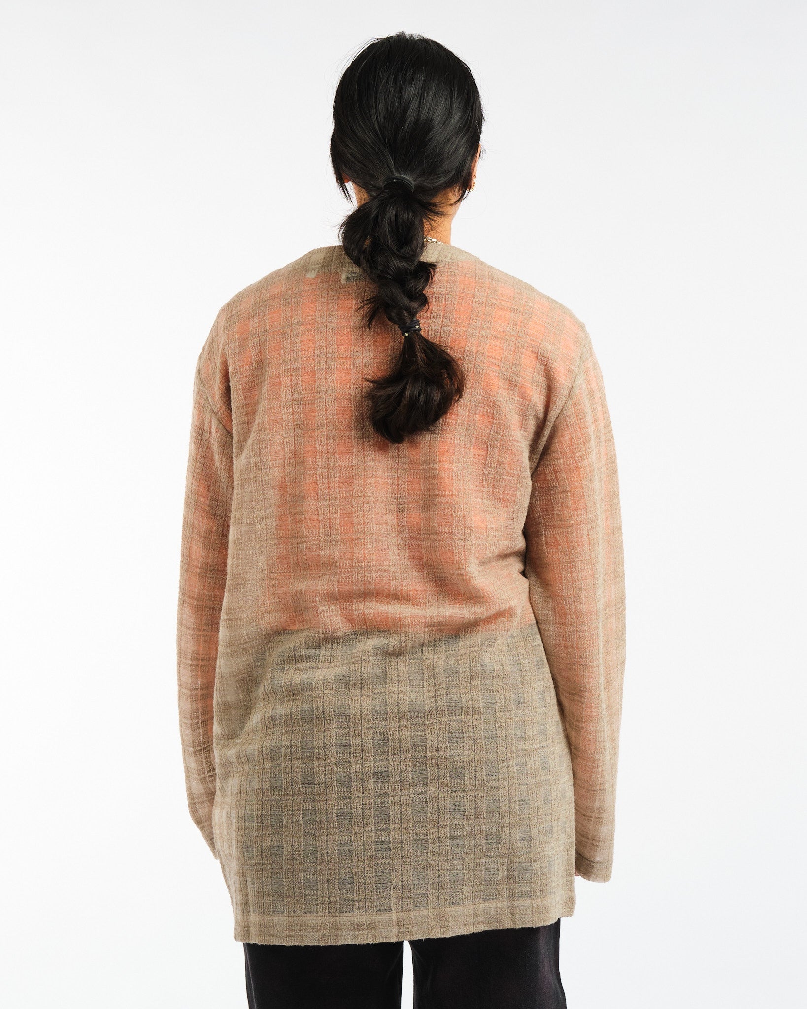 Tarjoamme Our Legacy -merkin Midline-neuletakin harmaassa Disintegration Check -kuosissa Meadow'ssa. Italialaisesta merinovillan ja polyamidin seoksesta valmistettu neuletakki on ylpeä hienostuneesta ja hienosta kankaastaan. Suunniteltu naisille, siinä on pitkä ja rento istuvuus, jonka voi kiinnittää keskeltä tai sivusaumaan. Neuletakissa on myös v-kaulus ja helmiäisnapit.