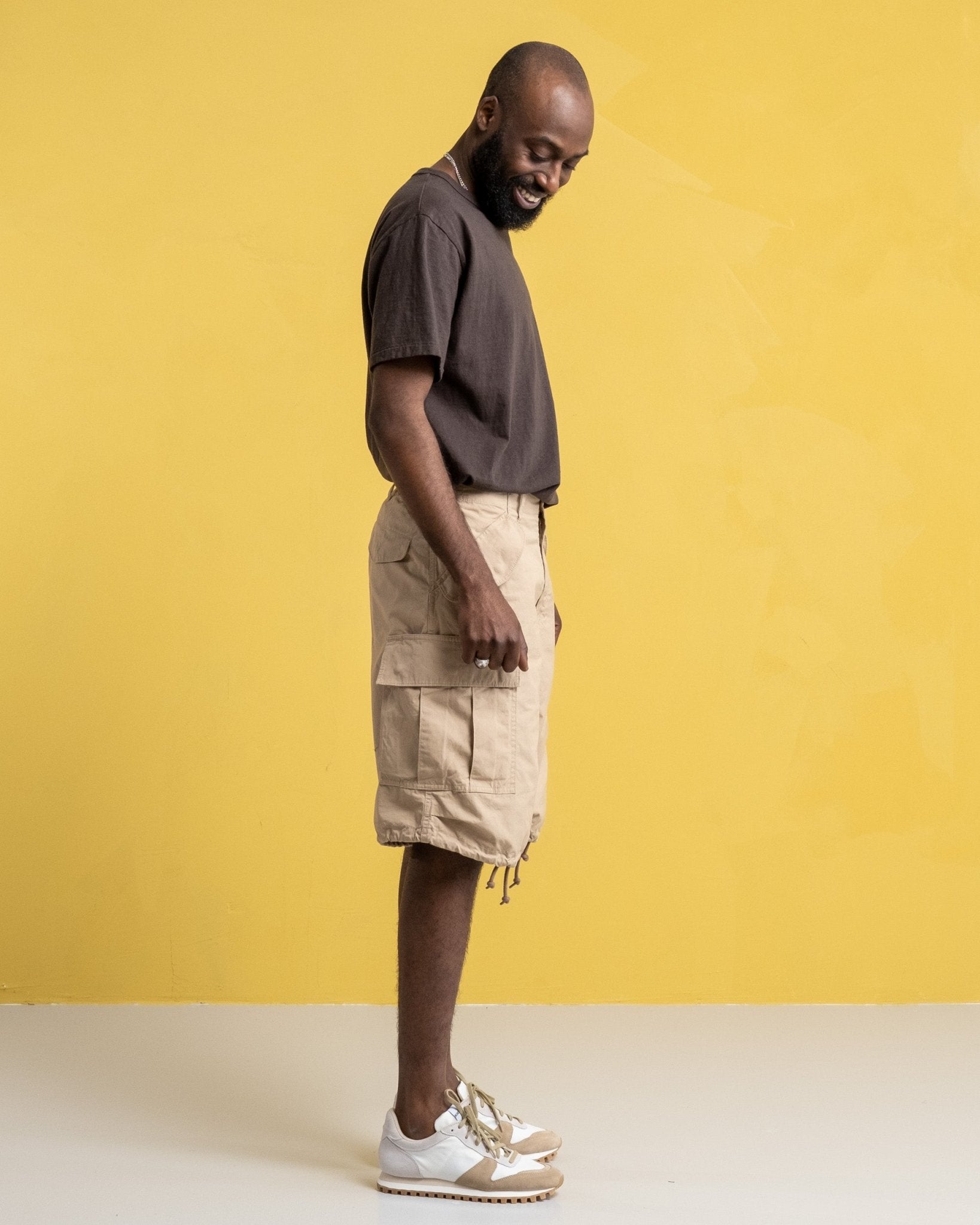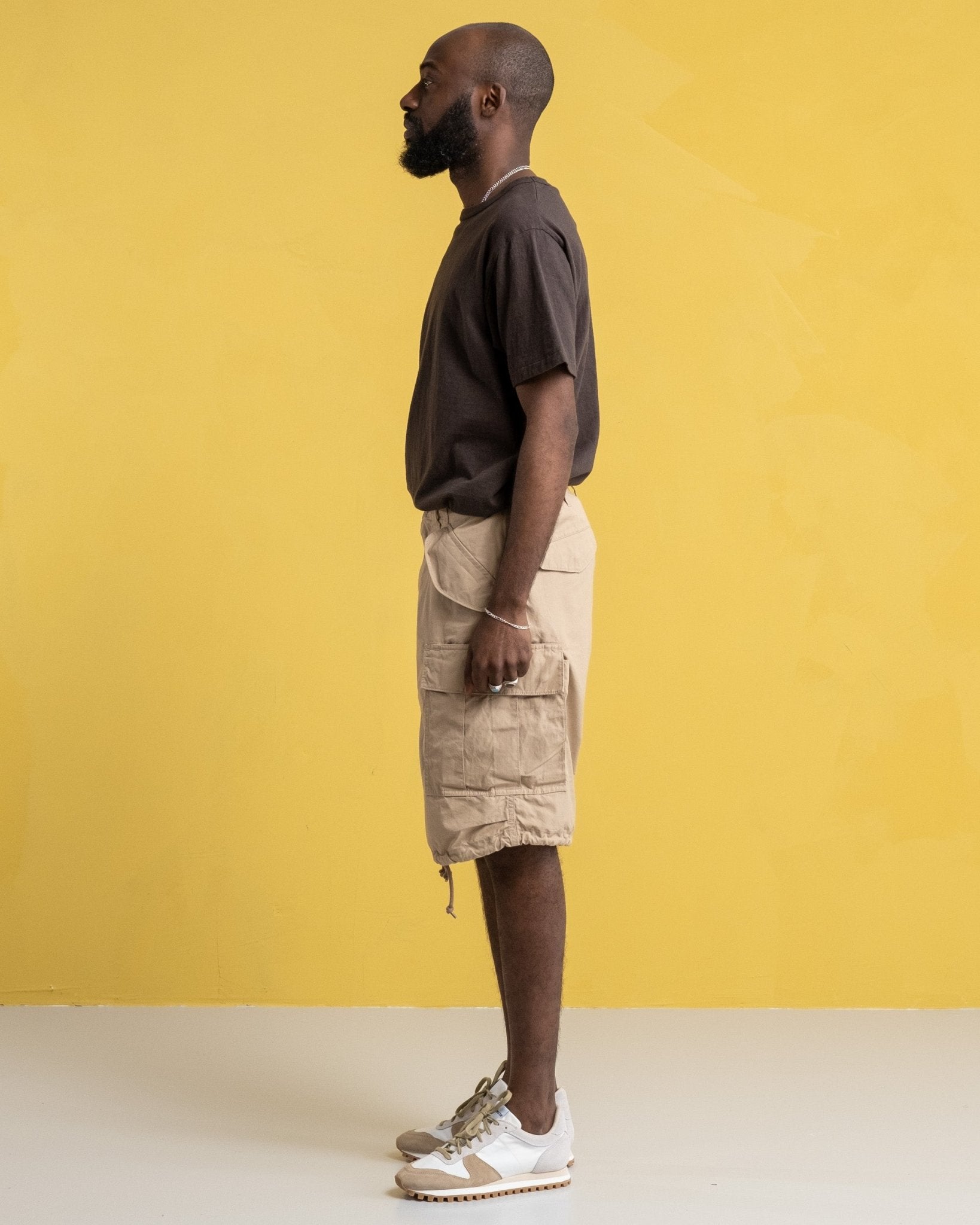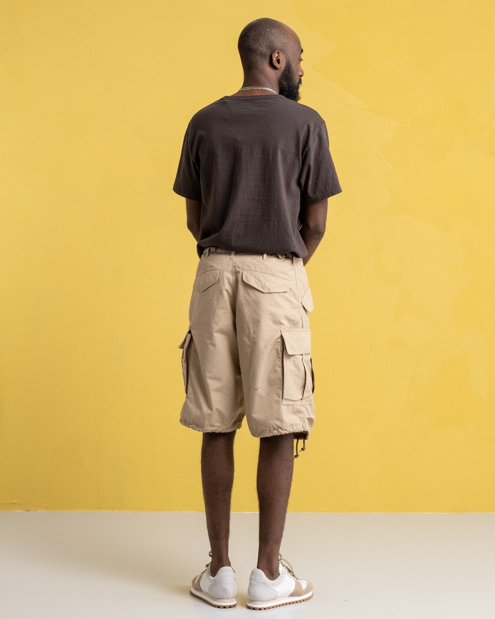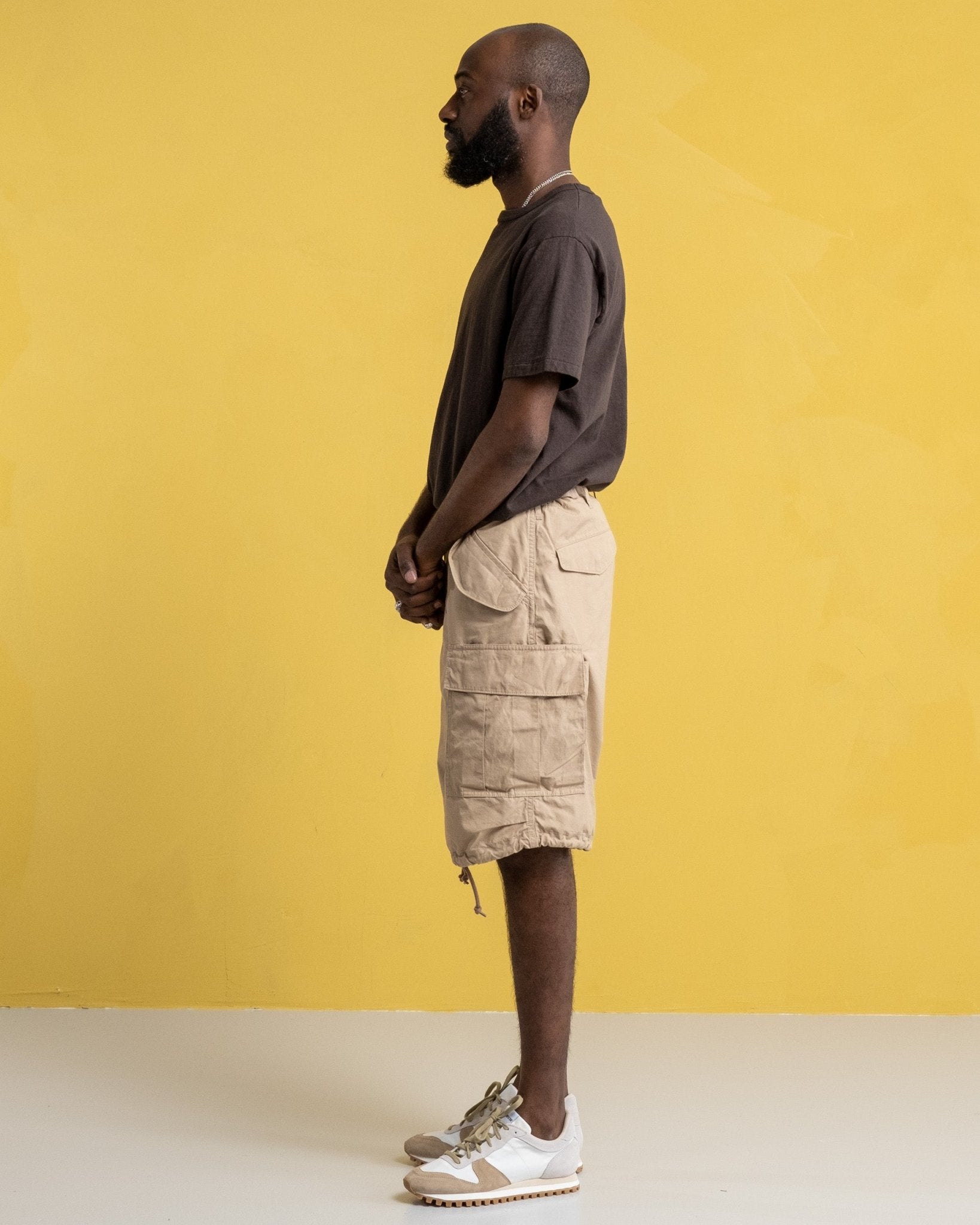 MIL 6Pocket 80/3 Ripstop Beige 20 Beams+ -merkiltä. Väljä ja leveä malli, japanilaisesta puuvillarip-stopista valmistetut cargo-shortsit. Kevyet, mutta erittäin kestävät! Vetoketju ja nappikiinnitys, säädettävä vyötärö. Runsas määrä taskuja ja pari piilotettua sisätaskua. Helmat ovat myös säädettävissä kiristysnyöreillä. Valmistettu Kiinassa.