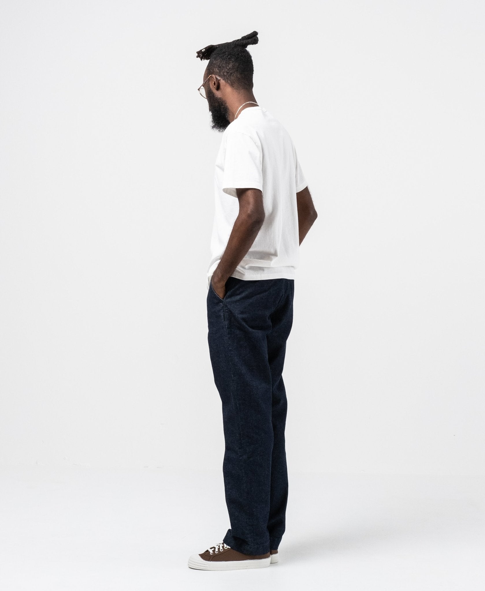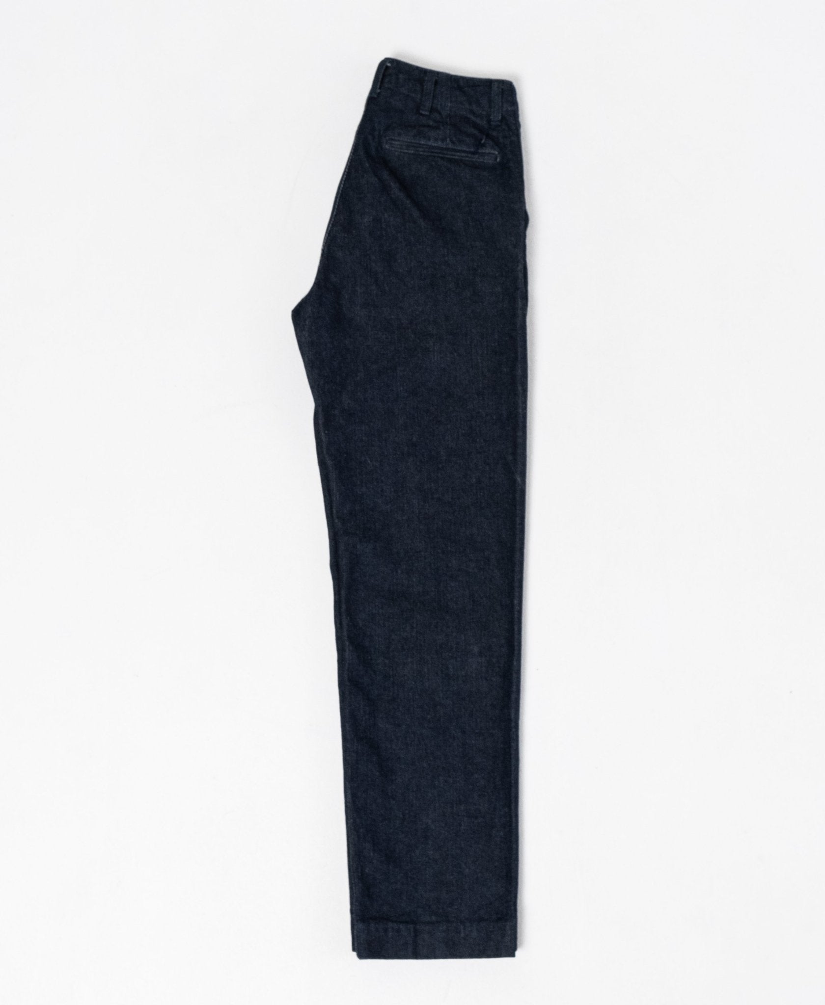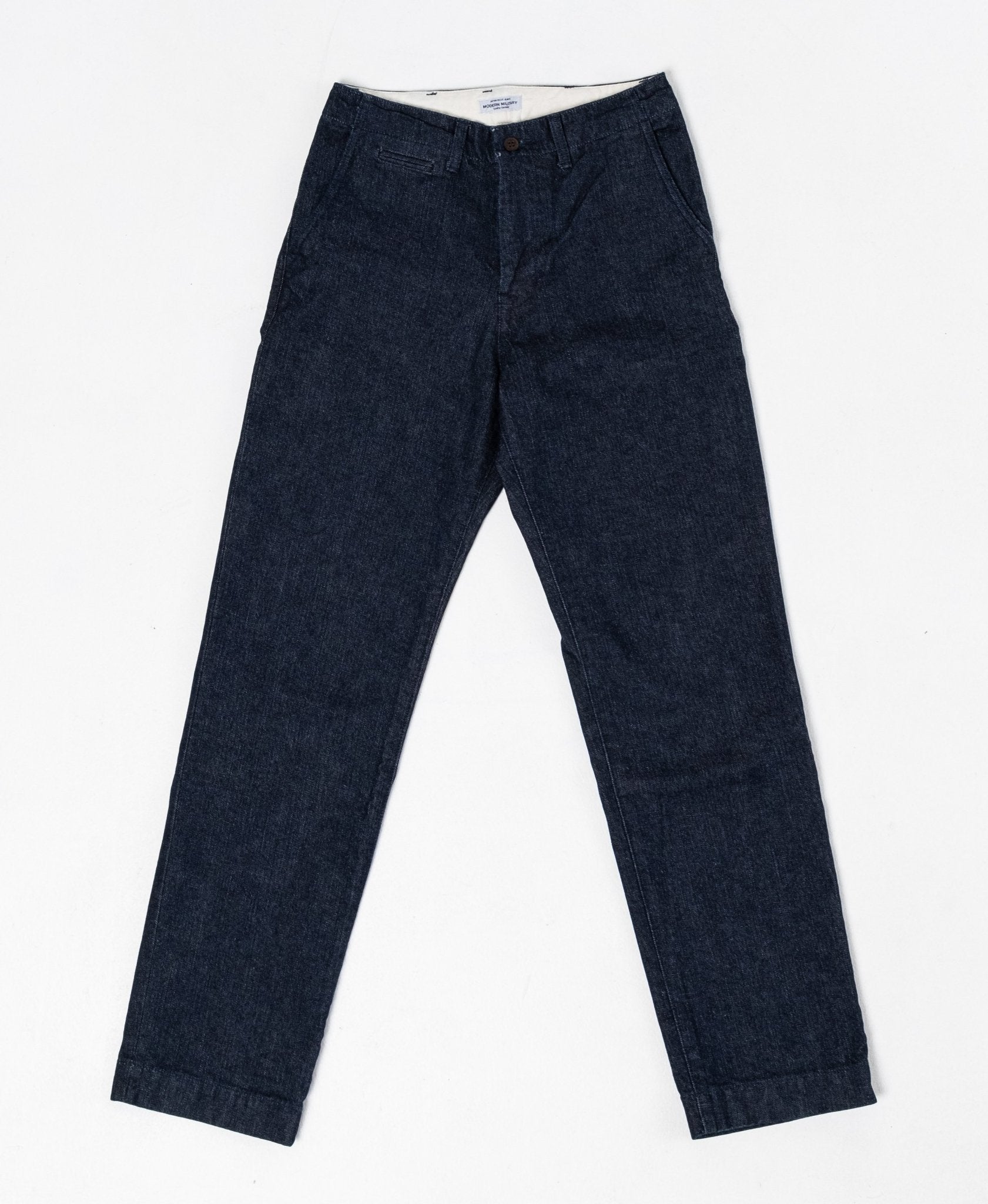 Modernit sotilashenkiset farkkutakit Japan Blue Jeansilta. Rento housumalli, valmistettu 12 unssin denimistä. Chino-tyyliset takataskut ja sivutaskut, sekä kolikkotasku. Valmistettu Japanissa.