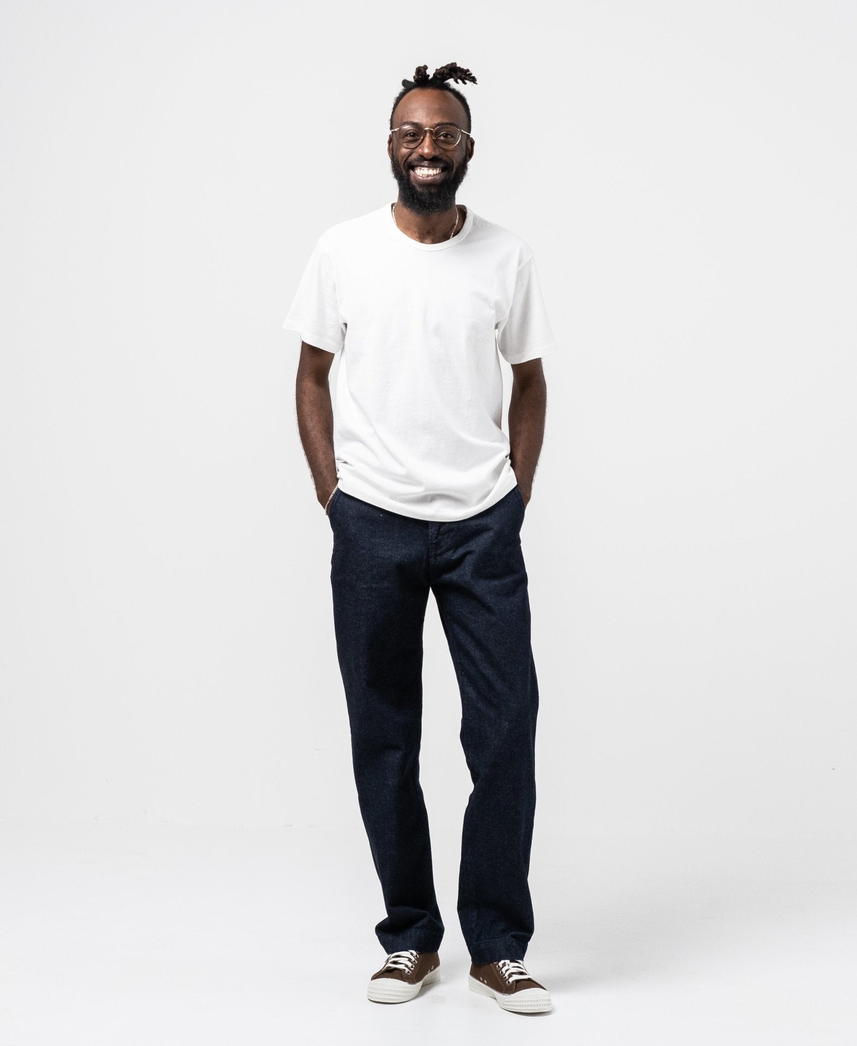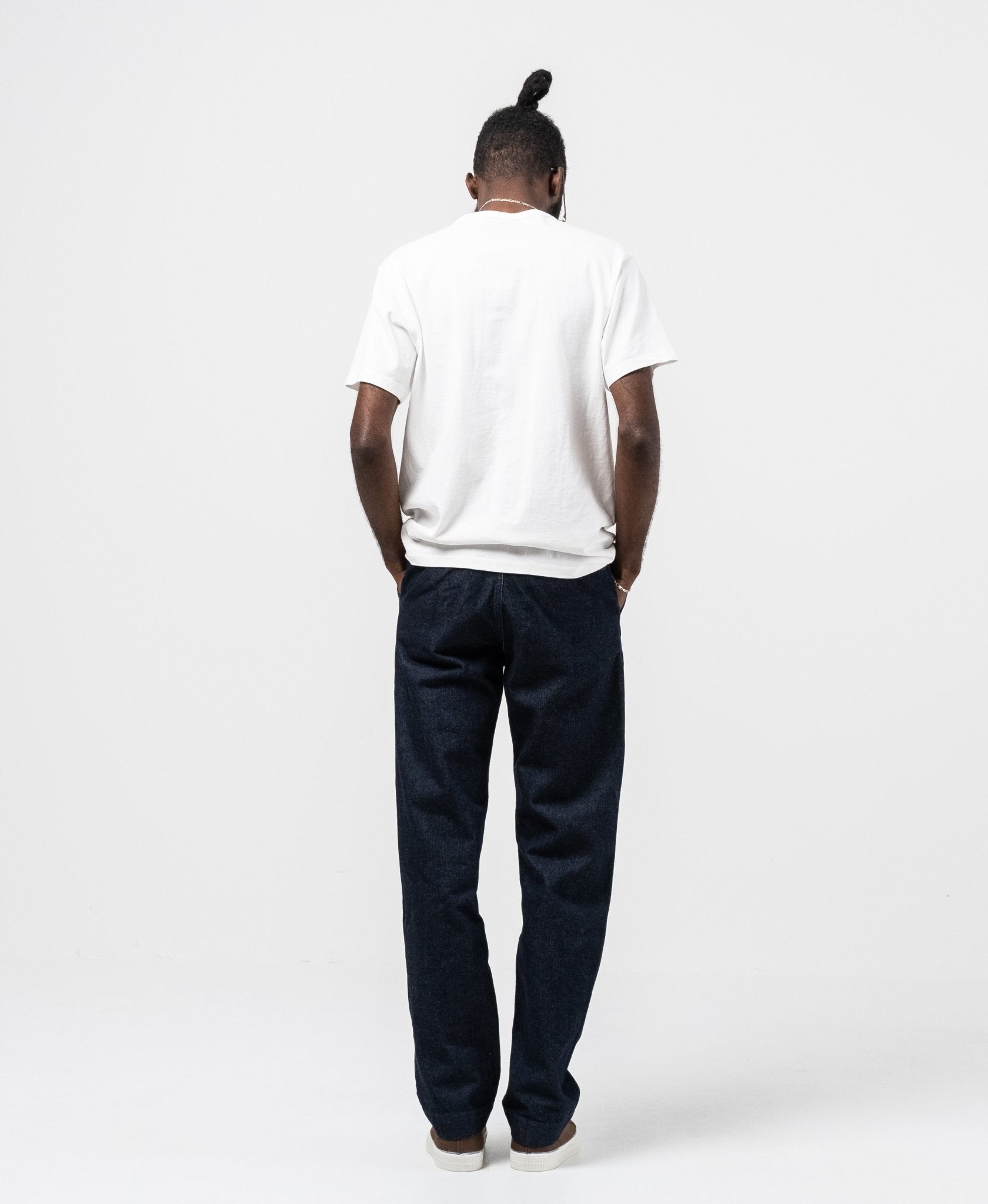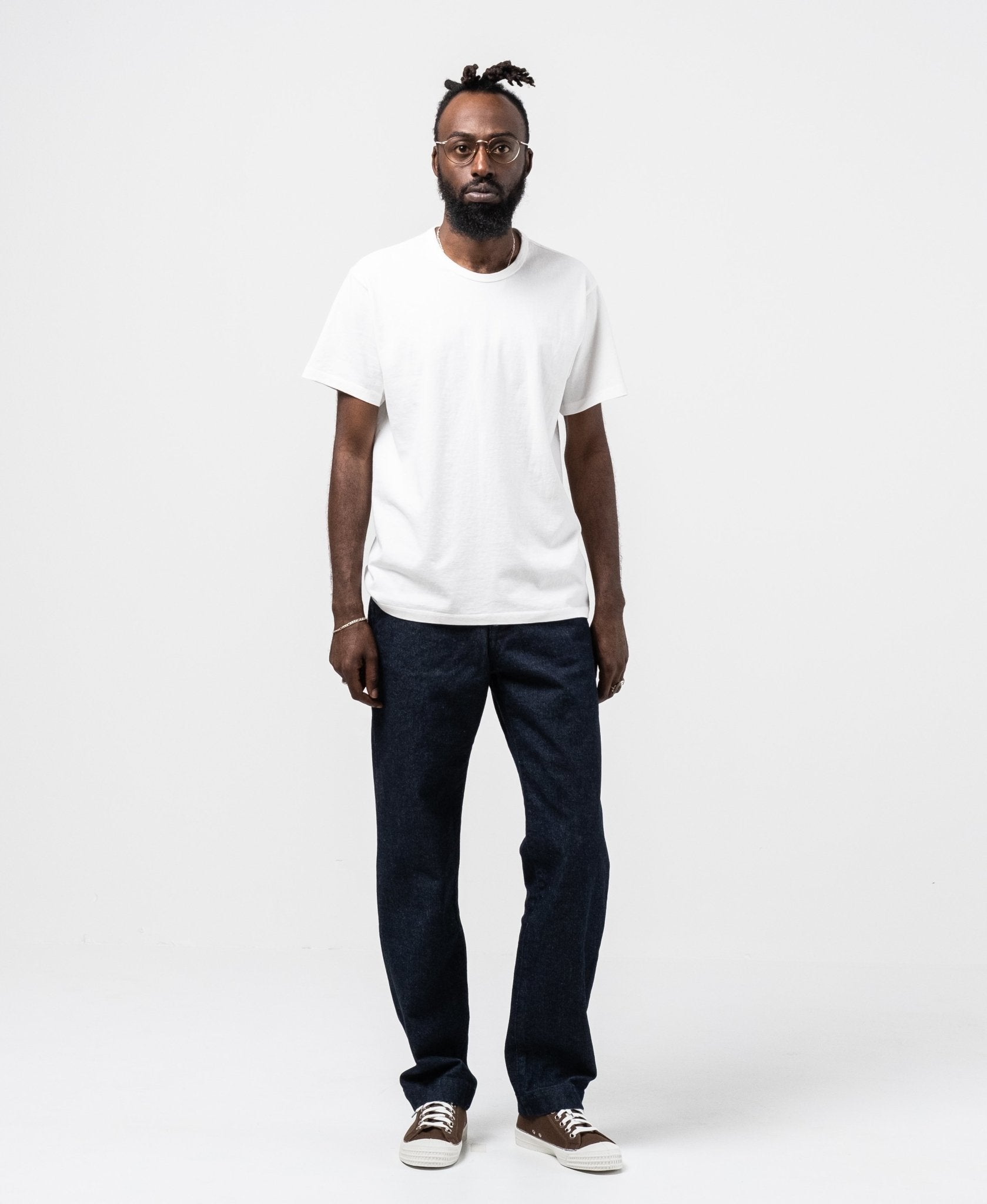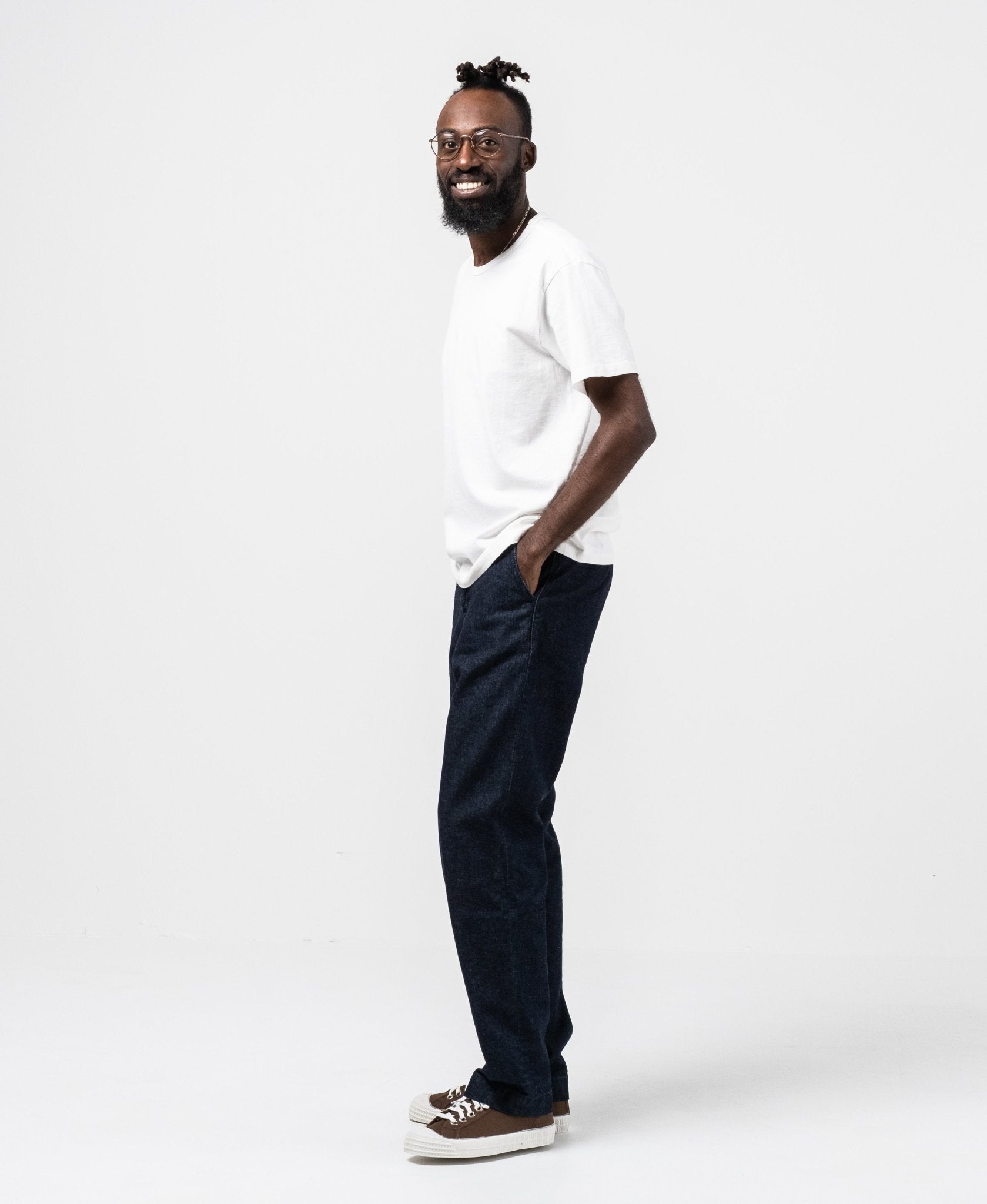 Modernit sotilashenkiset farkkutakit Japan Blue Jeansilta. Rento housumalli, valmistettu 12 unssin denimistä. Chino-tyyliset takataskut ja sivutaskut, sekä kolikkotasku. Valmistettu Japanissa.